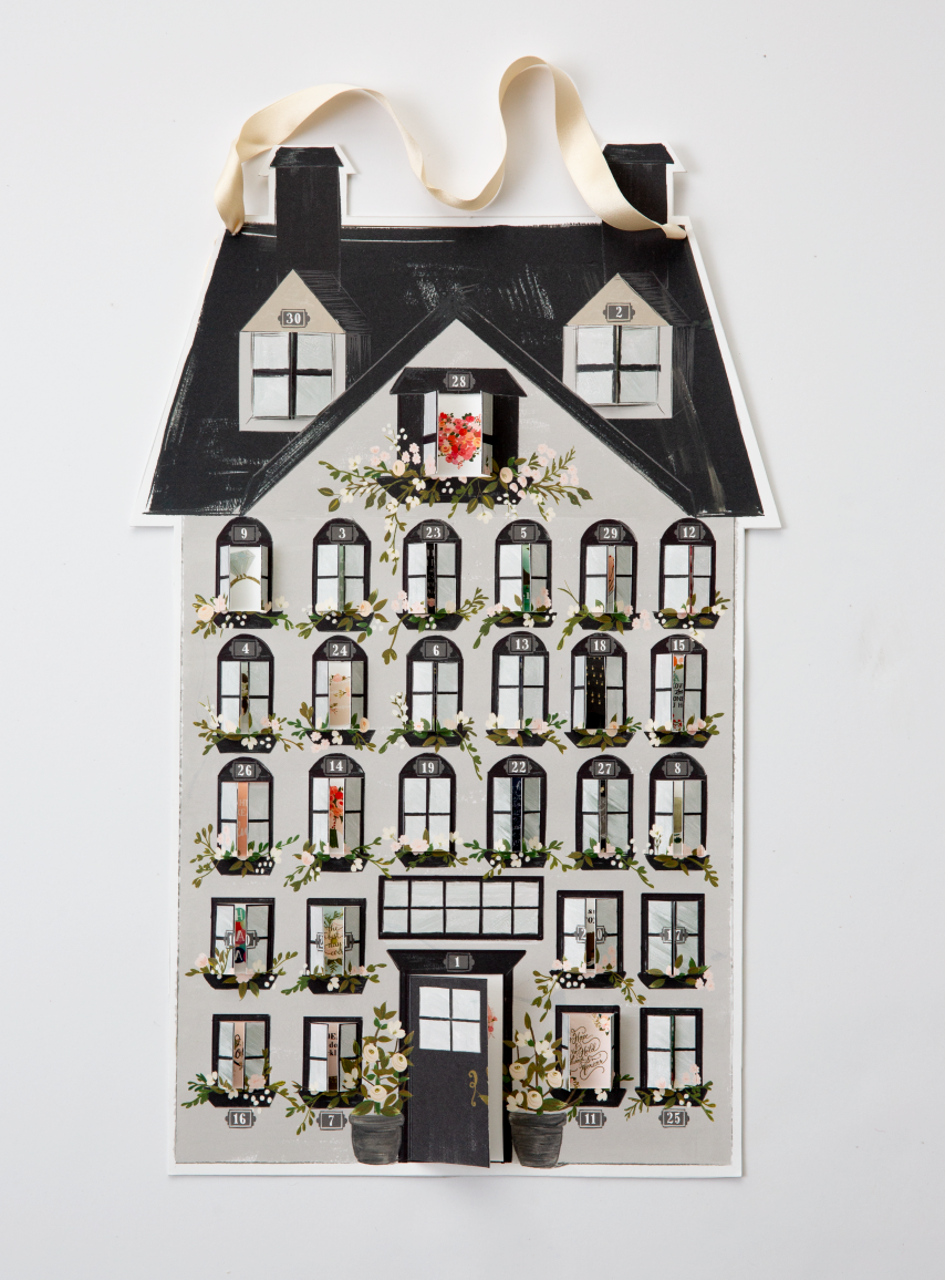 30 Day Wedding Countdown Calendar Starting any month, any day...countdown from 30 days to your big day. Each numbered window opens to a sweet thoughtful illustration. Printed on cardstock, this is a lightweight item meant for hanging, flat, with windows to open. Size is approx 19 in high by 12 inches wide. Each packaged in cello Satin cream ribbon included for hanging ©The First Snow
