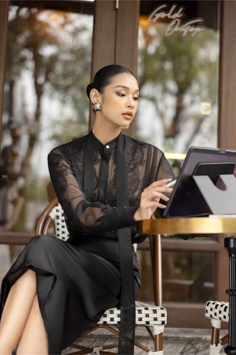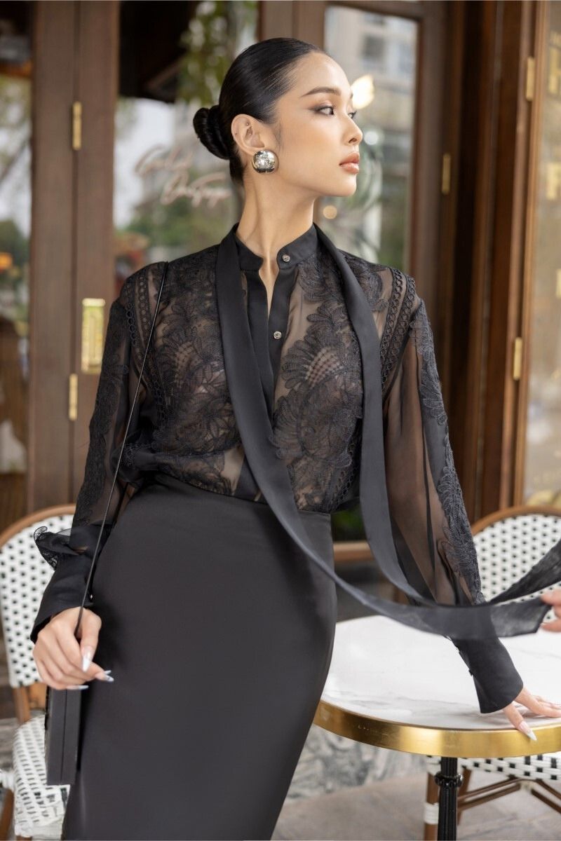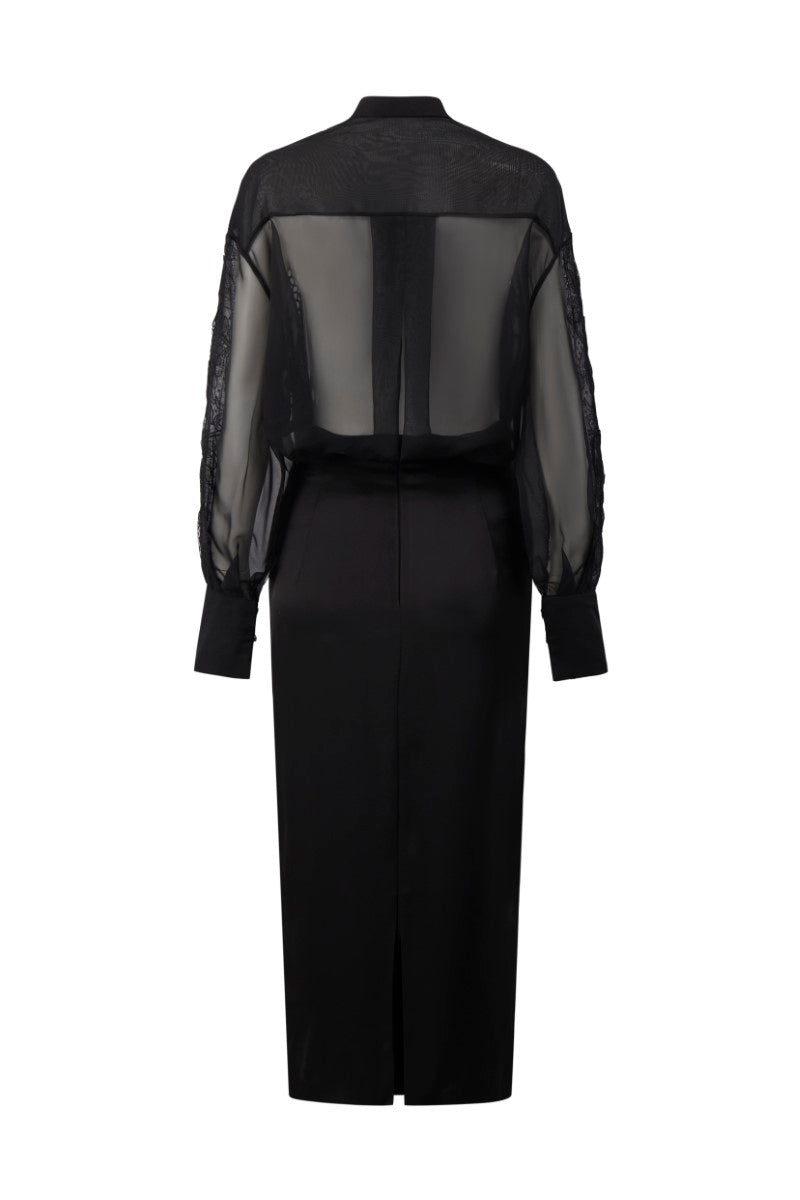 ARETHA BLACK SILK MIXED LACE SHIRT AND PENCIL SKIRT