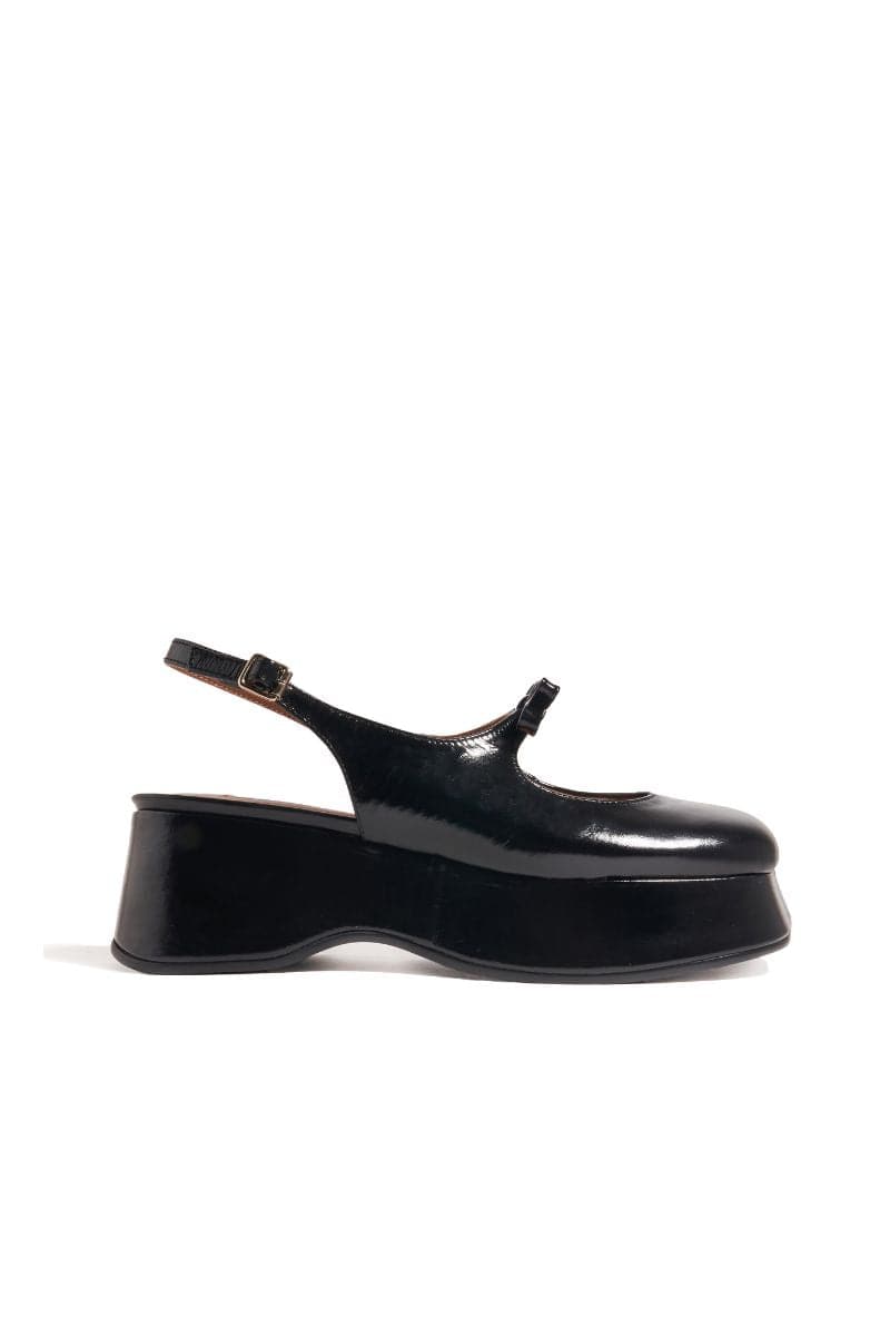 The Avignon platforms feature a cute style with a front upper adorned with ribbon details and a chunky heel.