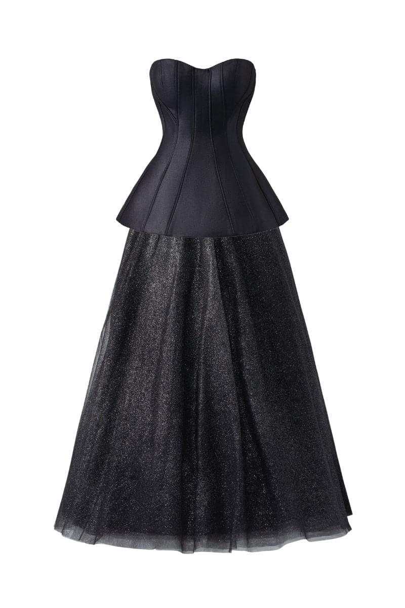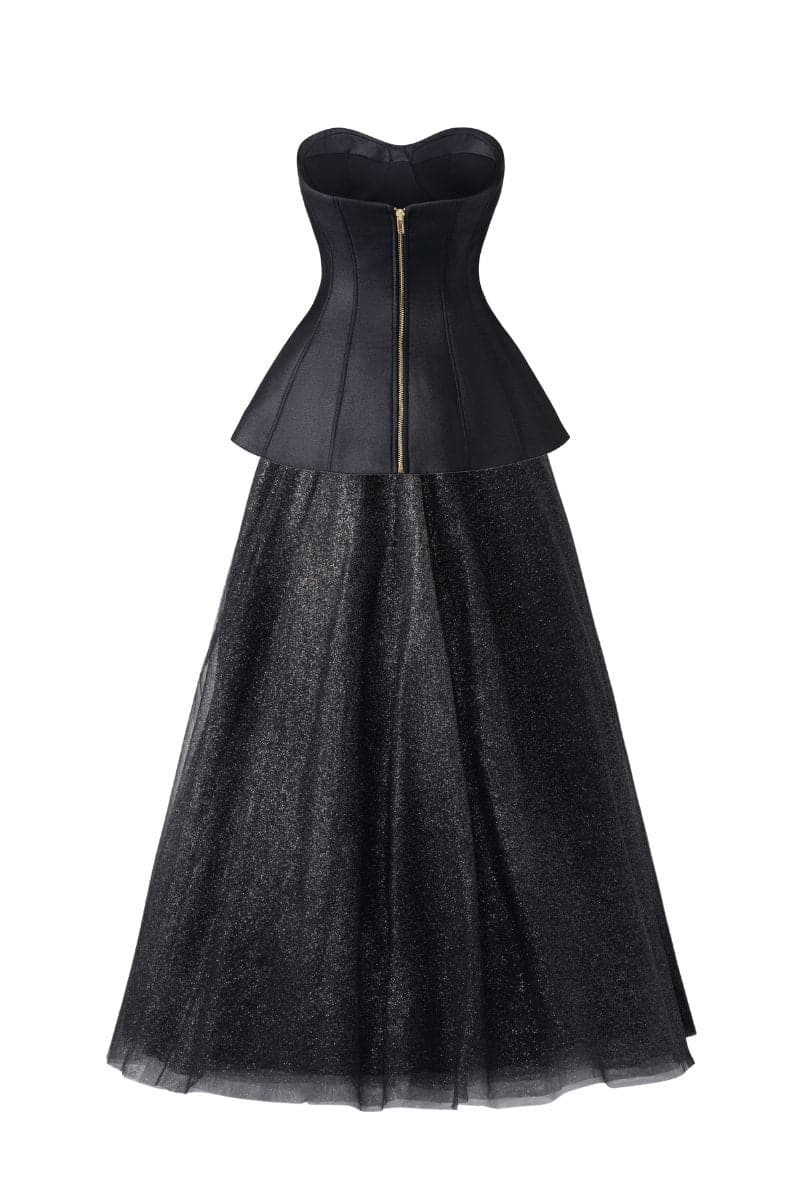 BLACK CLASSIC CORSET AND FLOWING SKIRT SET