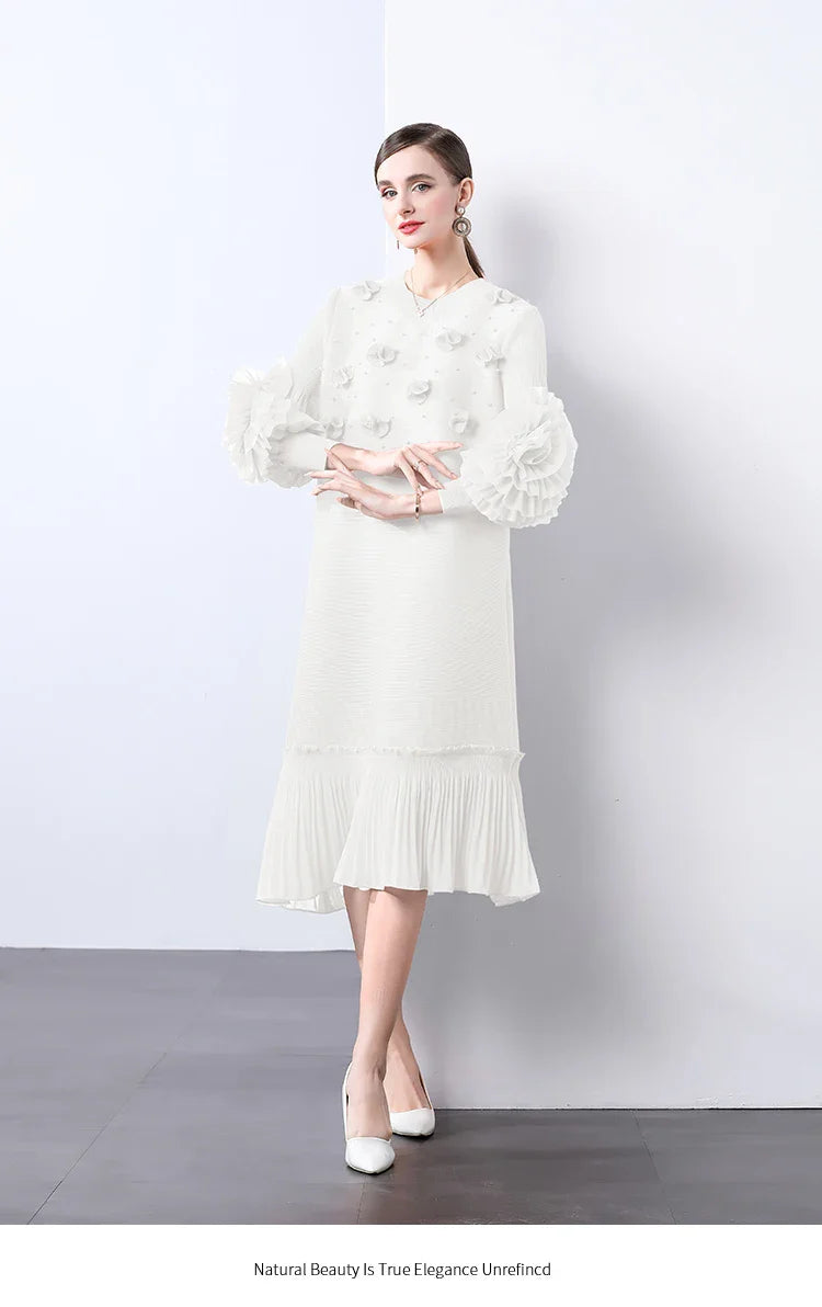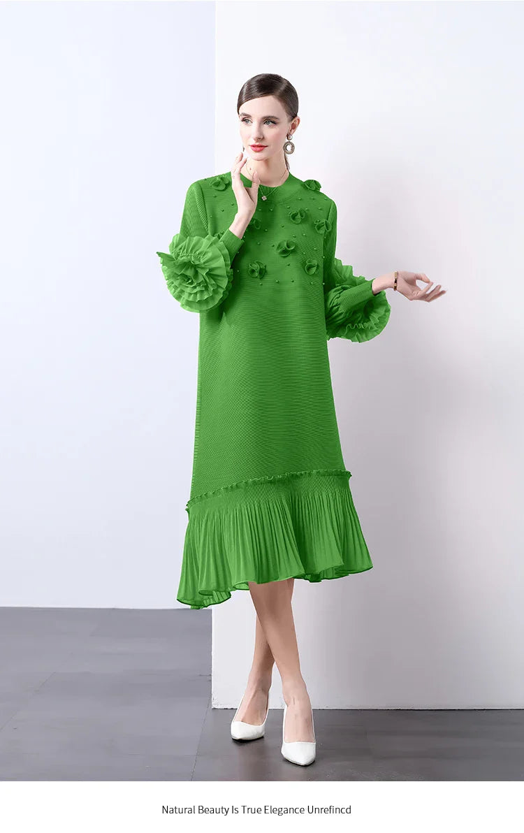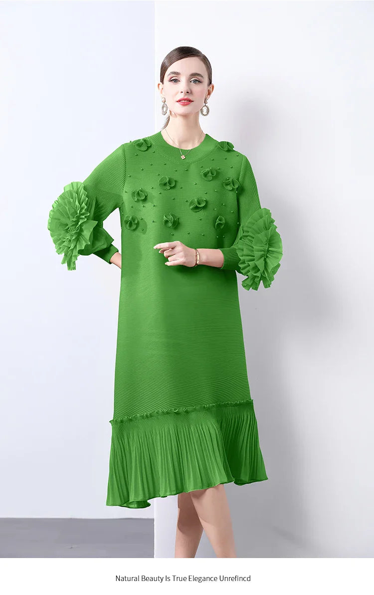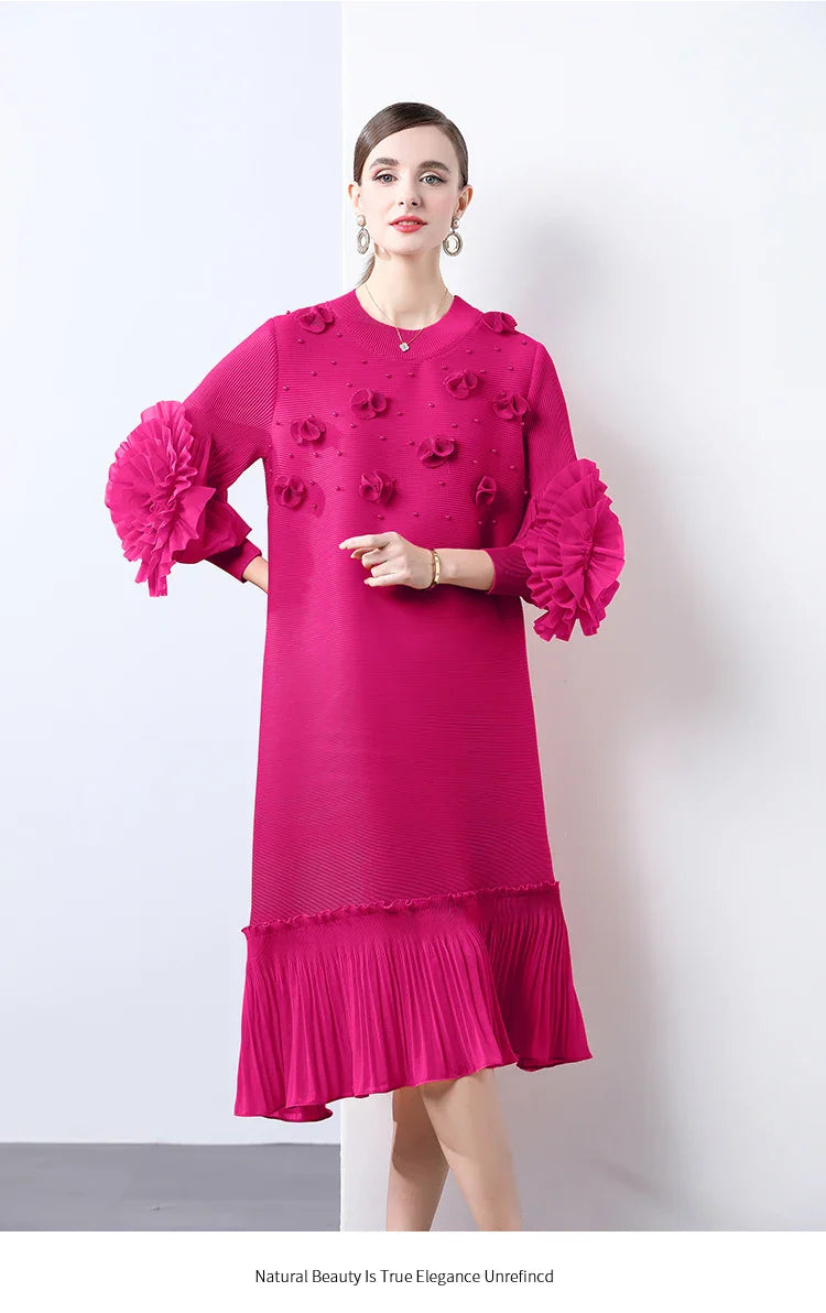 Struggling to find a cocktail dress that truly stands out? Tired of styles that compromise comfort for elegance? This pleated midi dress with statement sleeves delivers a refined, show-stopping look for upscale events.