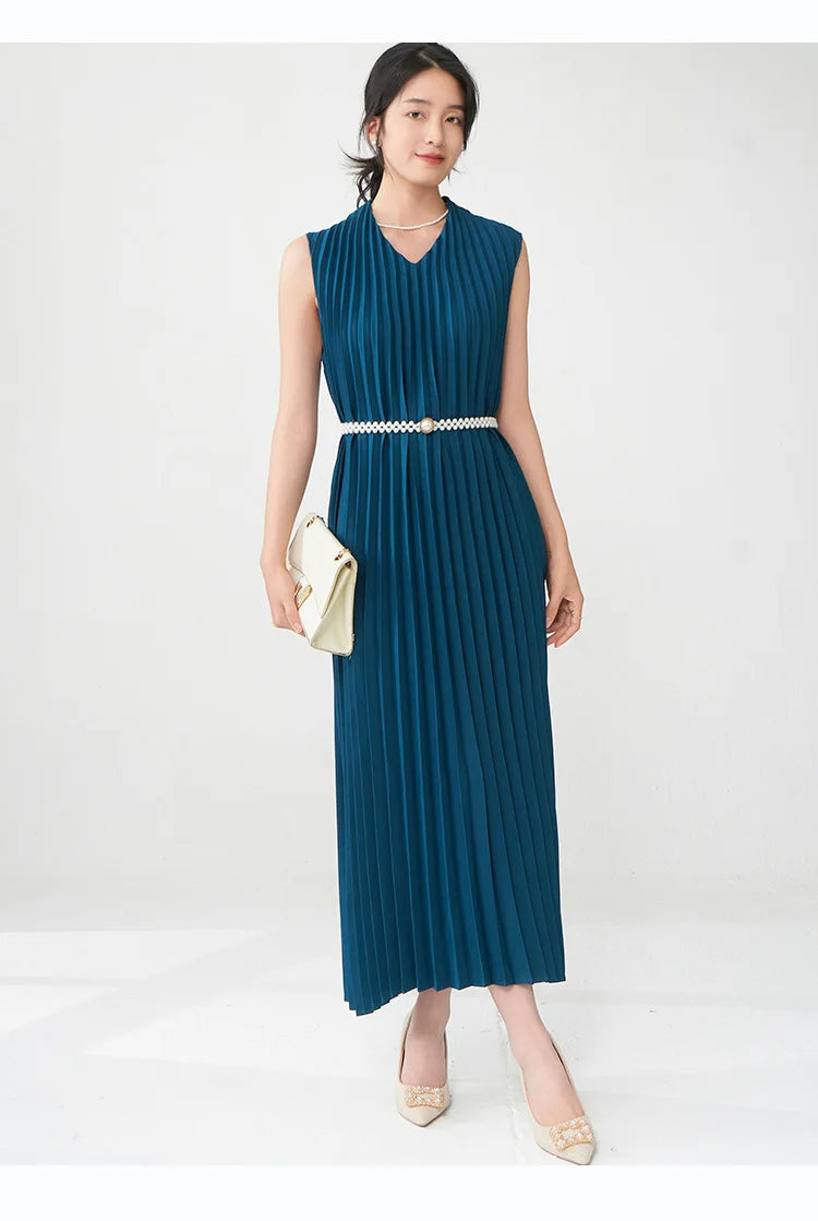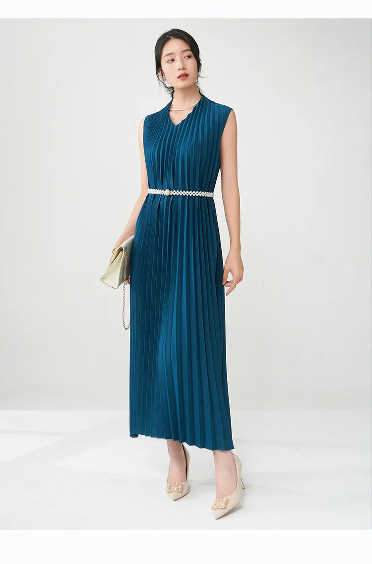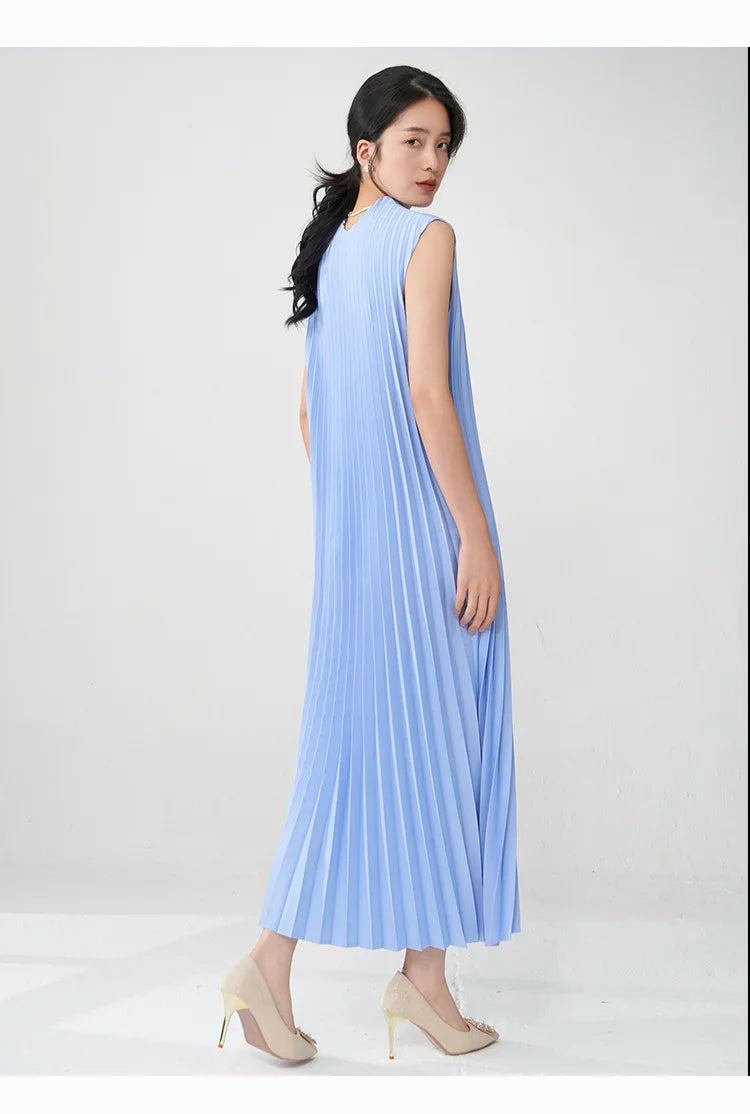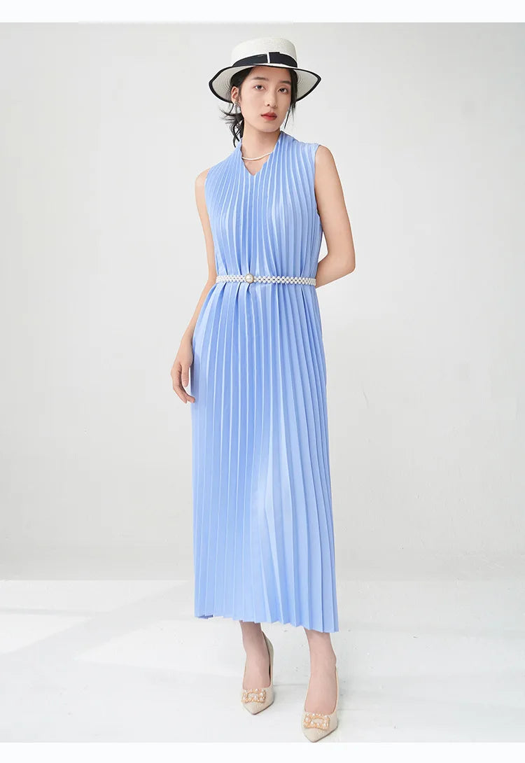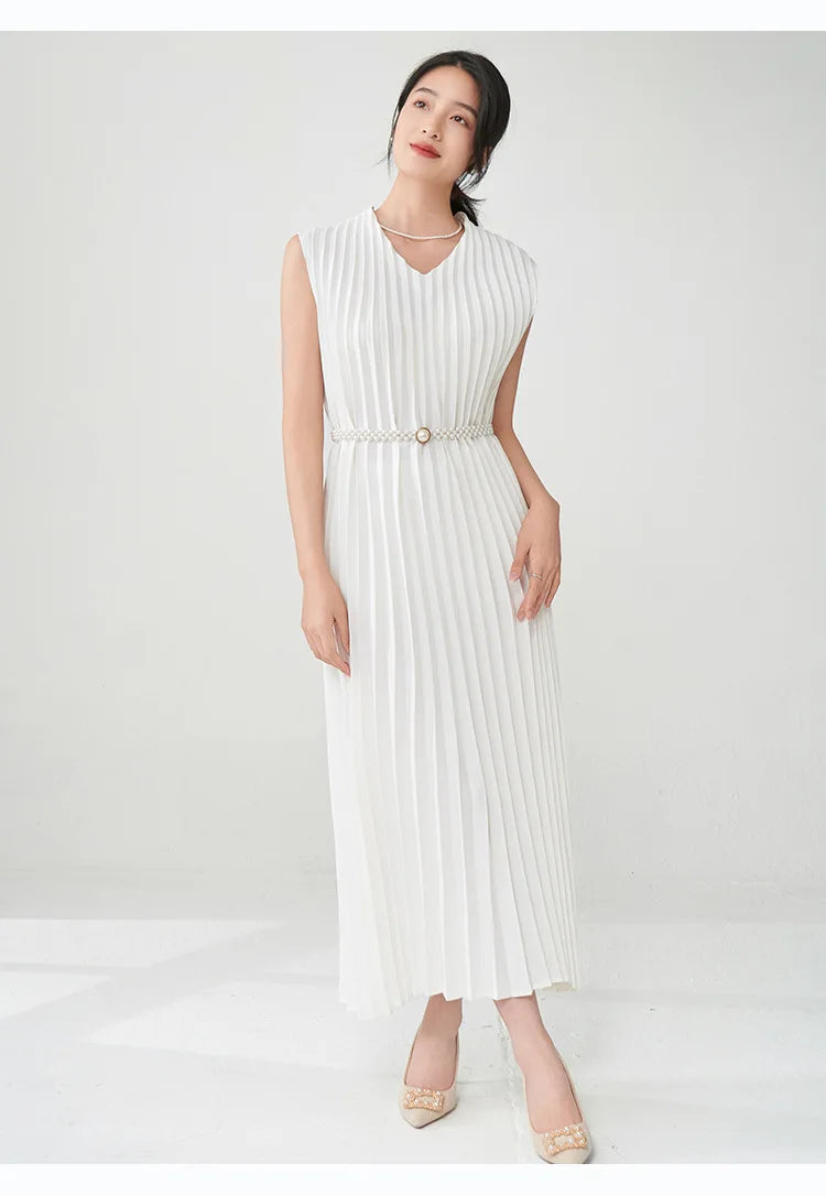 Contemporary Modern Sleeveless Pleated Midi Dress