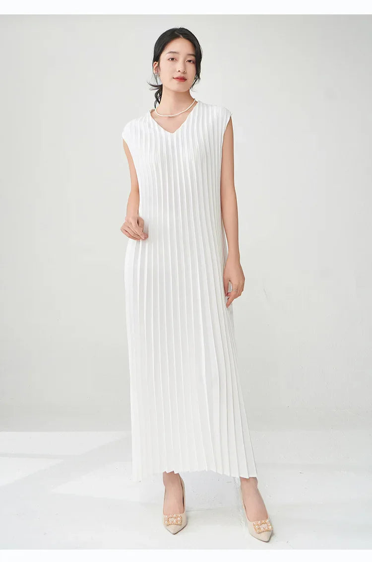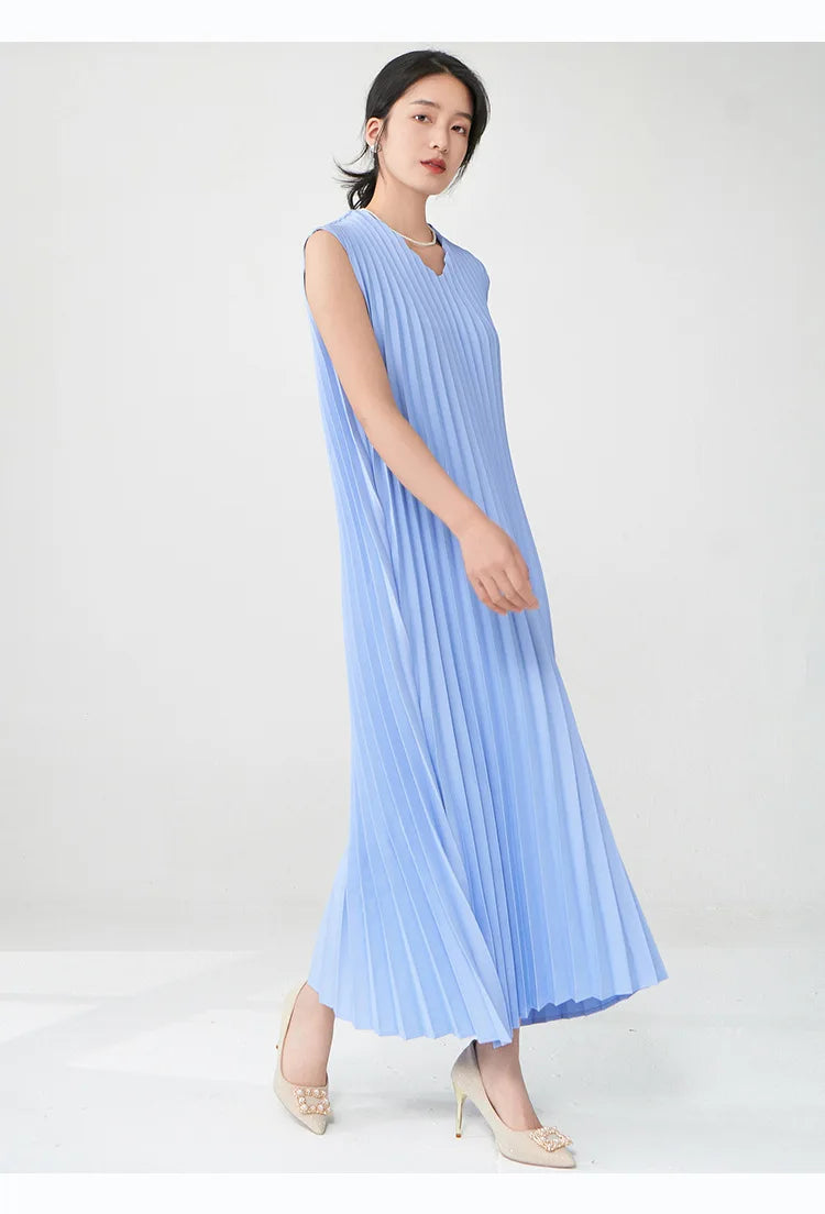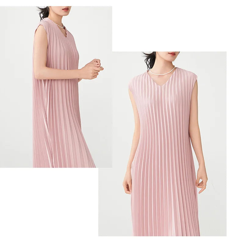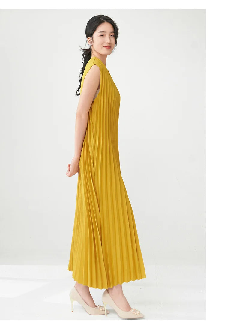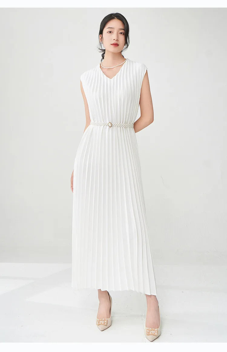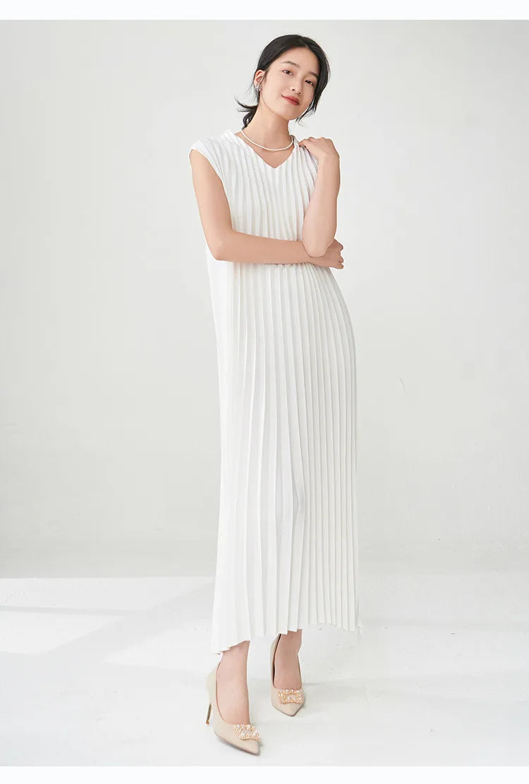 Contemporary Modern Sleeveless Pleated Midi Dress