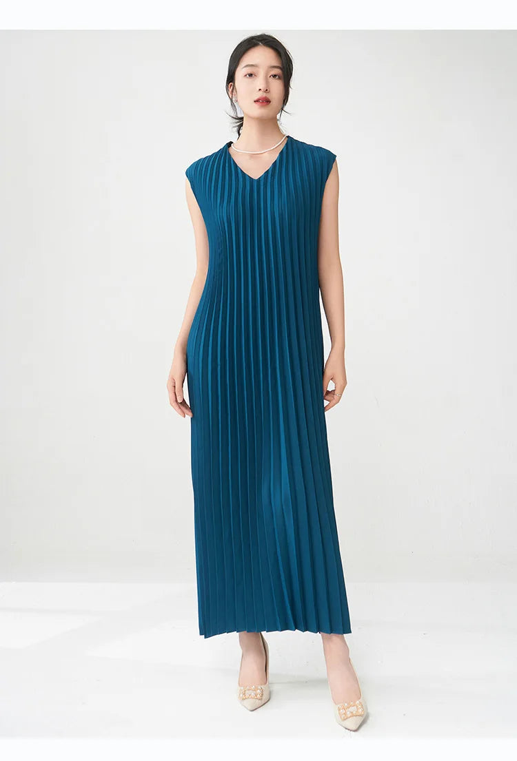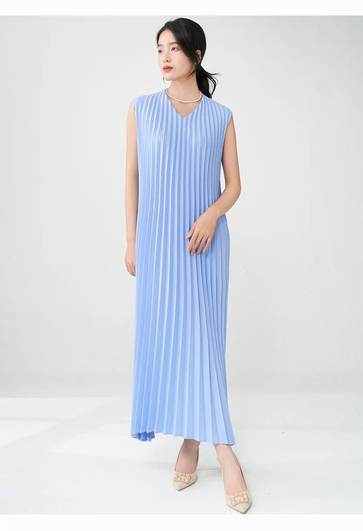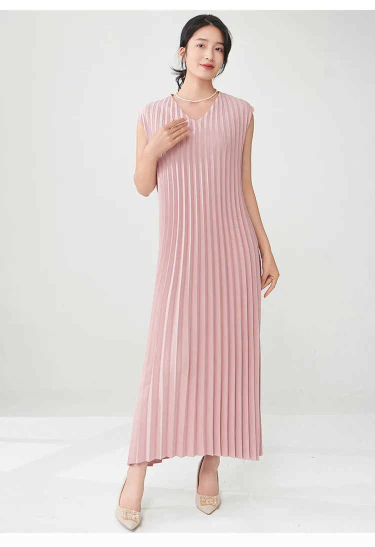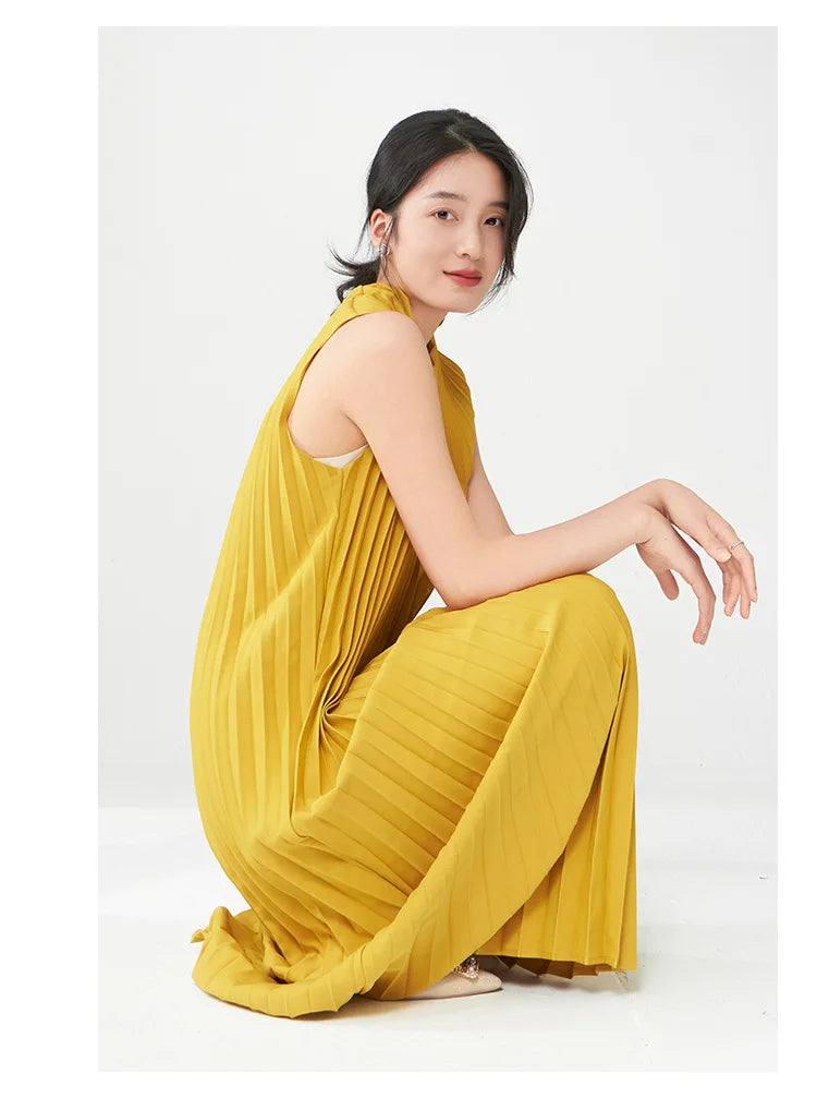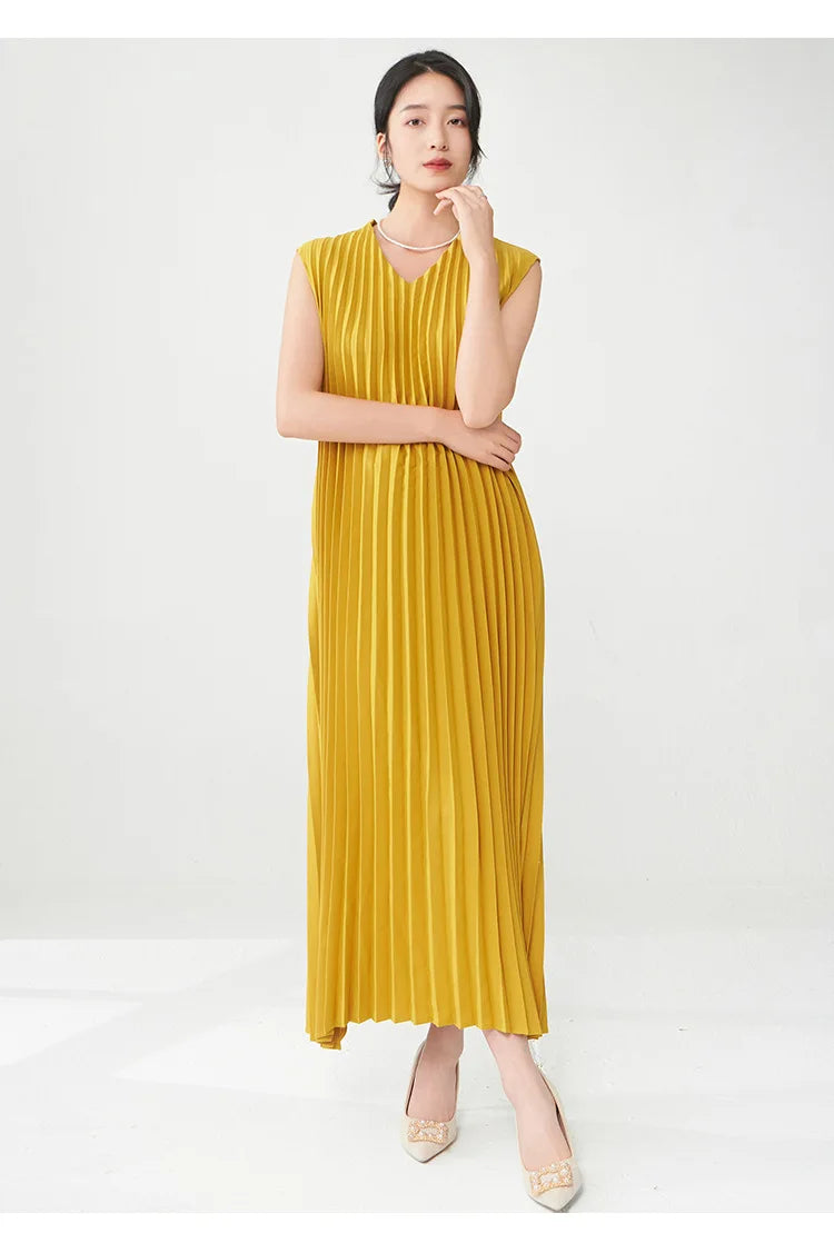 Contemporary Modern Sleeveless Pleated Midi Dress