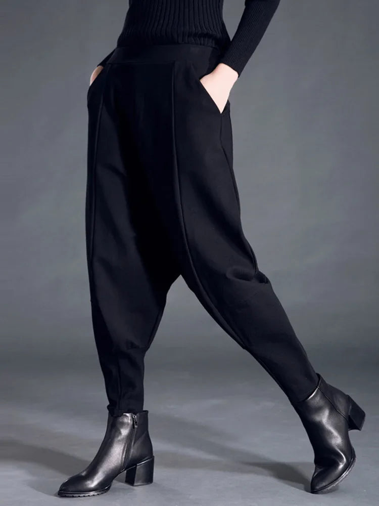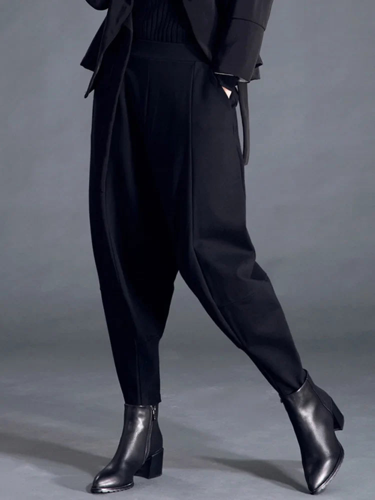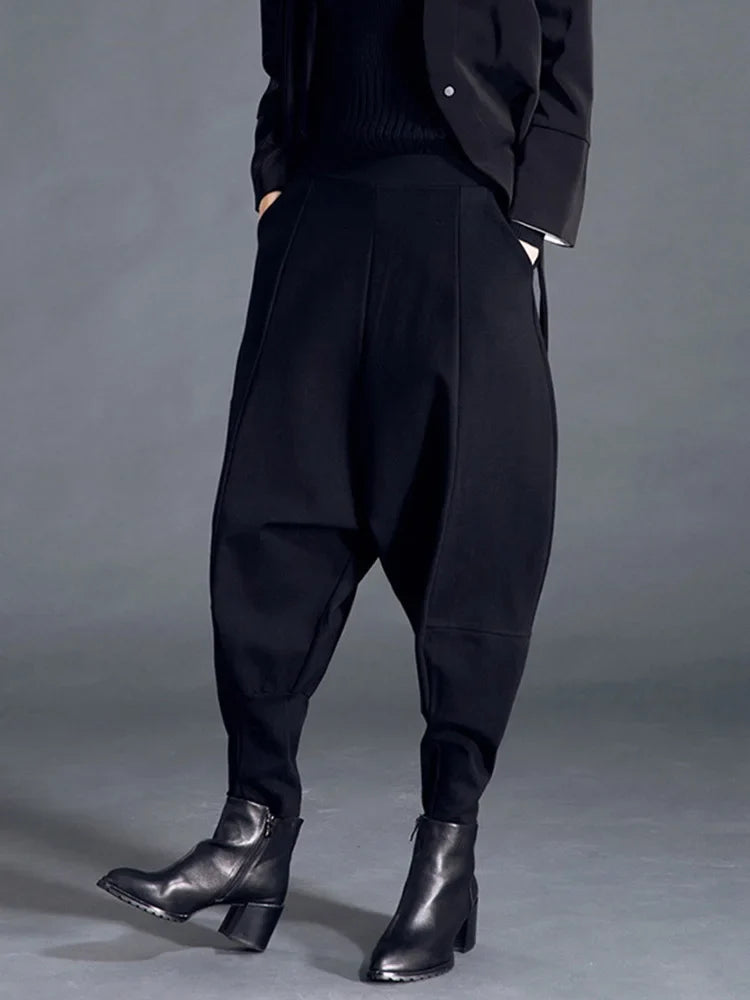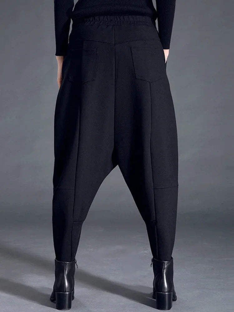 These couture black harem pants redefine luxury with their relaxed, flowing silhouette and elegant drape. Designed for both comfort and style, the elastic waistband ensures a perfect fit, making them a statement piece for any wardrobe.