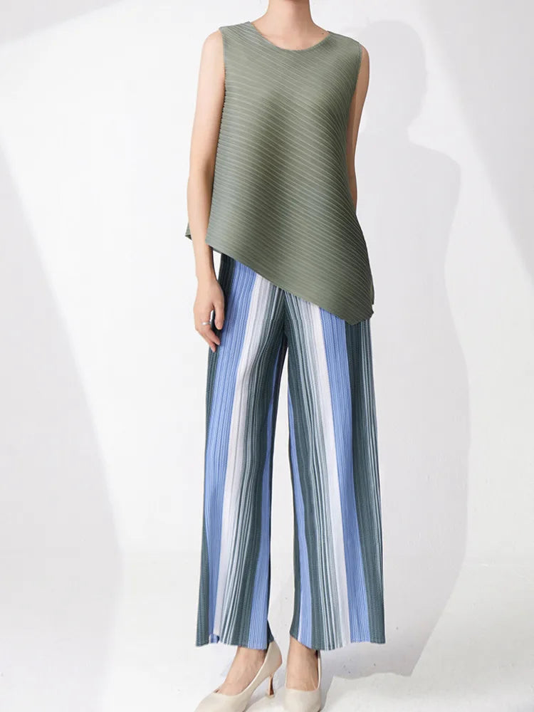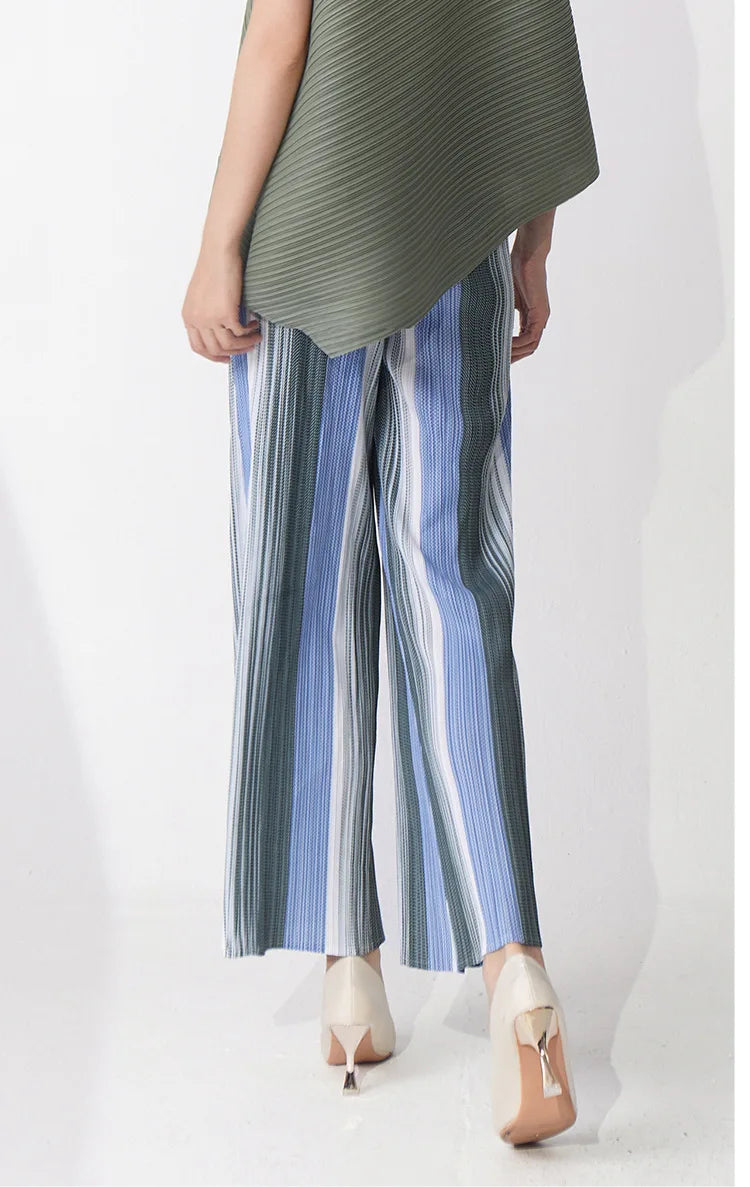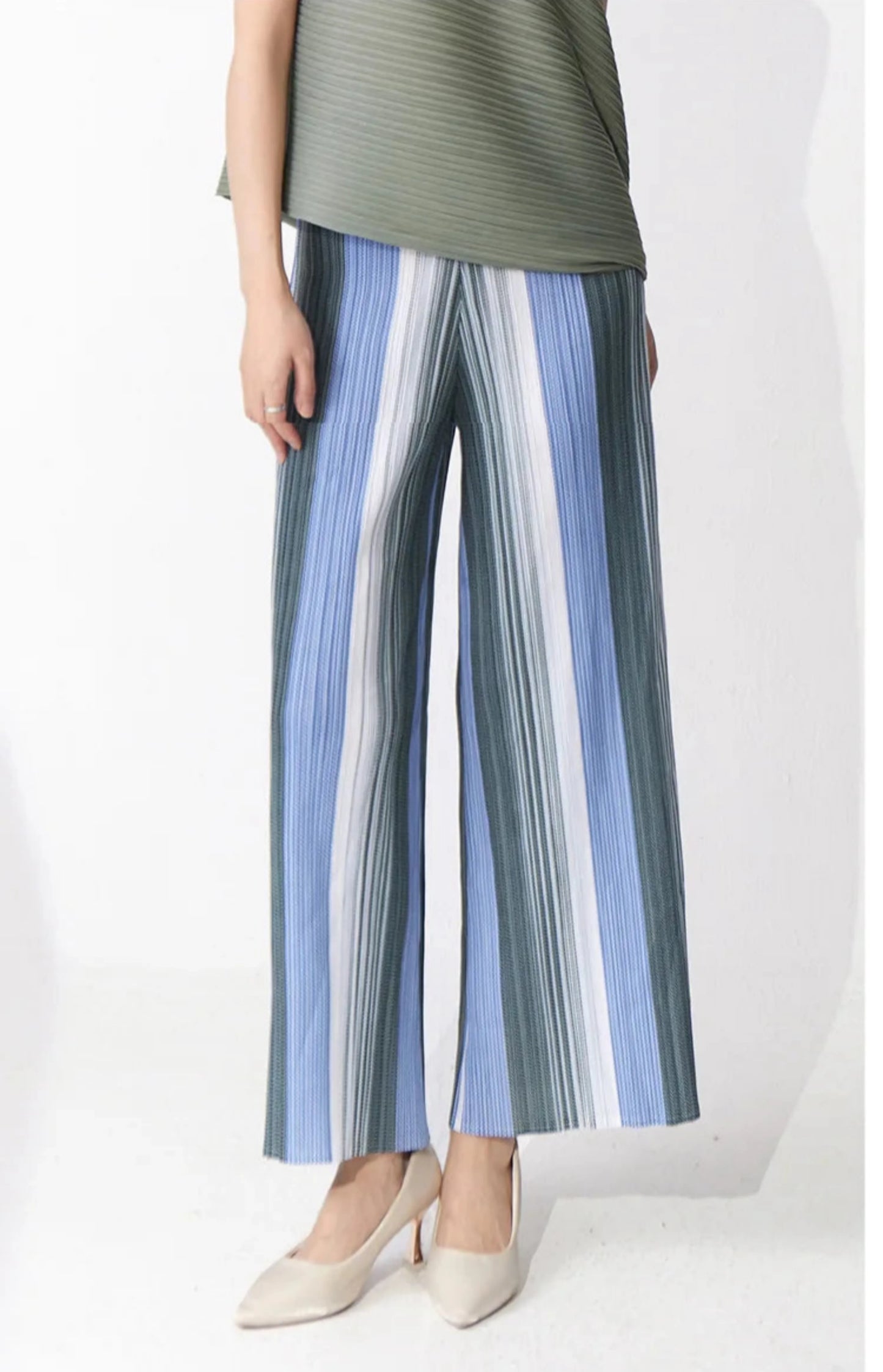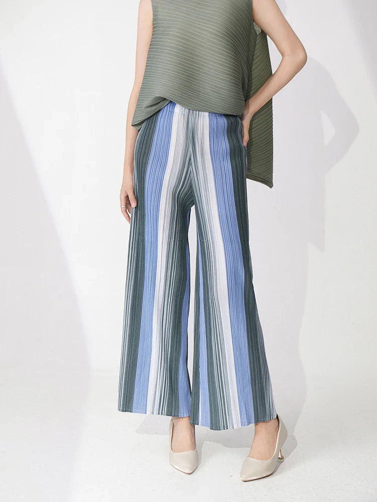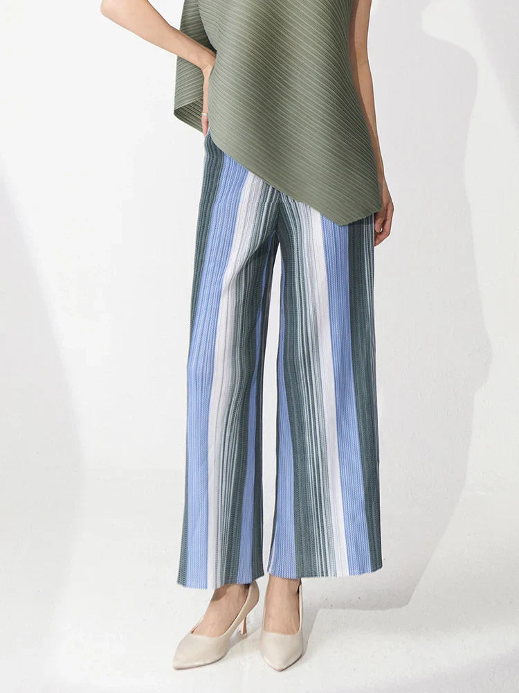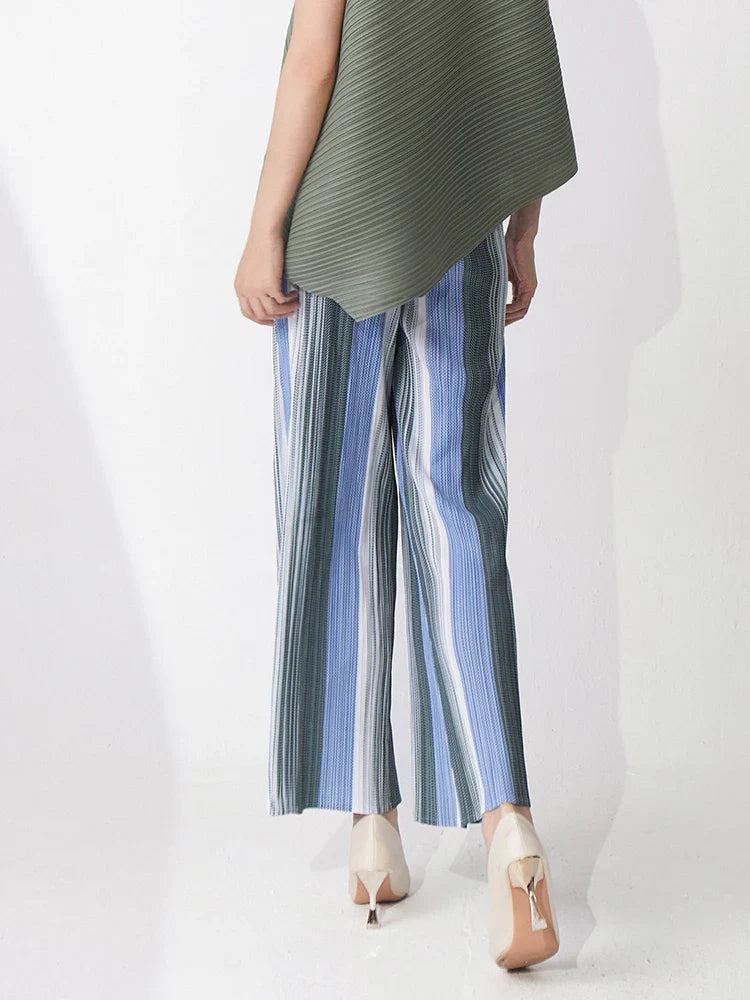 Striped Pleated Wide Leg Pants - Palazzo Style