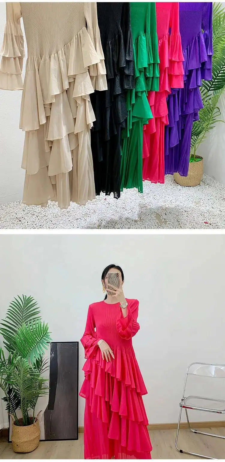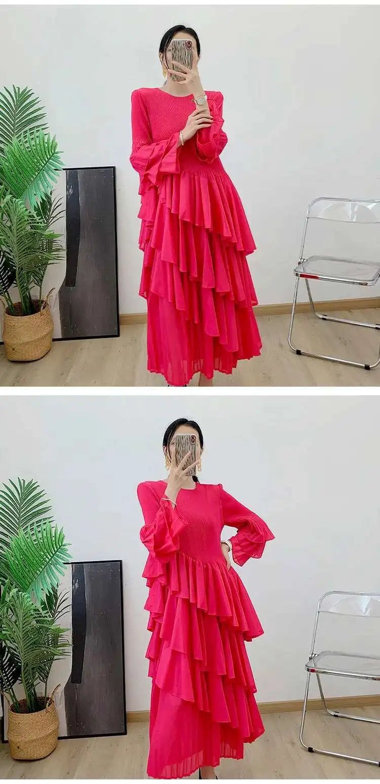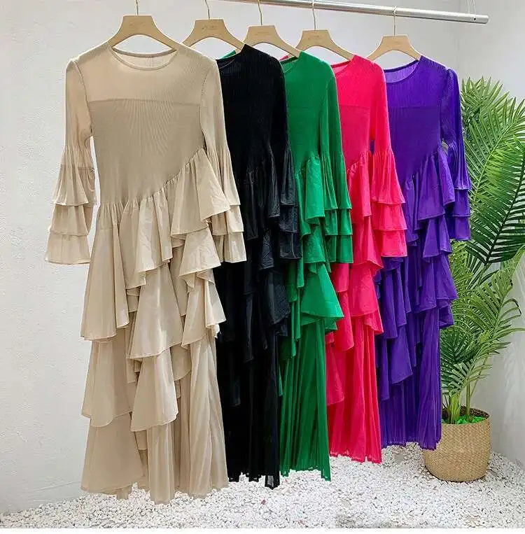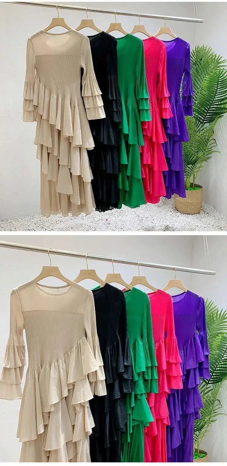 Elegant Ruffled Pleated Dress