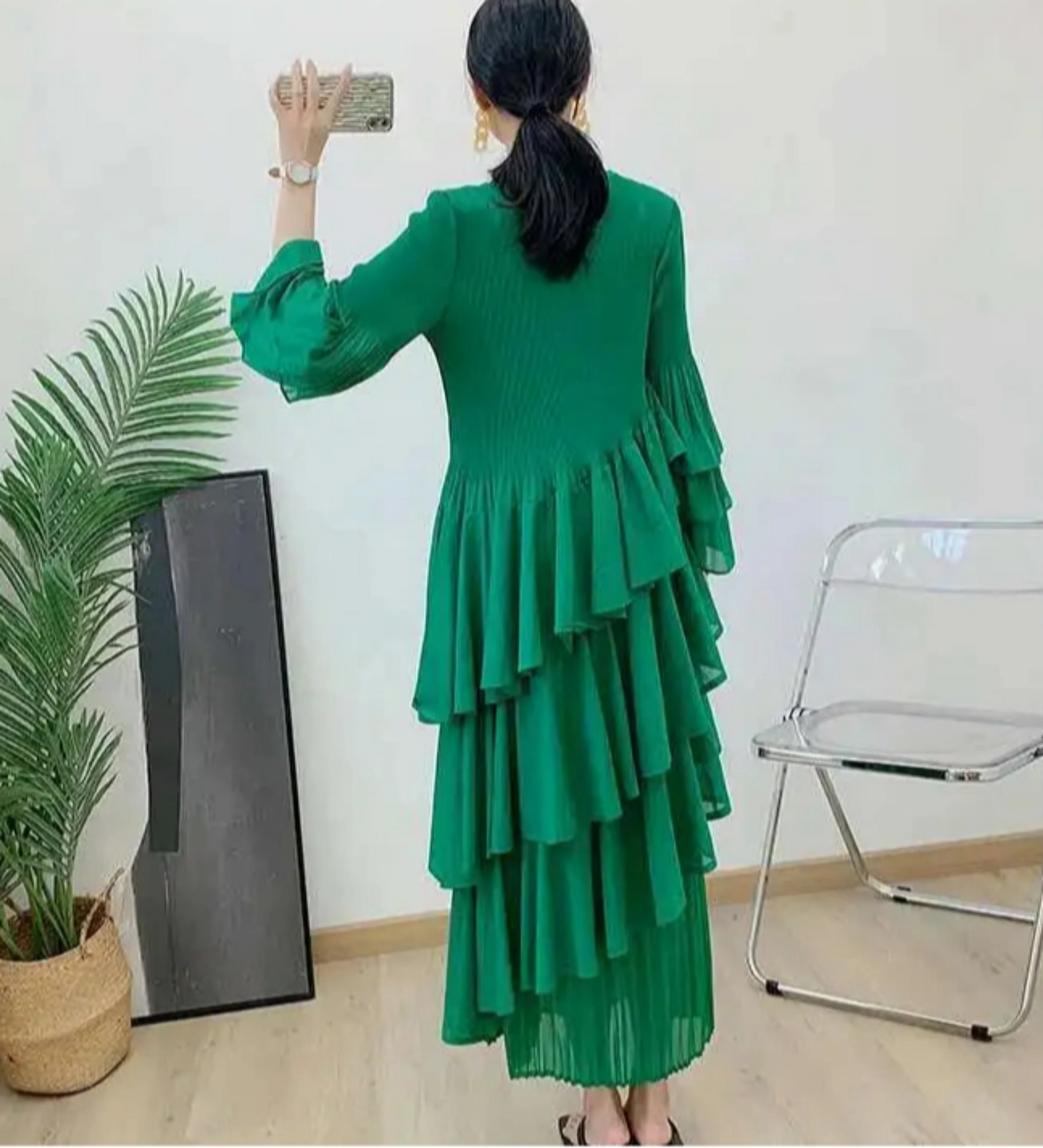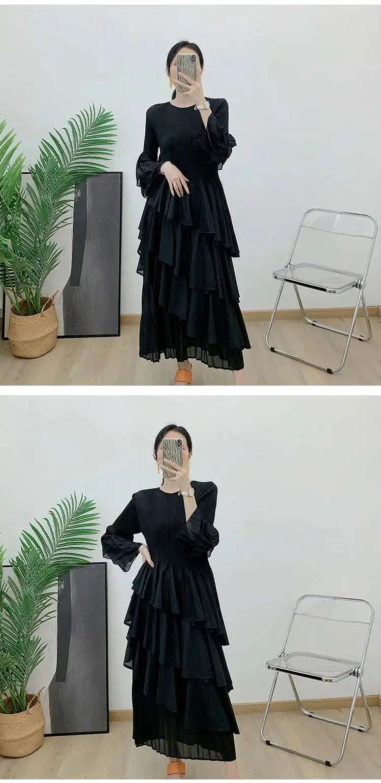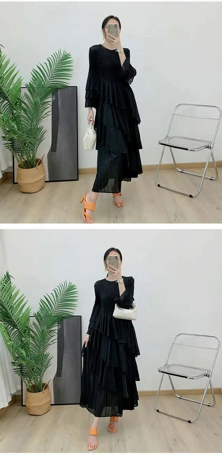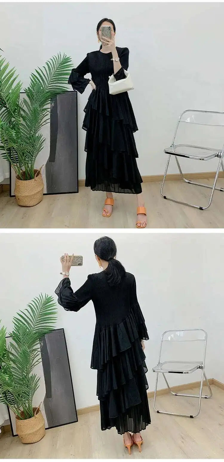 Elegant Ruffled Pleated Dress