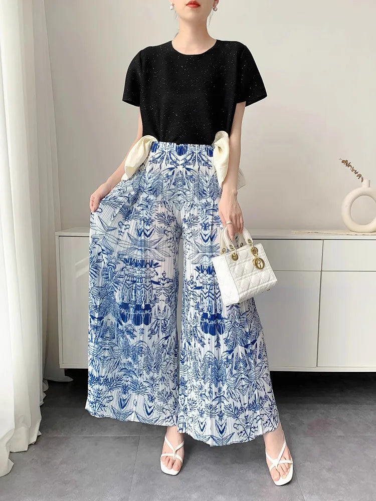 High-waisted, wide-leg pants featuring authentic Japanese pleats and a stretchy elastic waistband. Designed for comfort and style, these pants move with you while maintaining an elegant, luxurious look.