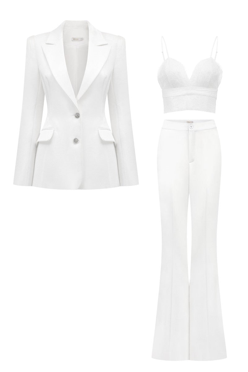 FIDELIA WHITE TAFFETA SLIM FIT THREE PIECE SET