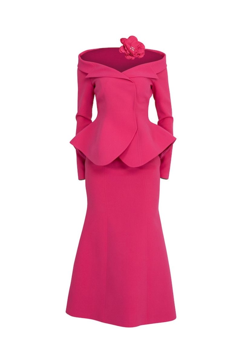 FUCHSIA TWO-PIECE HANDMADE FLORAL DETAIL MAXI SUIT