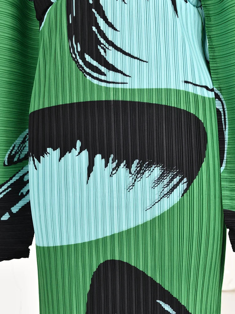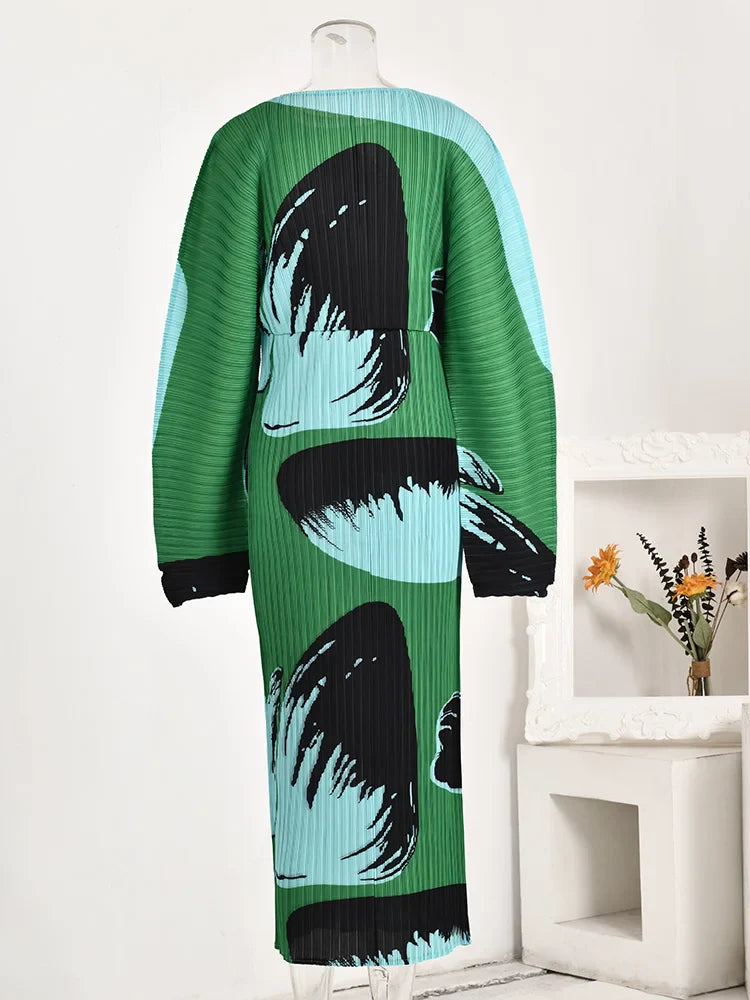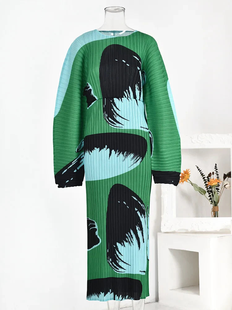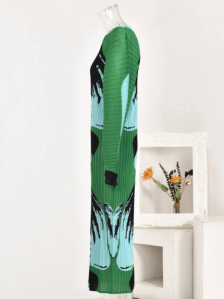 Plisse Pleated Long Sleeve Midi Dress