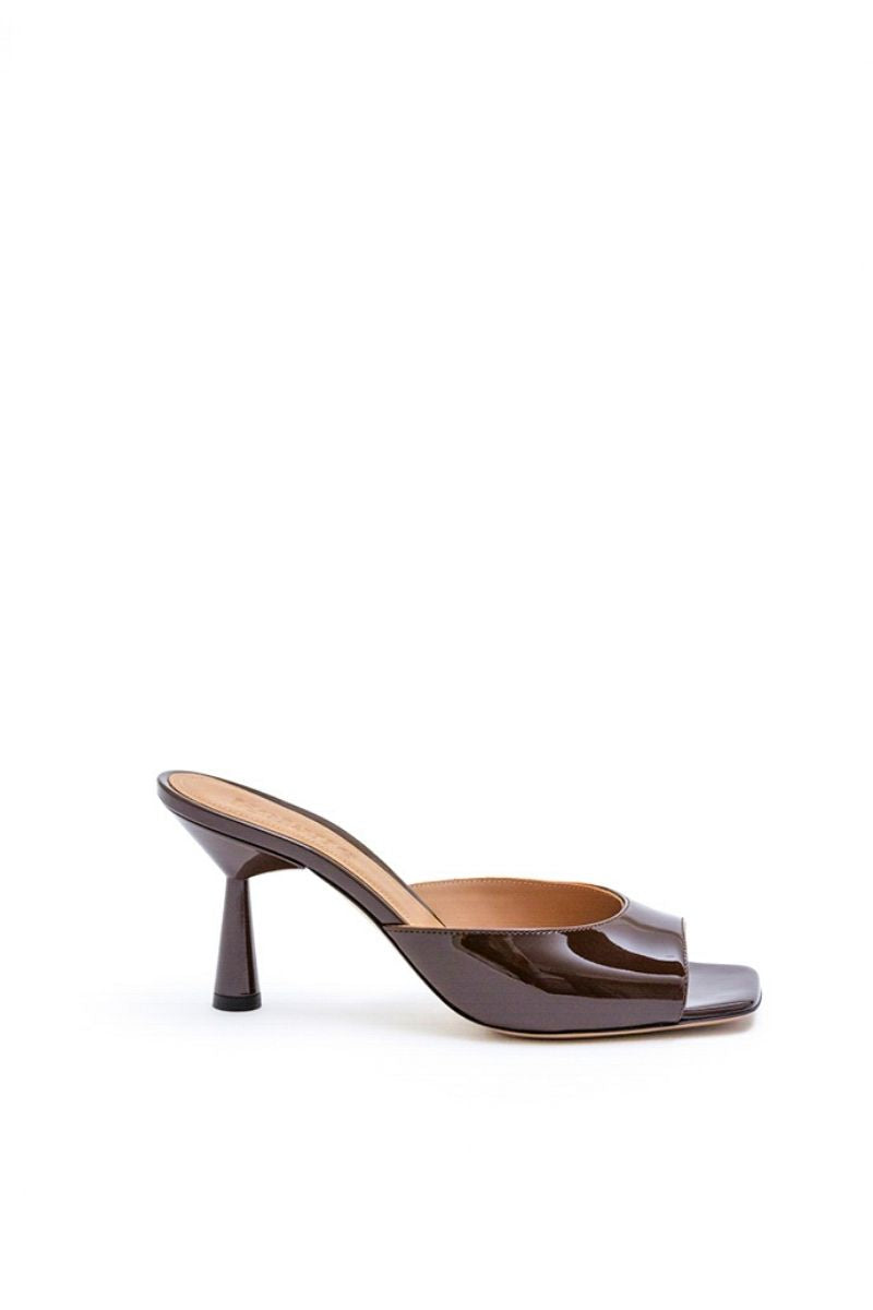 The Greta mule combines classic elegance with a modern sculptural heel. Made from glossy patent leather in rich chocolate brown, it features a low-cut upper set on a comfortable 70mm square-toe heel. Pair it with jeans for an effortless cool-girl vibe or a monochromatic outfit for refined style.