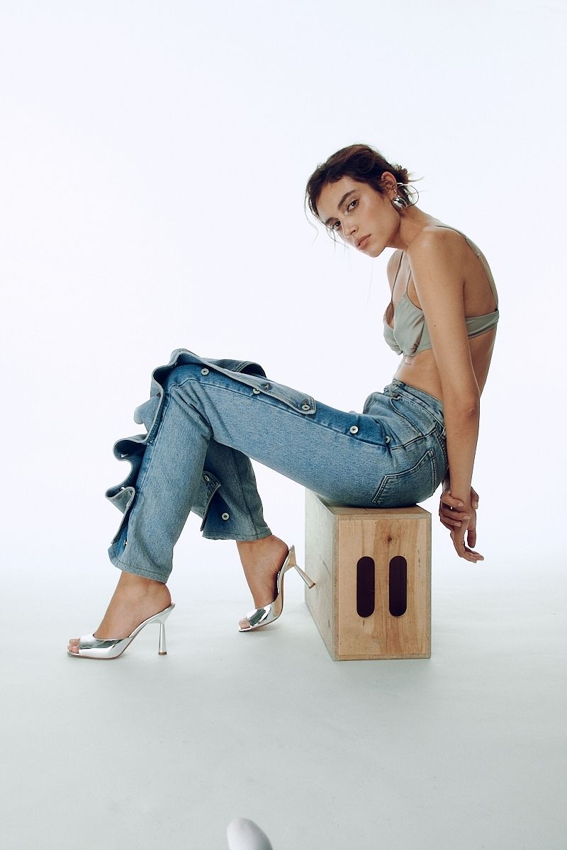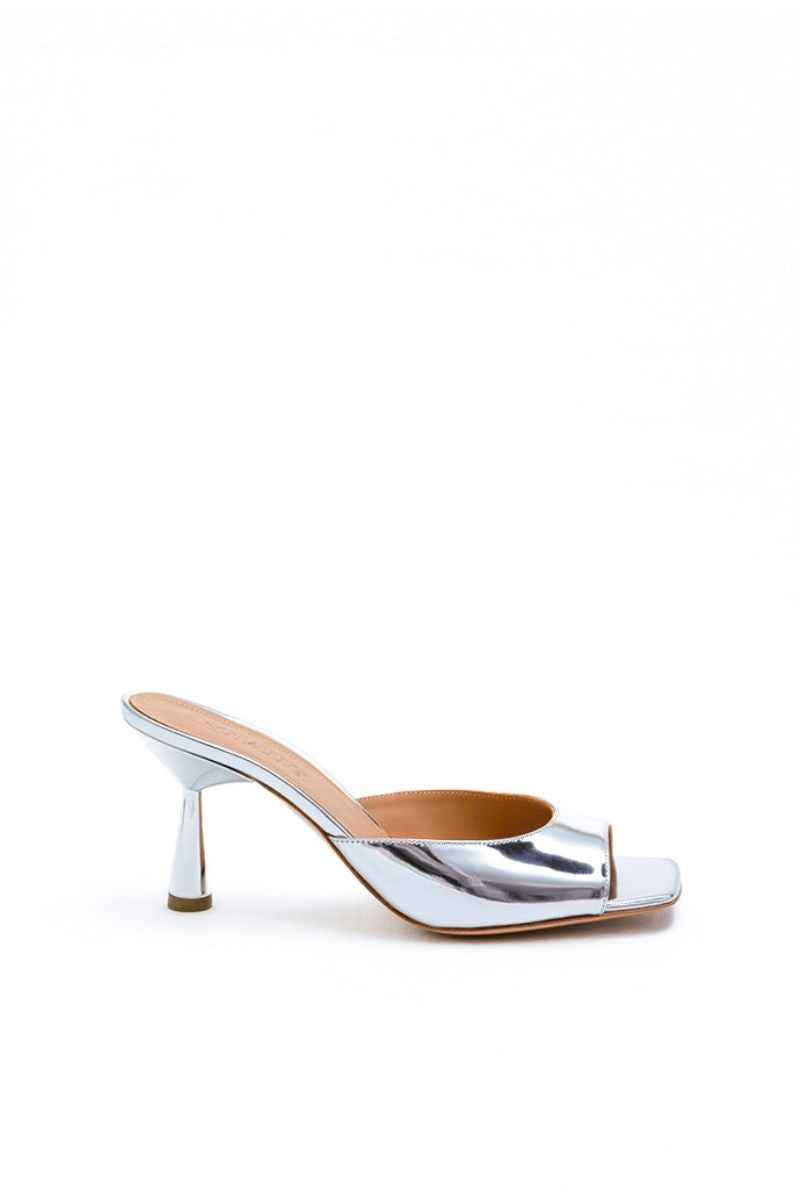 The Greta mule combines classic elegance with a modern sculptural heel. Crafted from mirrored leather, this shoe creates a striking interplay of reflections, especially under low light. It features a low-cut upper set on a comfortable 70mm square-toe heel. Wear yours casually or dressed up.