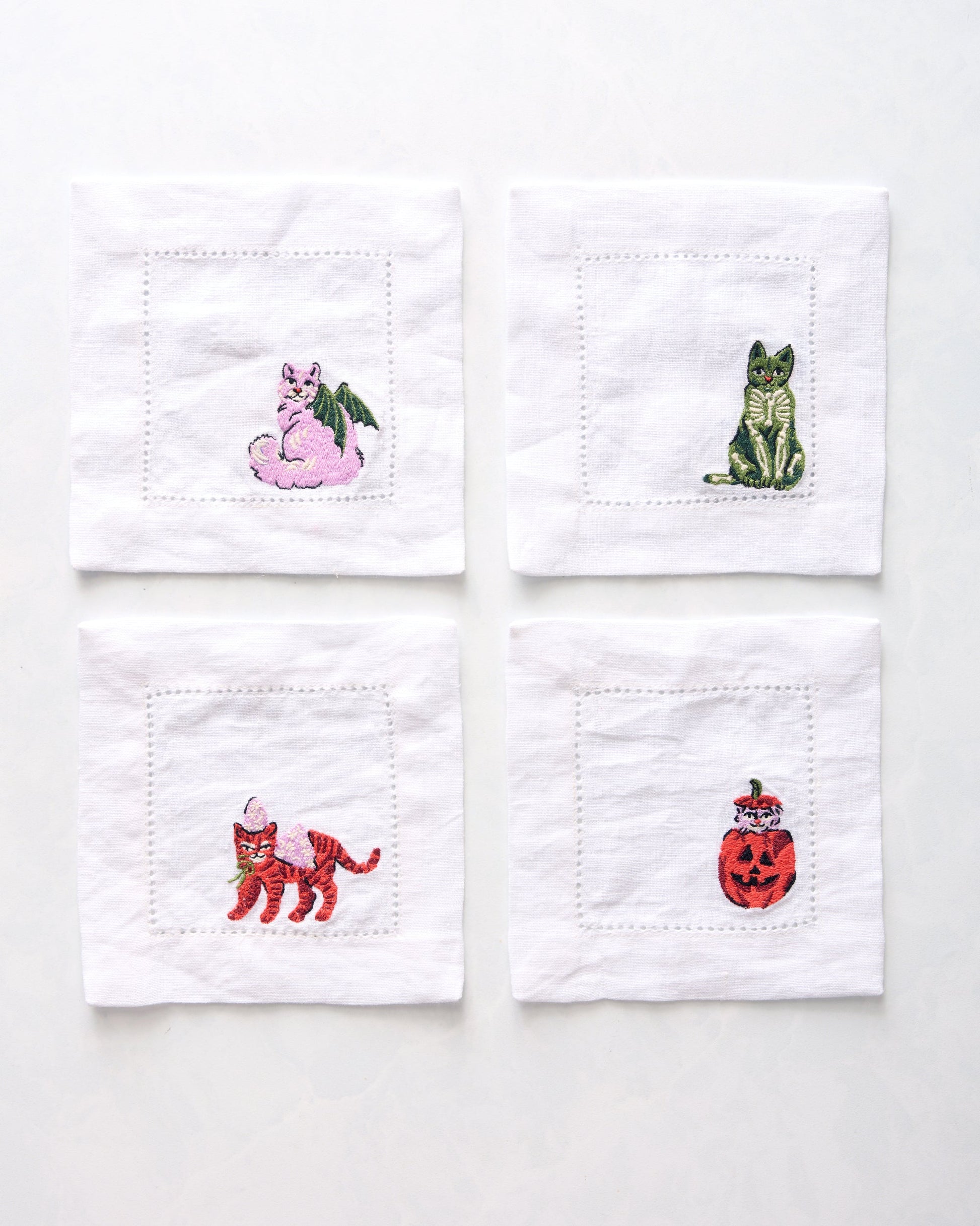 - Add a scary-cute touch to your cocktail hour with our Halloween House Cats napkins.