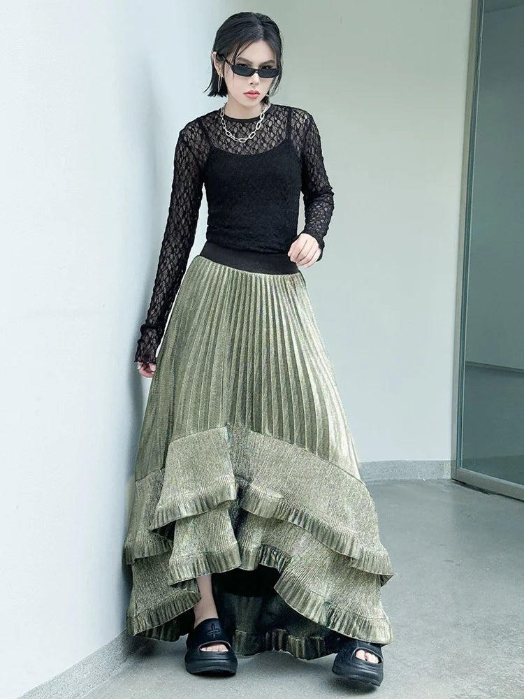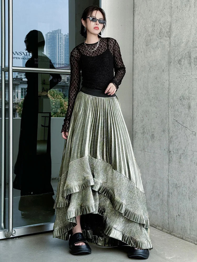 Metallic Asymmetric Pleated Skirt