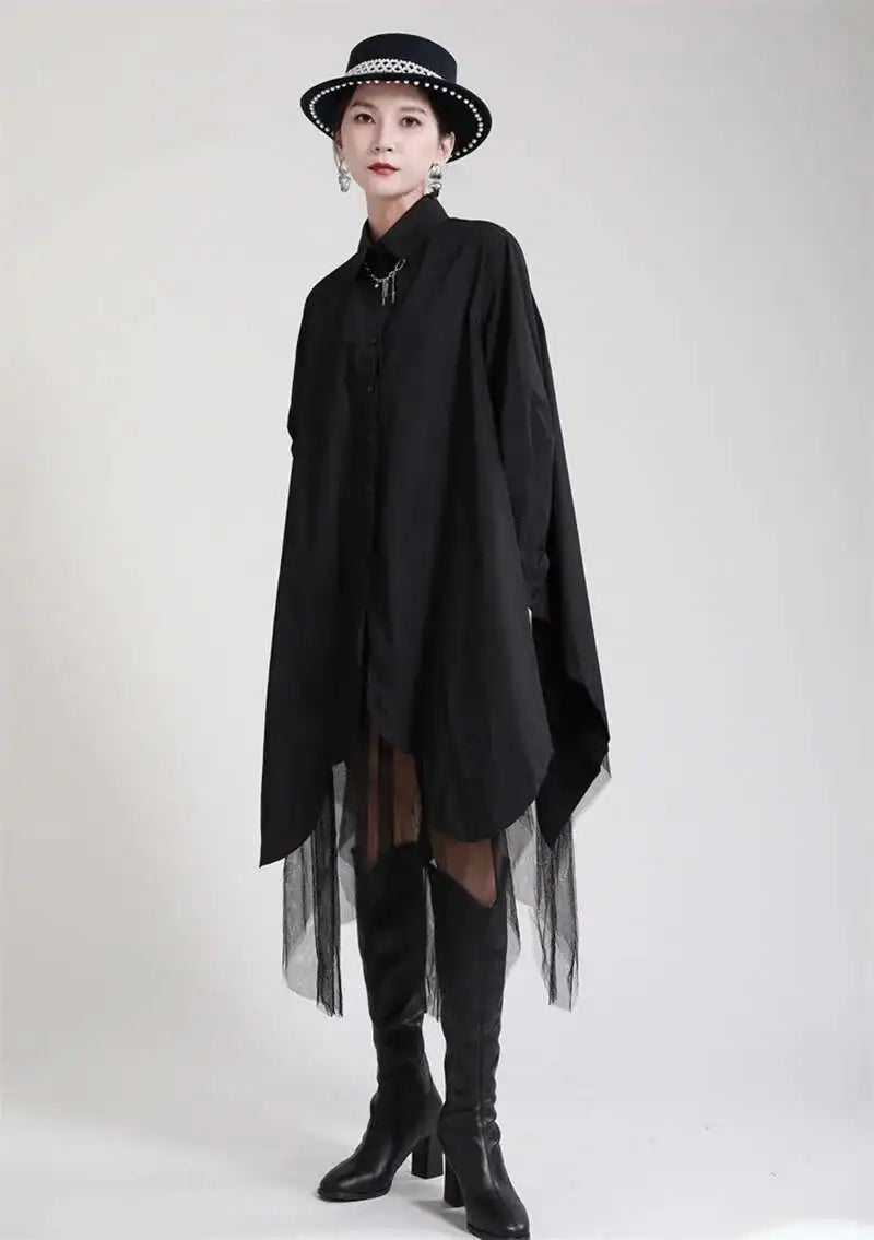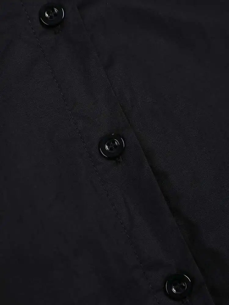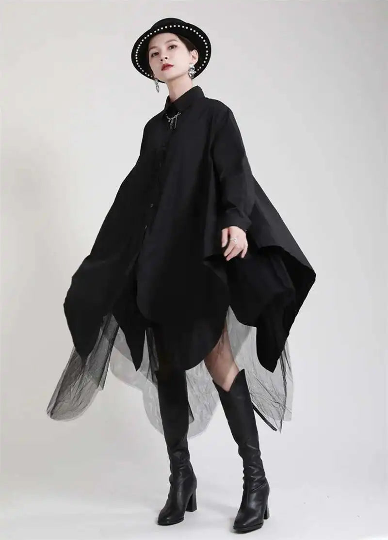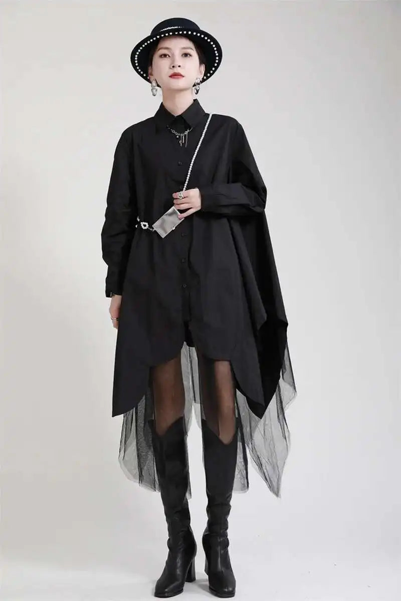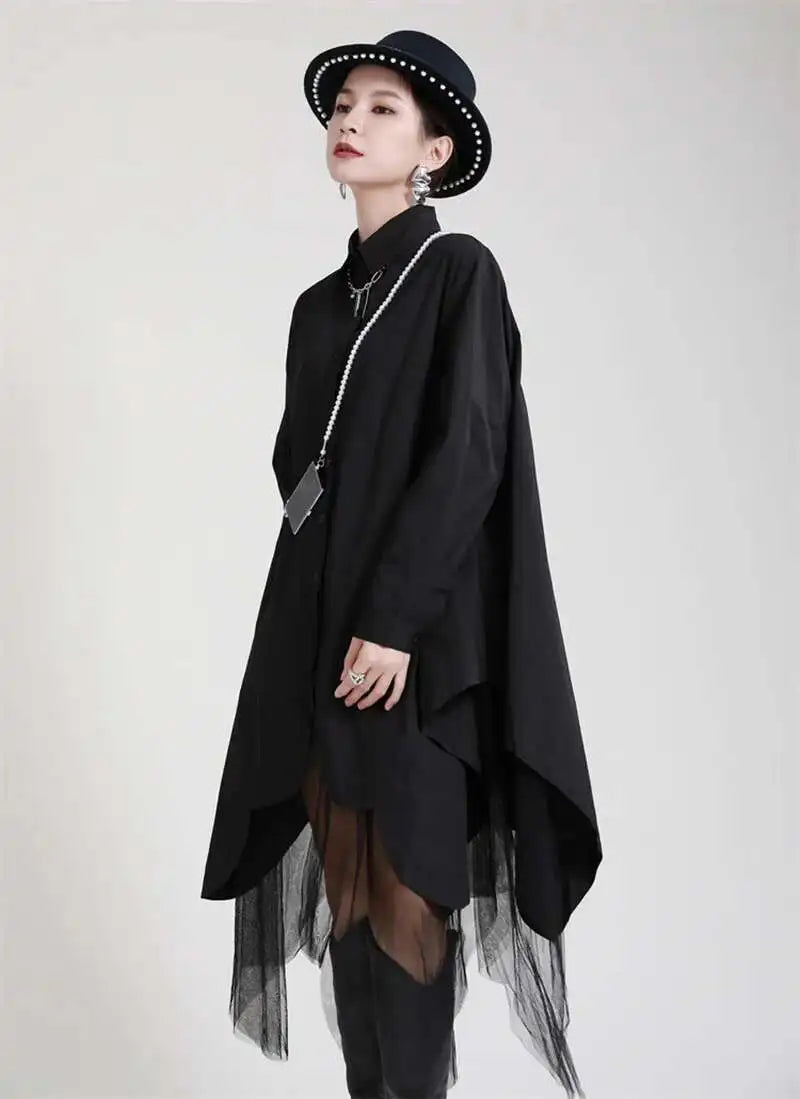 Make a bold statement with the Japanese avant-garde oversized midi shirt dress. Crafted from a soft cotton blend, this full-sleeve dress blends fashion-forward design with wearable comfort.