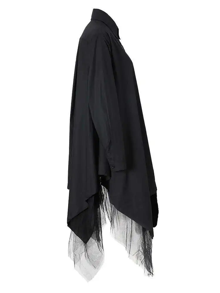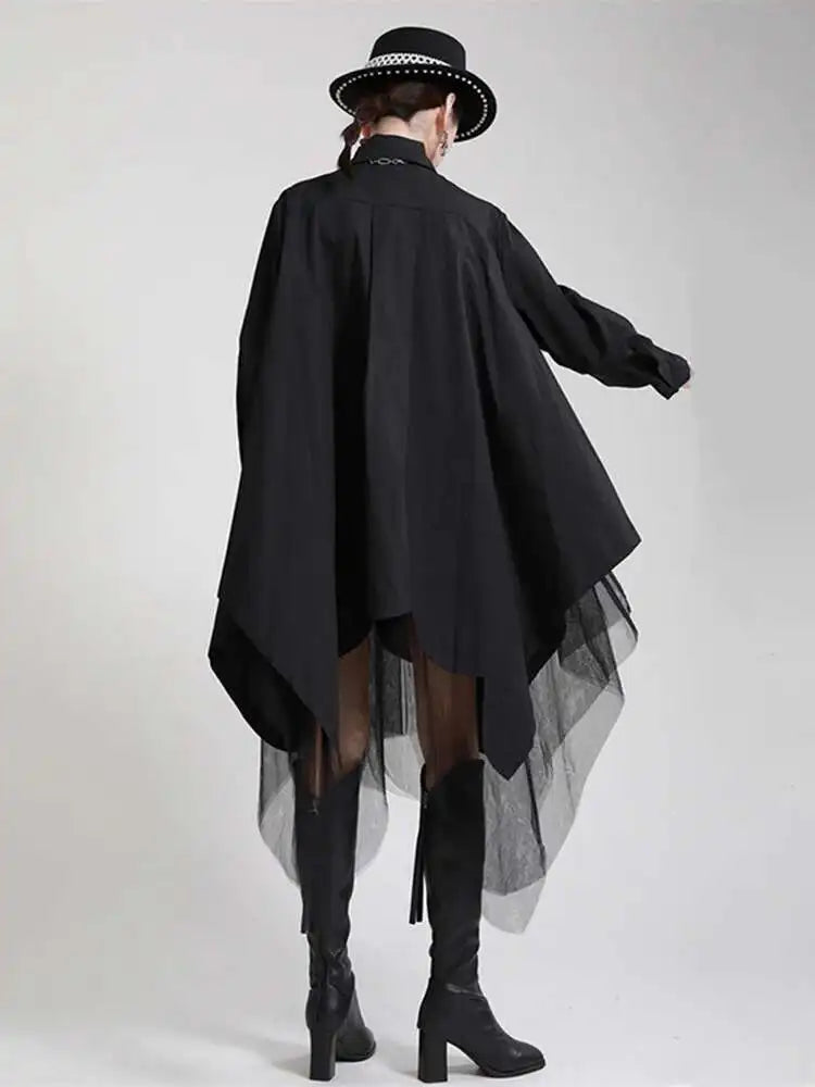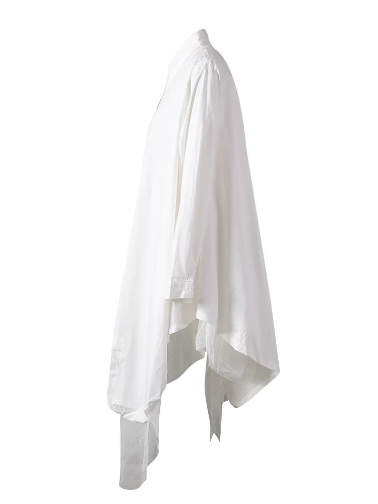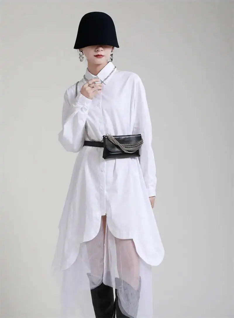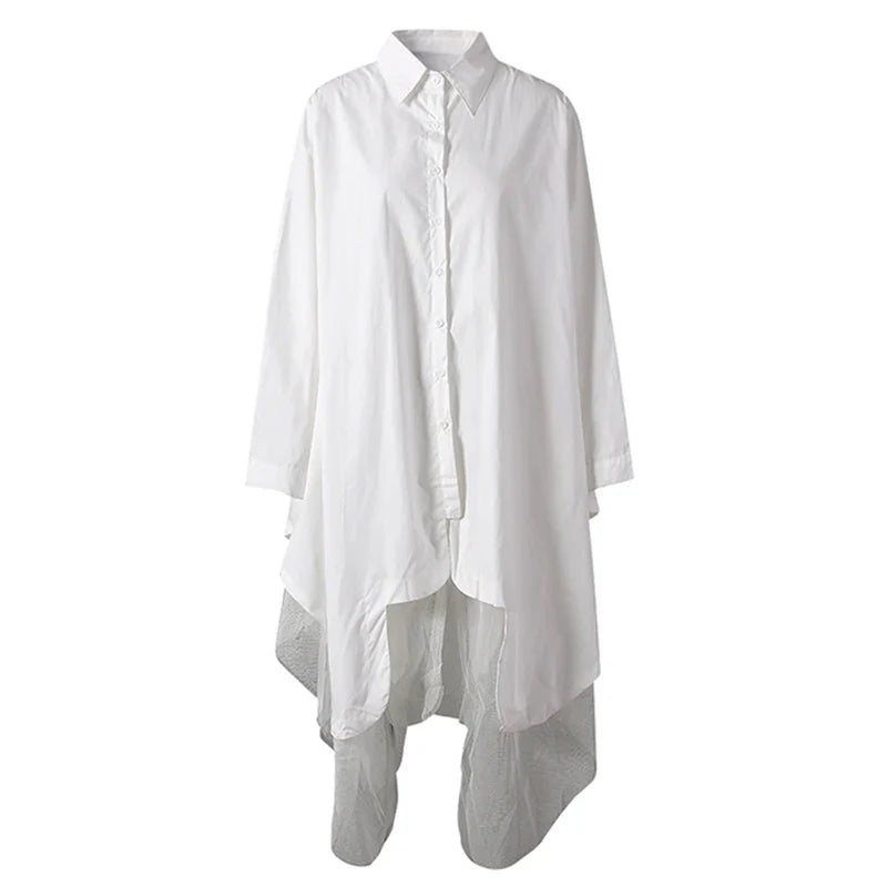 Make a bold statement with the Japanese avant-garde oversized midi shirt dress. Crafted from a soft cotton blend, this full-sleeve dress blends fashion-forward design with wearable comfort.