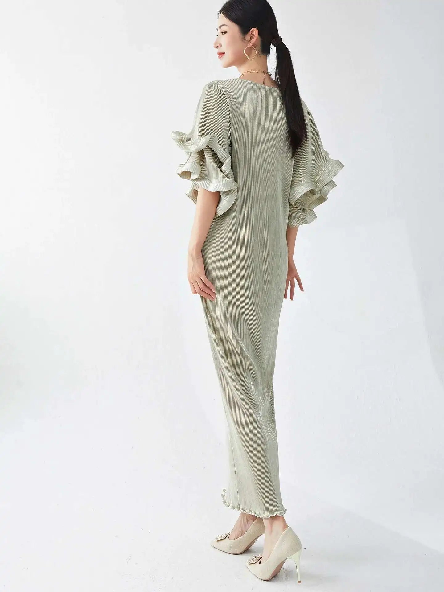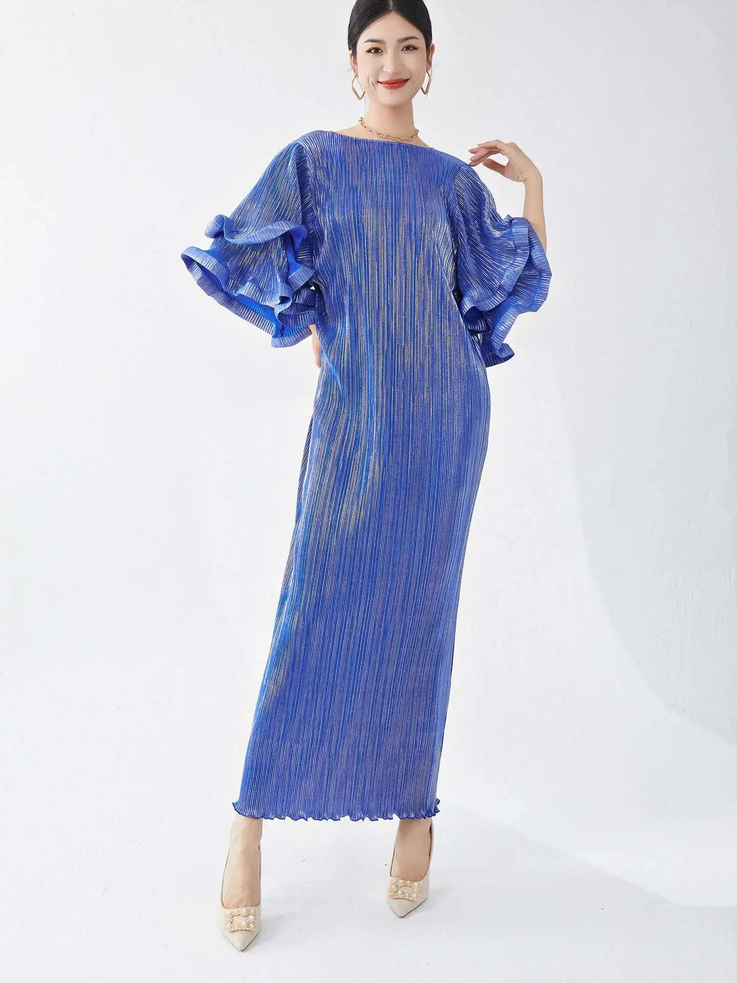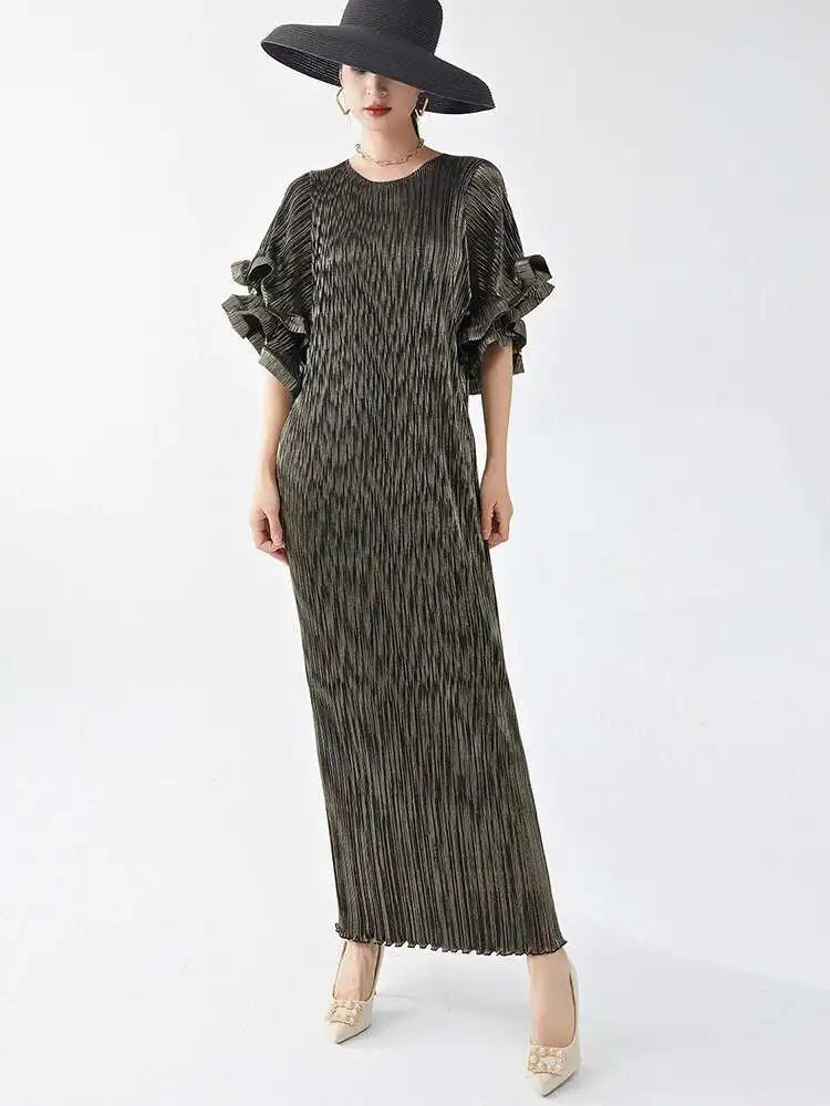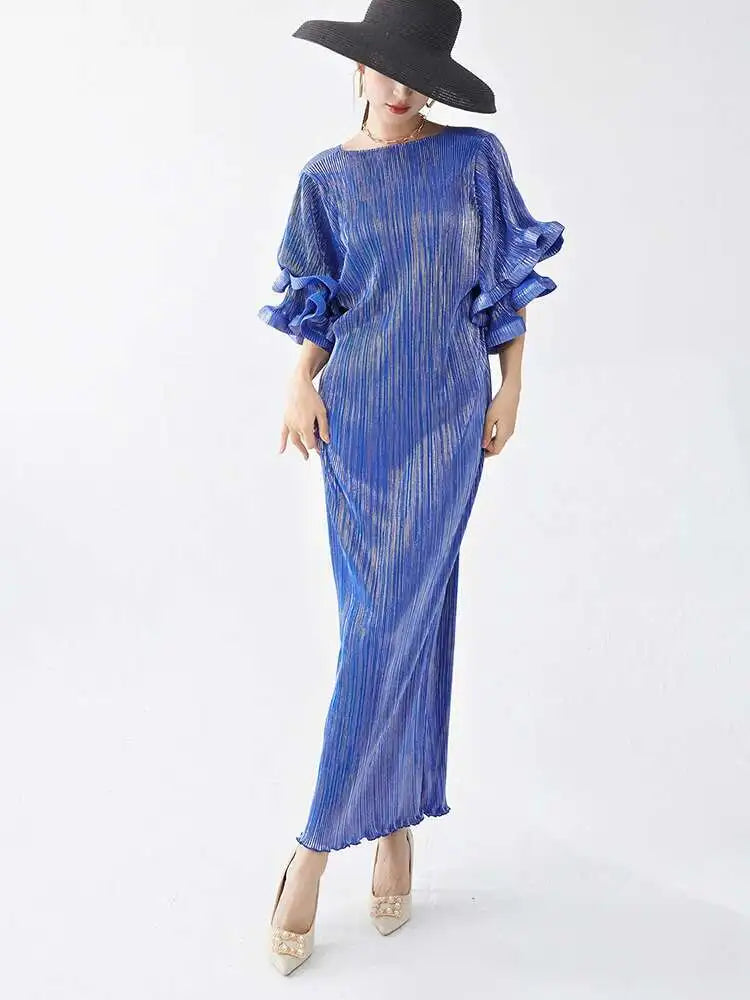 Luxury Pleated Flare Sleeve Dress