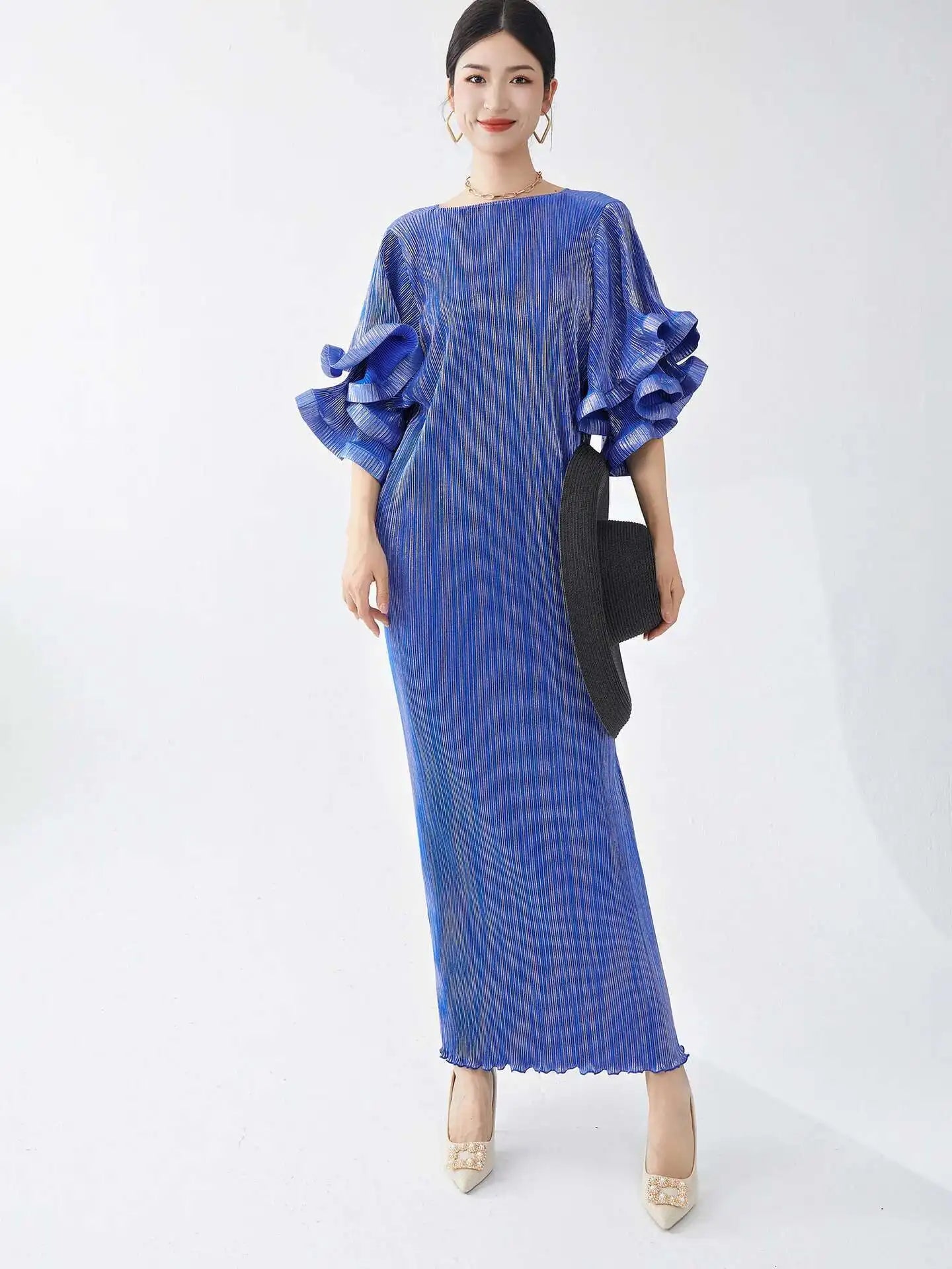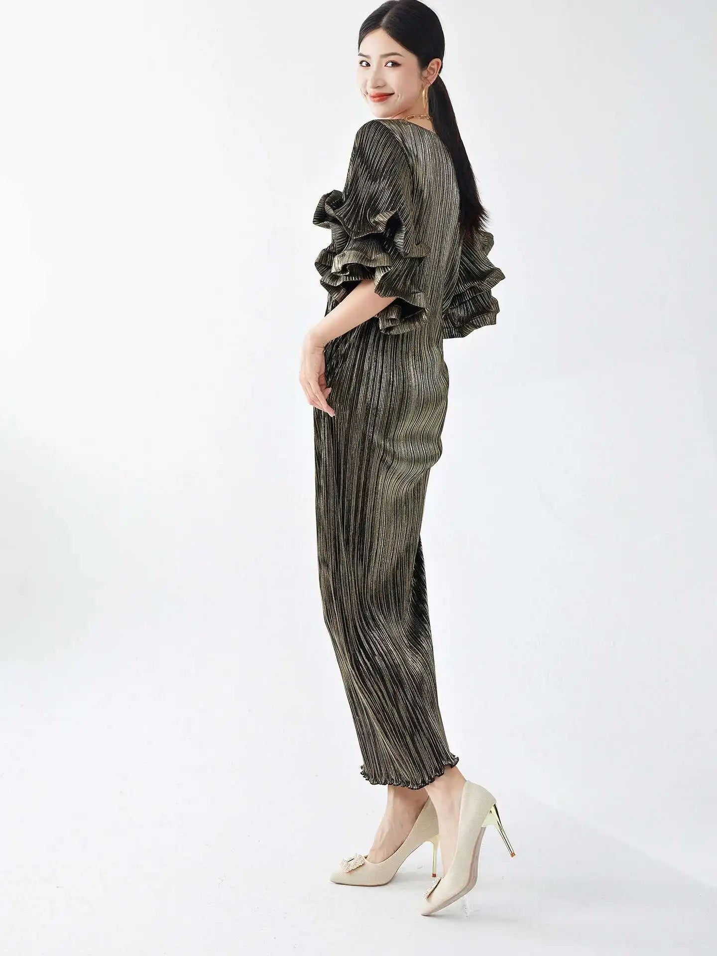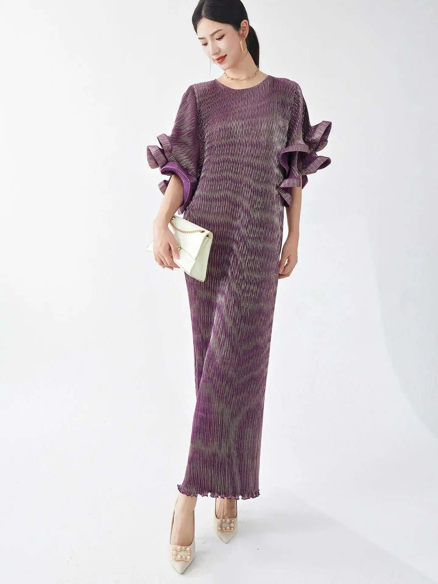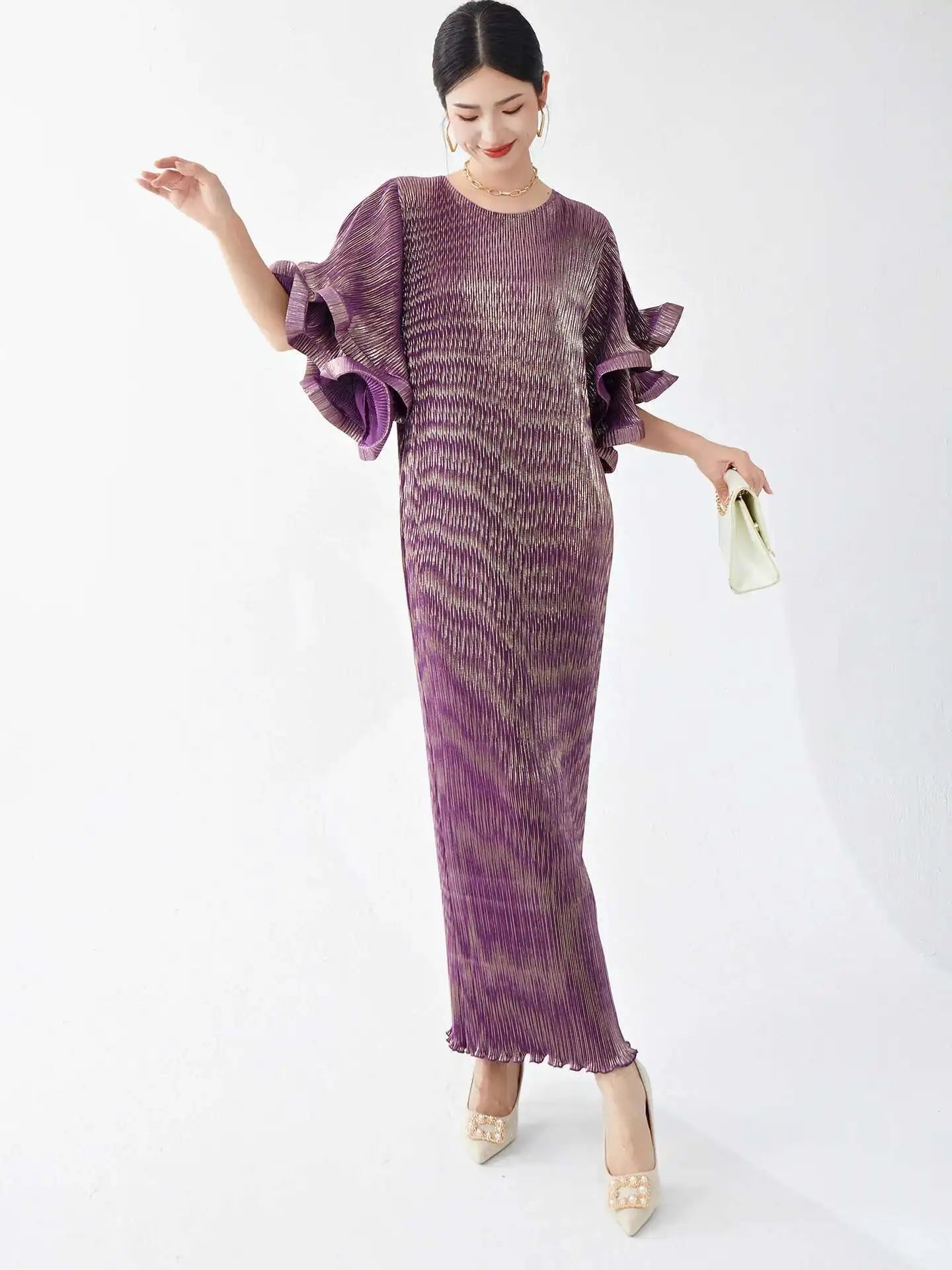 Luxury Pleated Flare Sleeve Dress