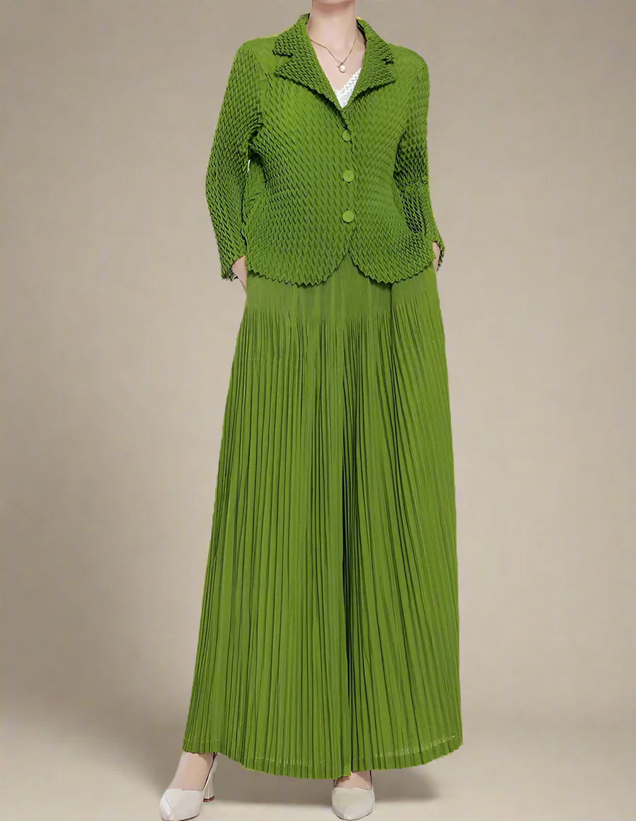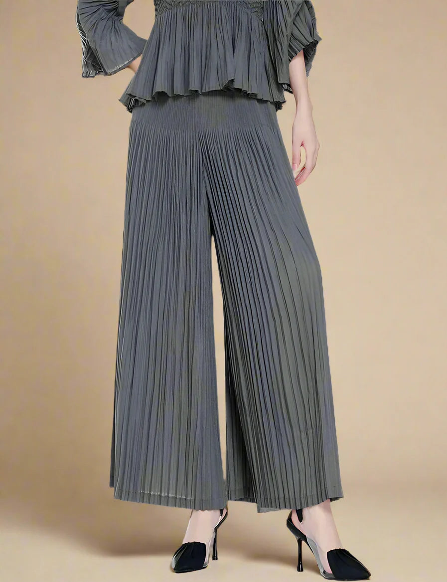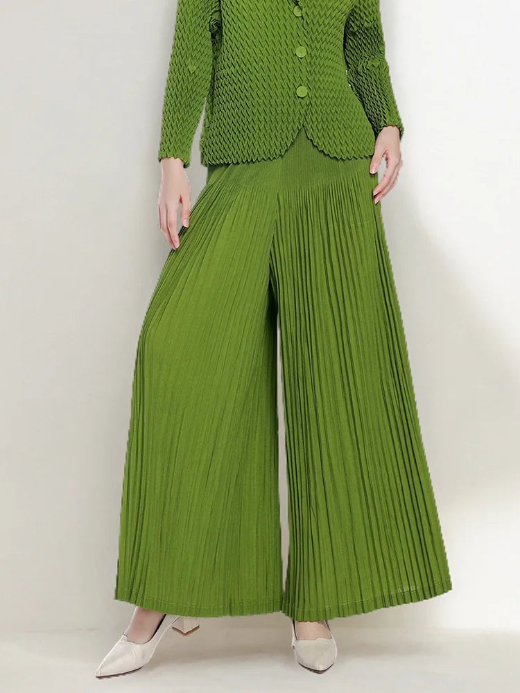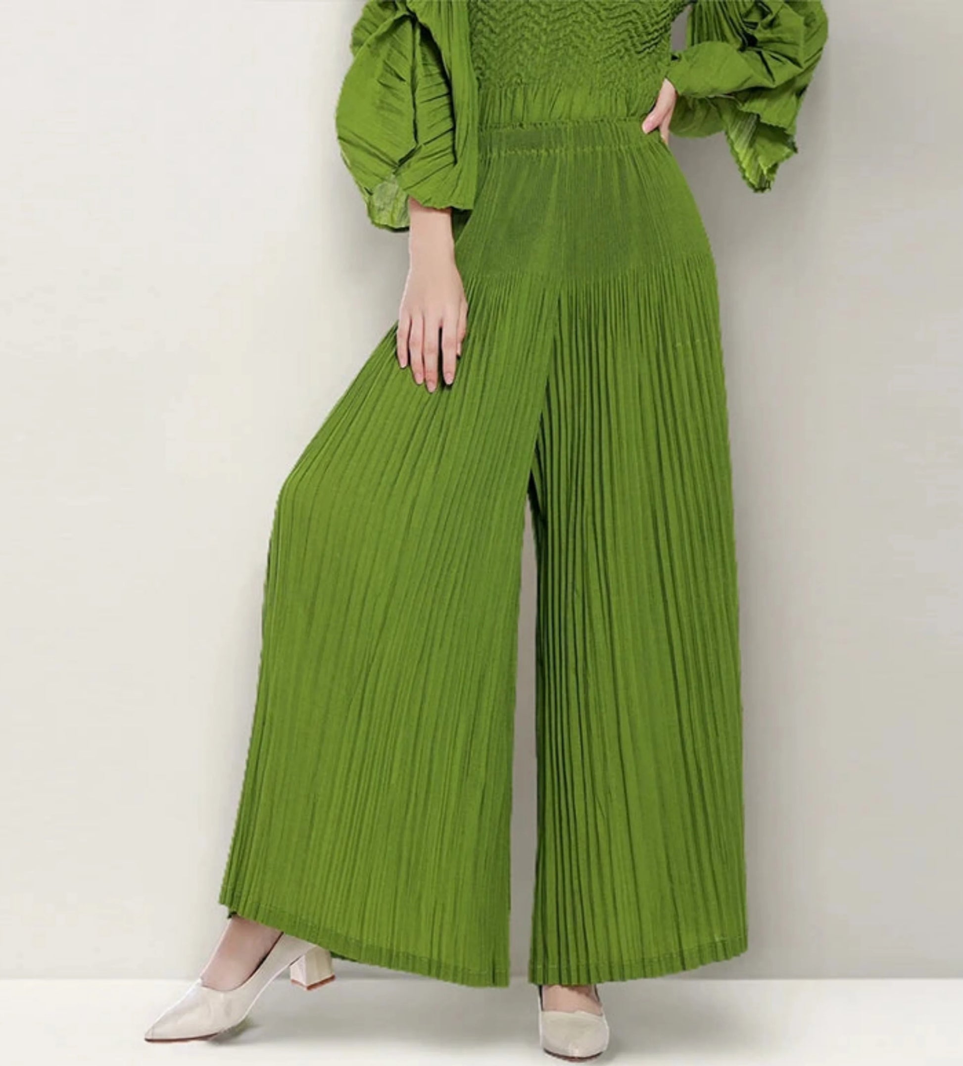 These luxe plissé trousers feature signature Japanese pleats and an elastic waistband for a comfortable, flattering fit.