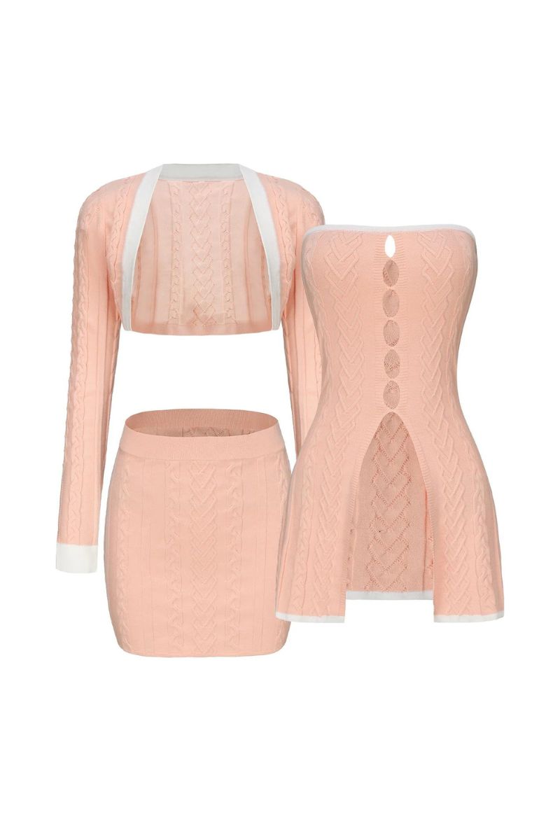 KELLI PEACH KNIT THREE PIECE SET