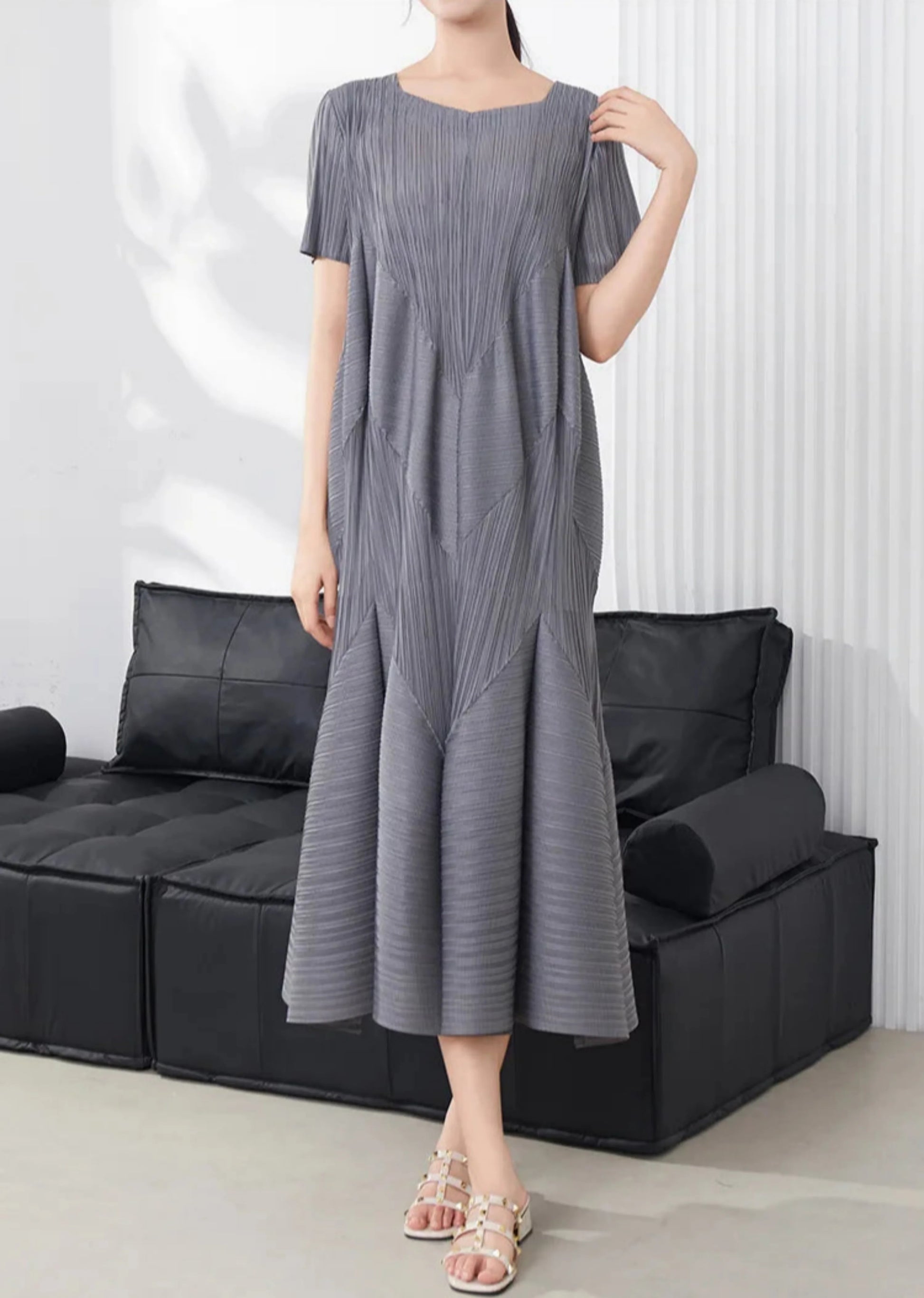 Designed for comfort and grace, this short sleeve midi dress features premium Japanese pleats that create an elegant look.