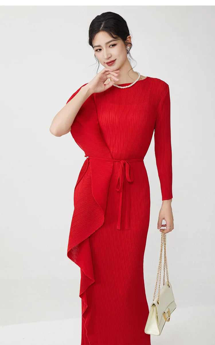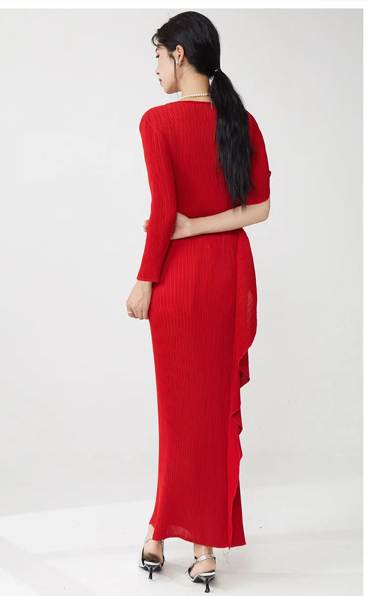 Luxury Plissé Asymmetric Dress