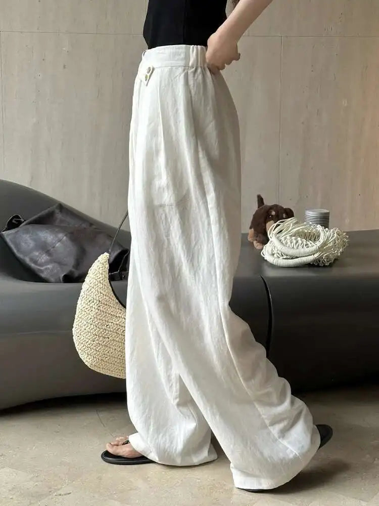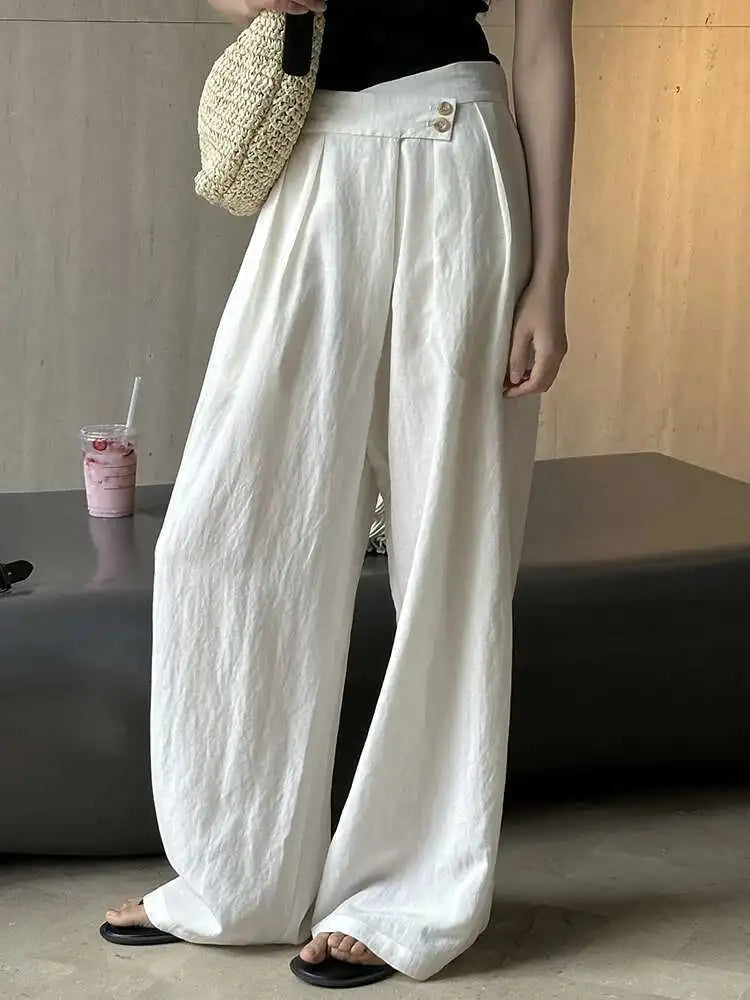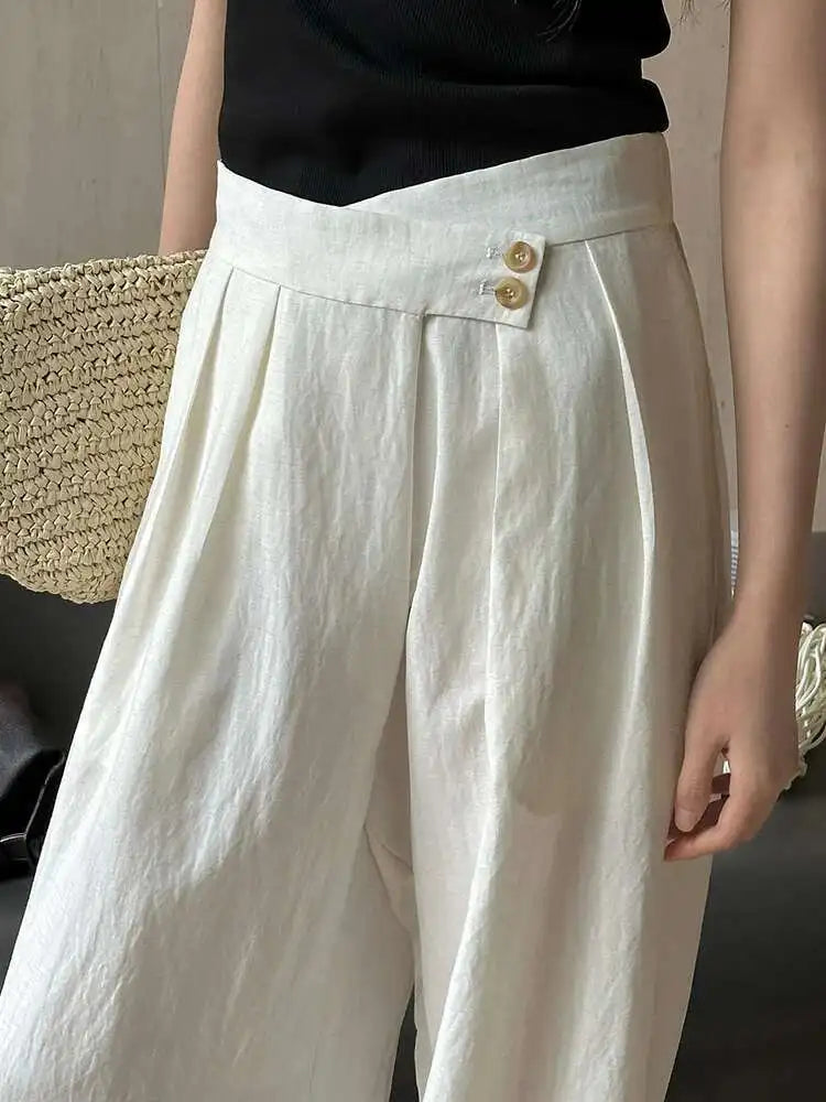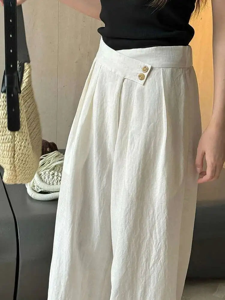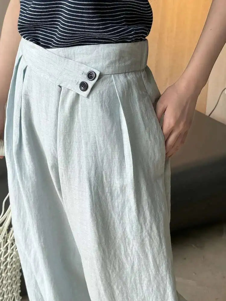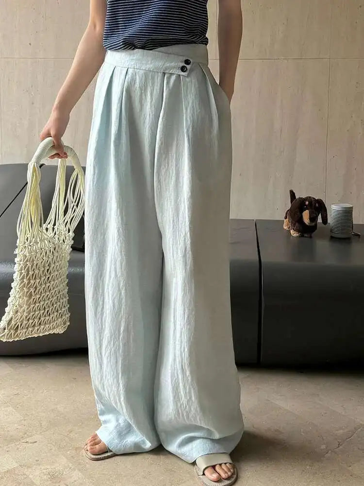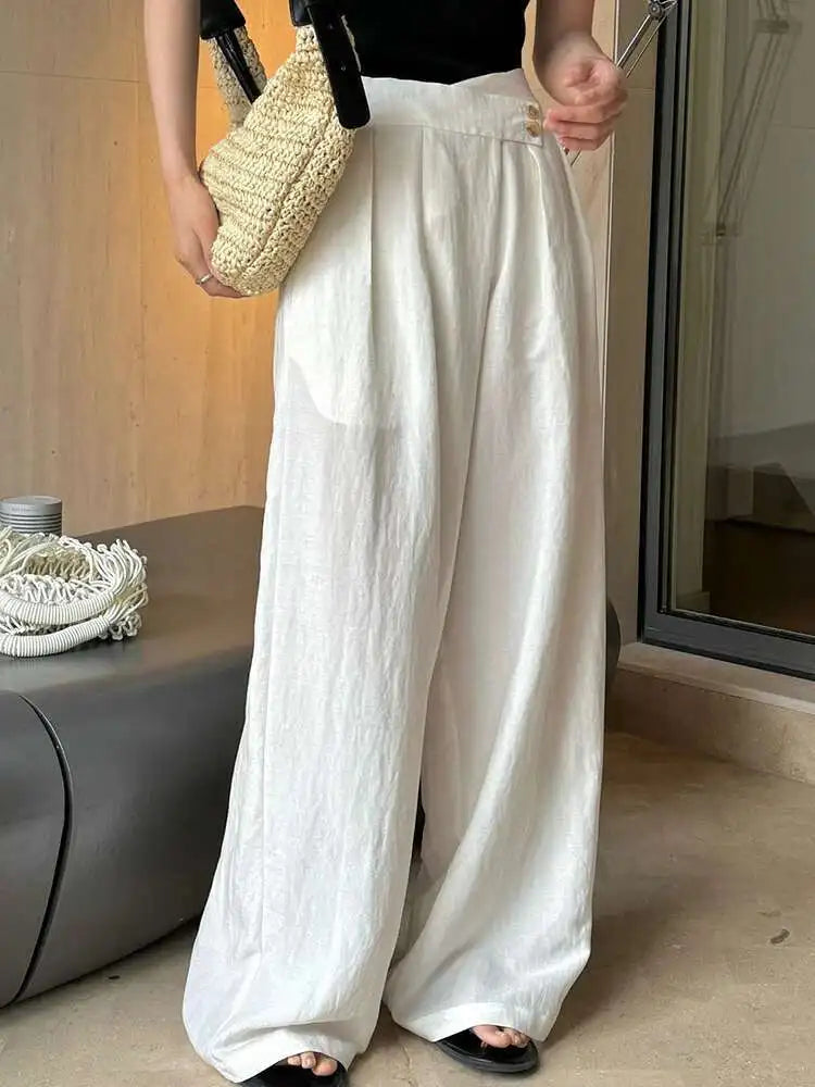 These linen wide leg trousers offer a luxurious take on relaxed dressing. With a high waist, soft elastic waistband, and flowy silhouette, they bring breathable comfort and modern elegance to your everyday look.