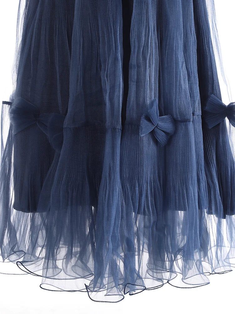 Elegant and easy to wear, this pleated tulle midi skirt features a pull-on design with an elastic waistband for comfort and stretch.