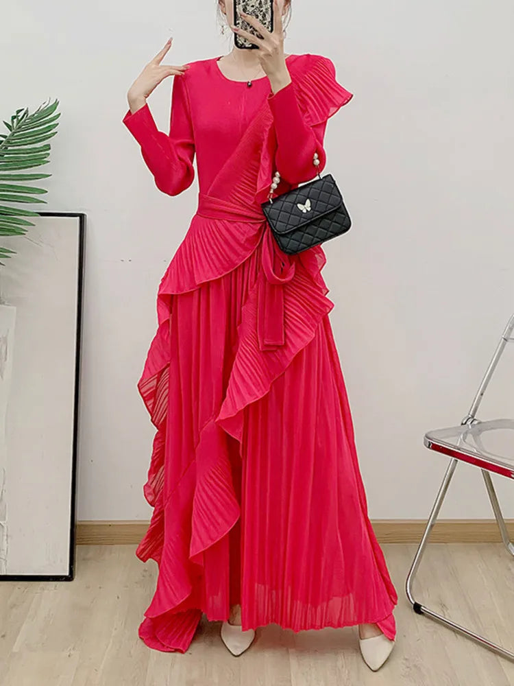 Luxe Romantic Truly Pleated Ruffled Maxi Dress