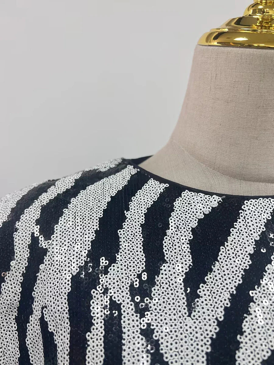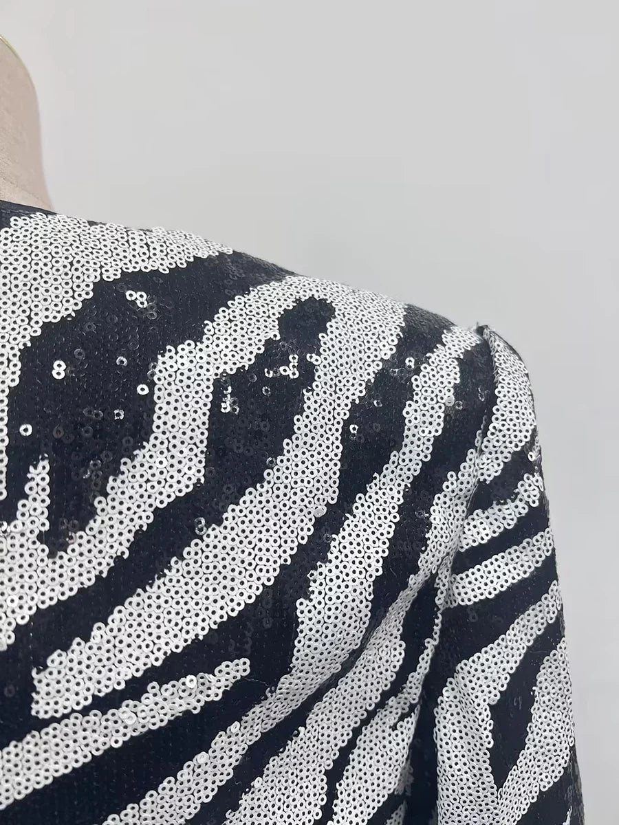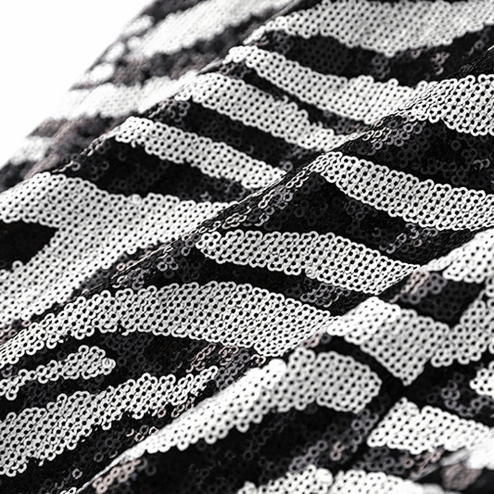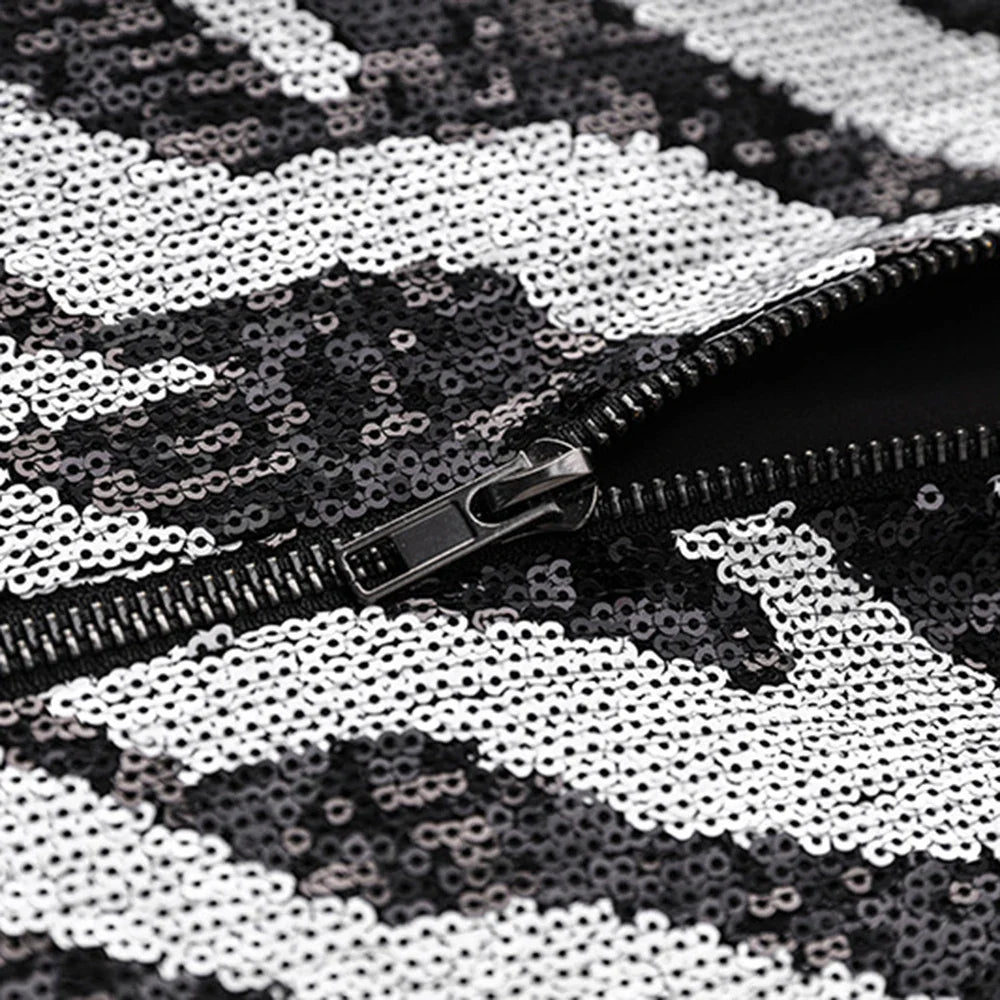 Ready to unleash your inner party animal? This Luxe Zebra Sequin Mini Dress is a total showstopper. Imagine making an entrance in this dazzling zebra-print mini, shimmering from head to toe.