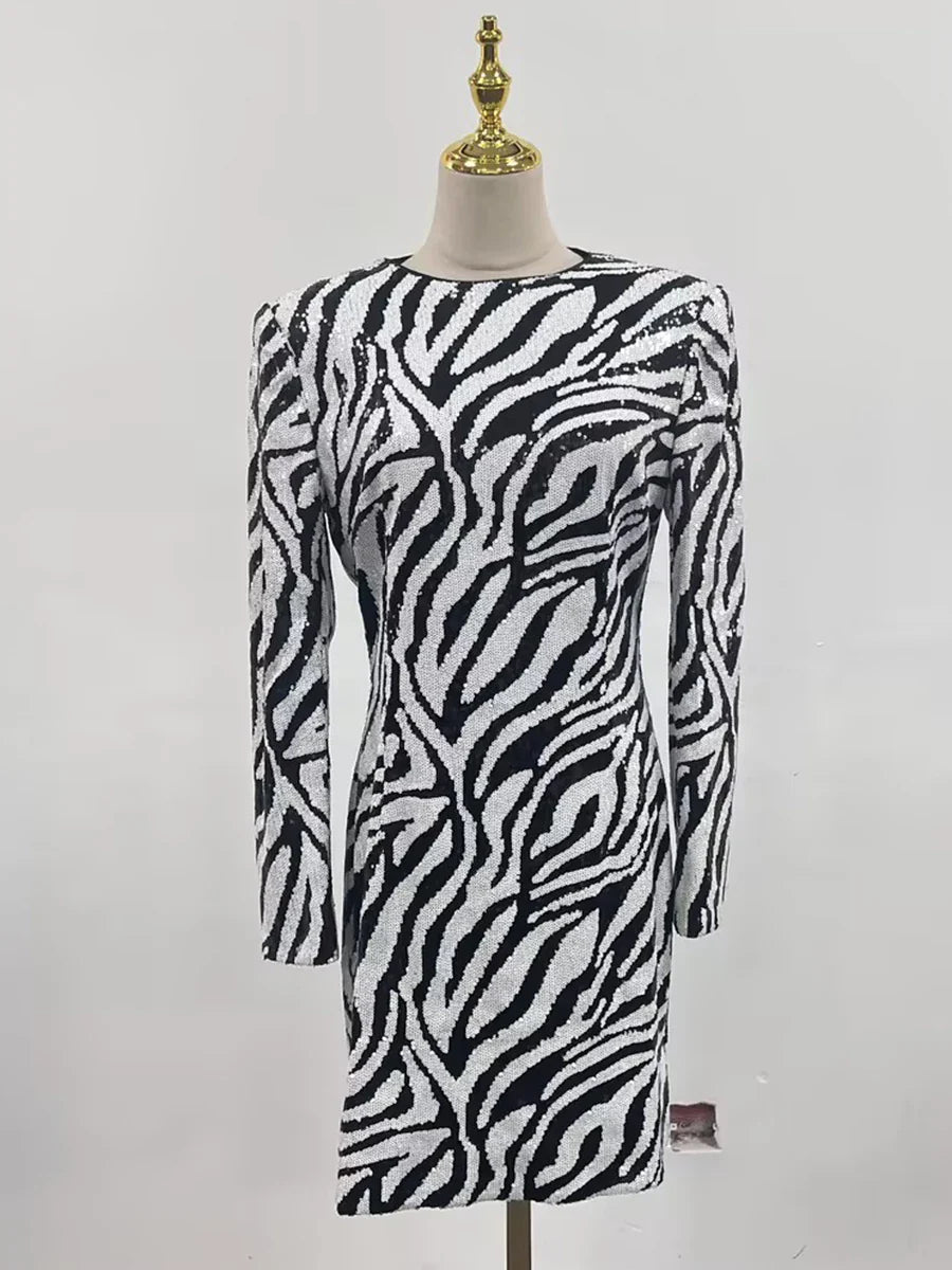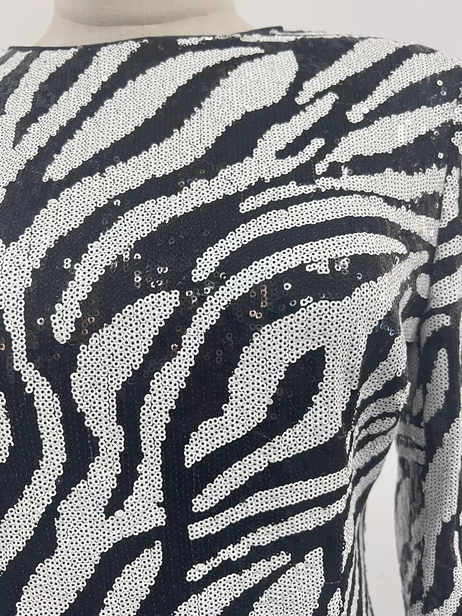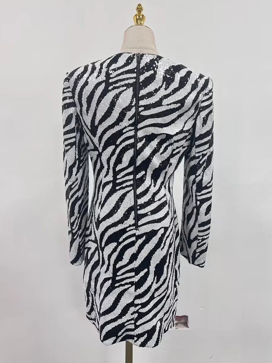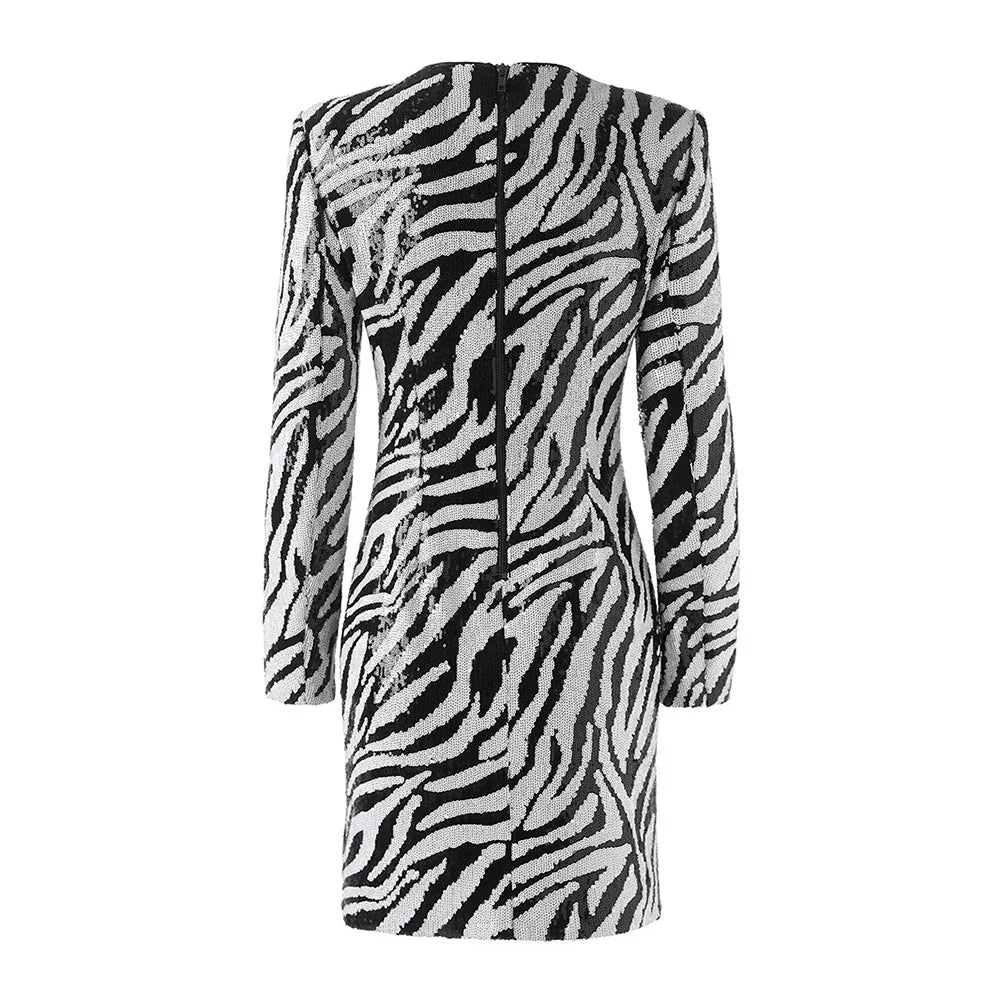 Luxe Zebra Sequin Long Sleeve Mini Dress