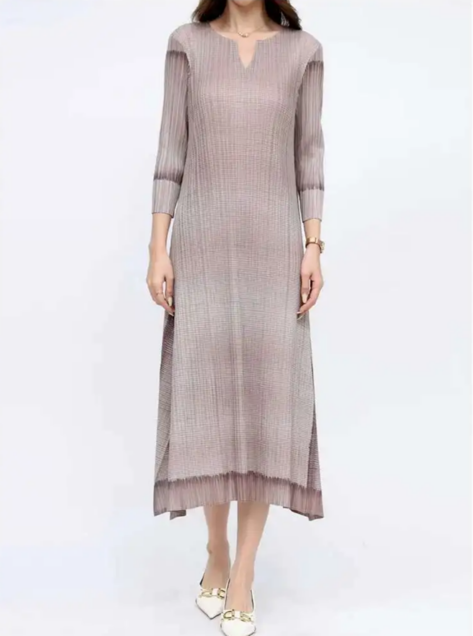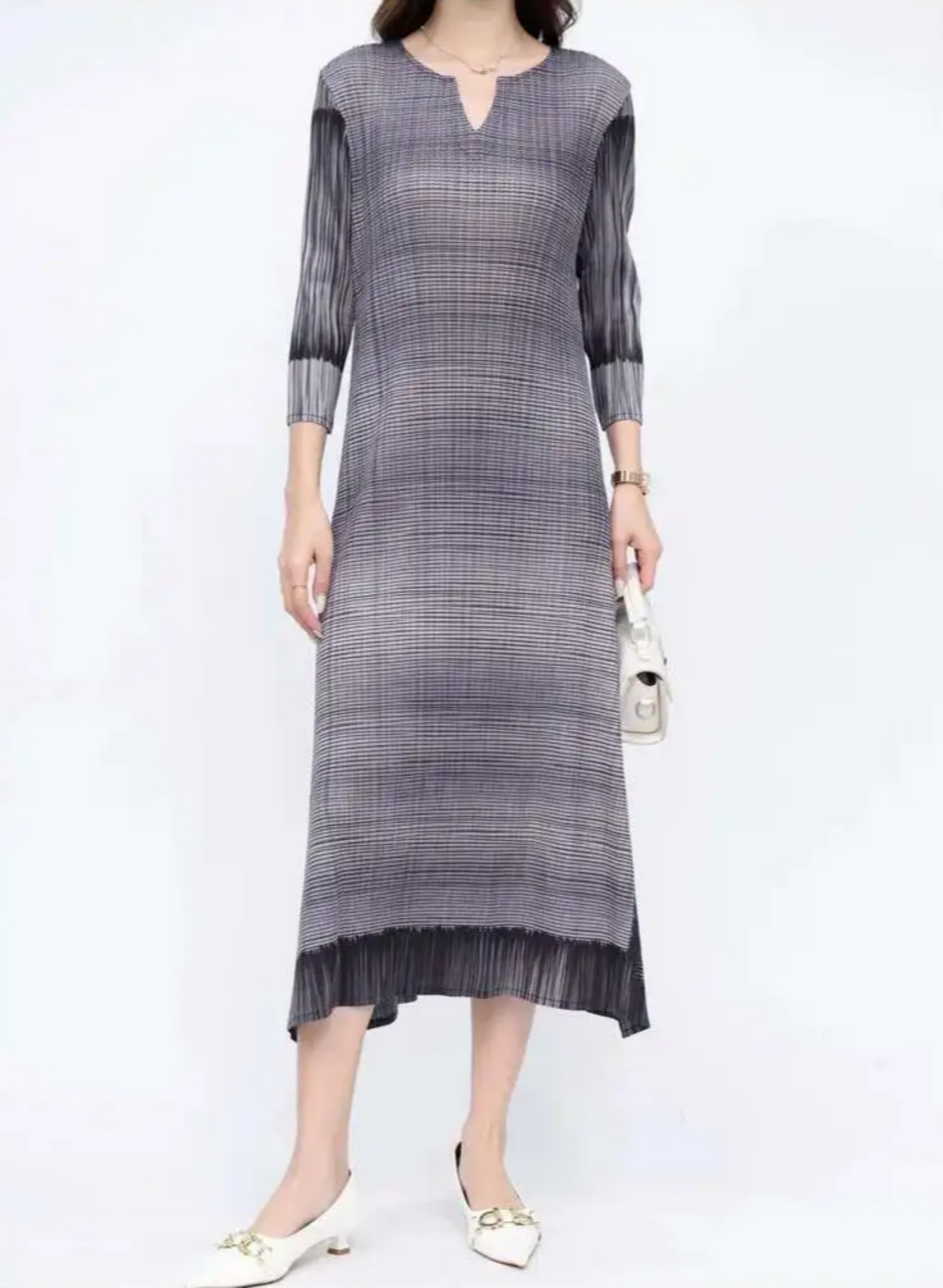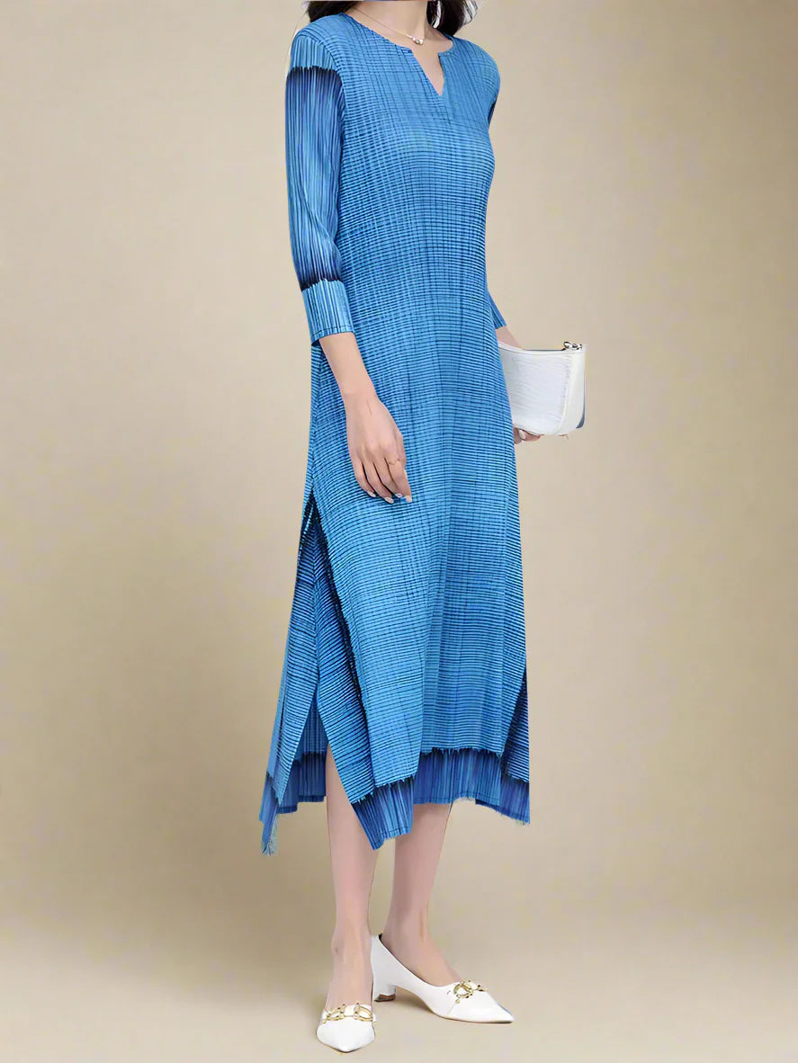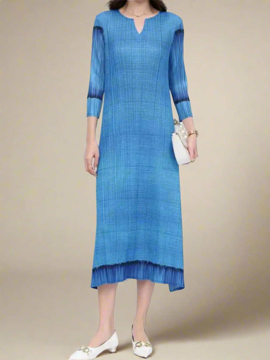 A luxurious pleated midi designed for comfort and style. Stretchy, wrinkle-free fabric moves with ease, while 3/4 sleeves and a flattering silhouette keep you stylish and put-together.