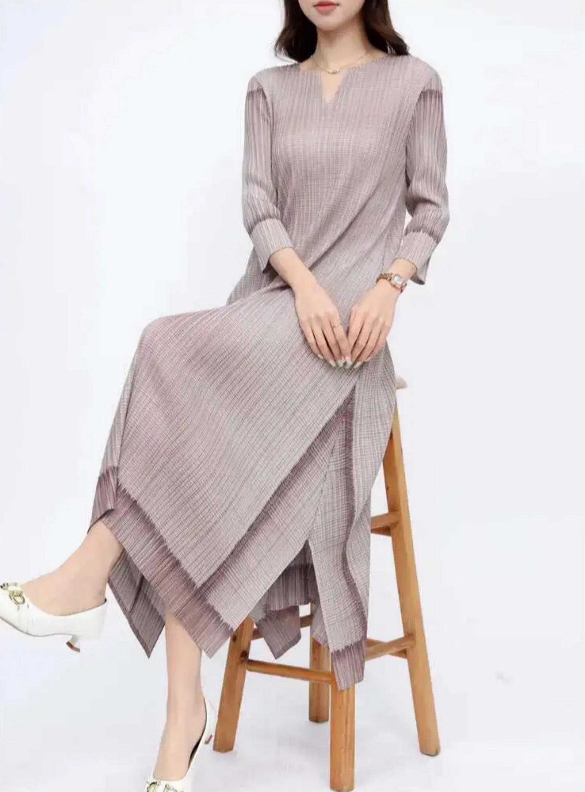 Luxury Casual Pleated Midi Dress