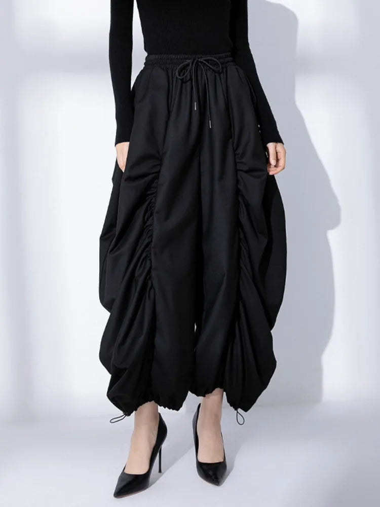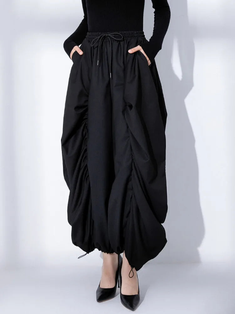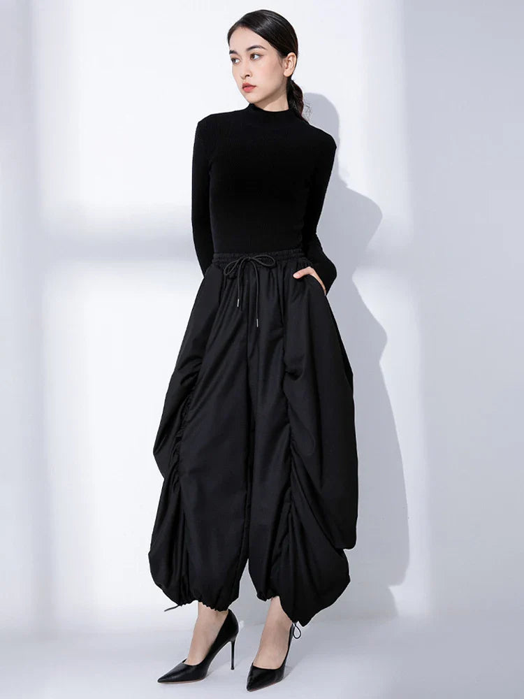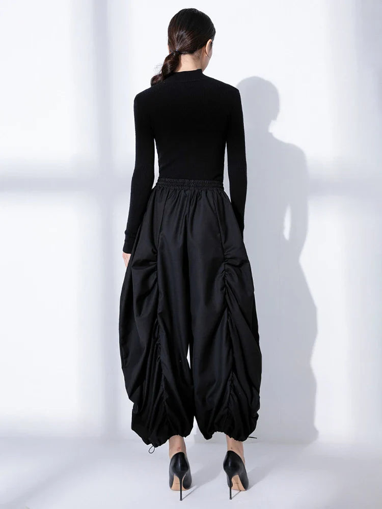 Embrace an ultra-oversized fit with these Japanese-inspired harem balloon pants. The ruching detail creates a unique, relaxed silhouette that’s both comfortable and chic.
