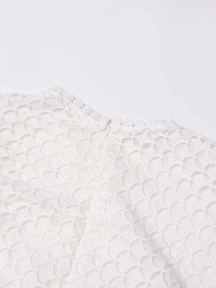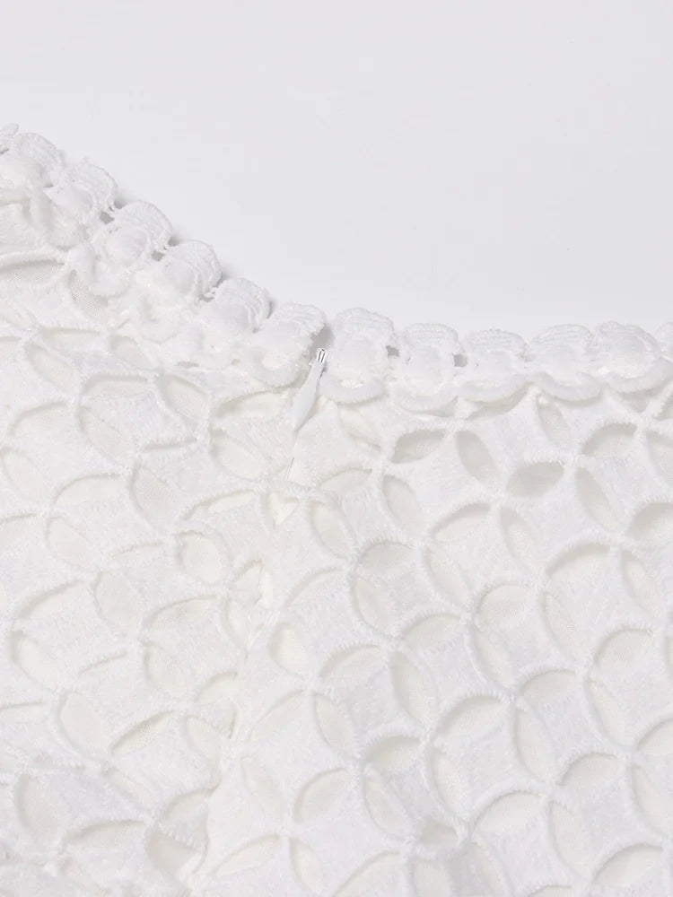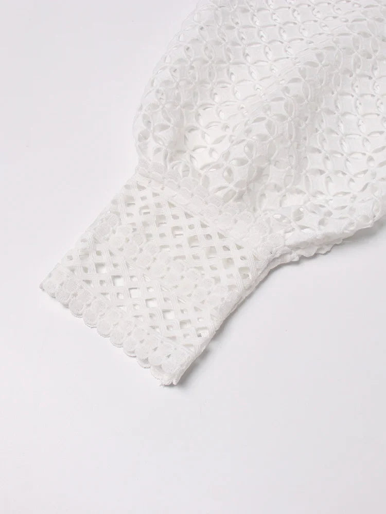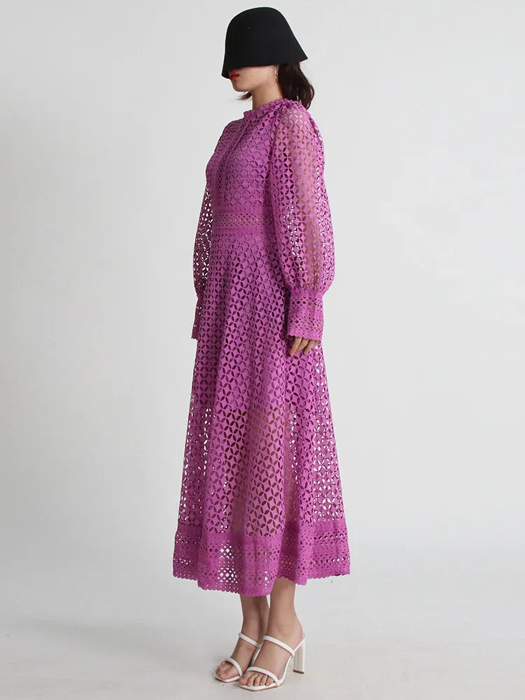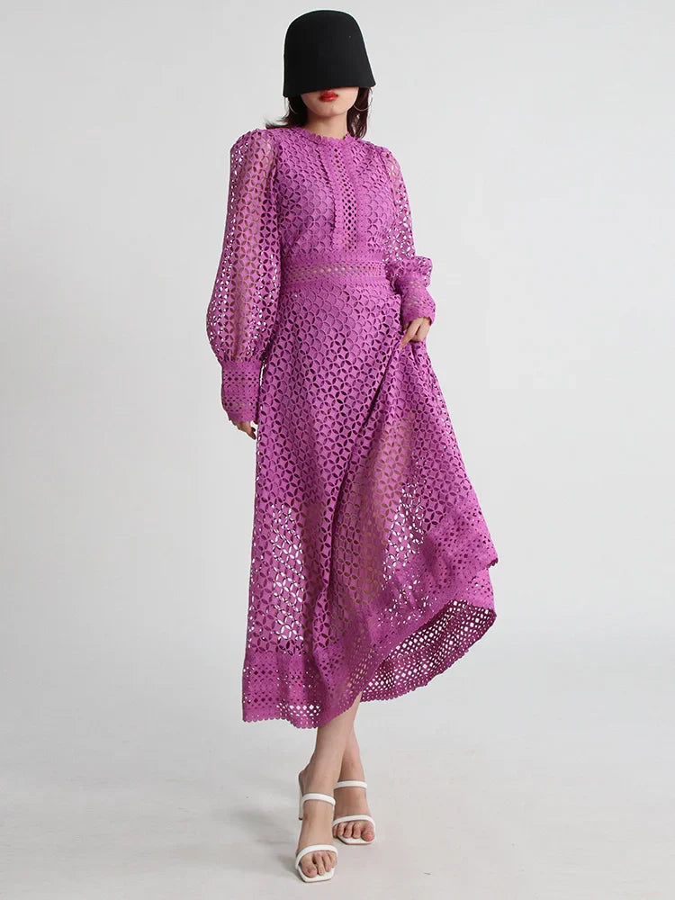 This exquisite lace midi dress blends elegance with modern sophistication. Featuring long balloon sleeves and intricate cut-out lace detailing, it’s a timeless piece for any stylish wardrobe. Perfect for special occasions or a refined everyday look.