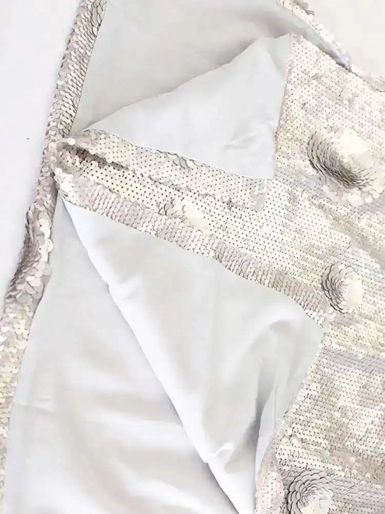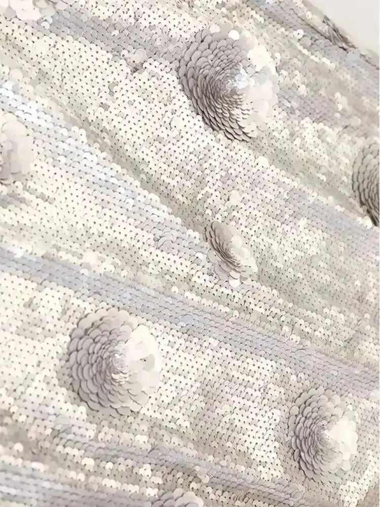 This silver sequin midi skirt features a unique all-over pattern made from premium embellished sequins.