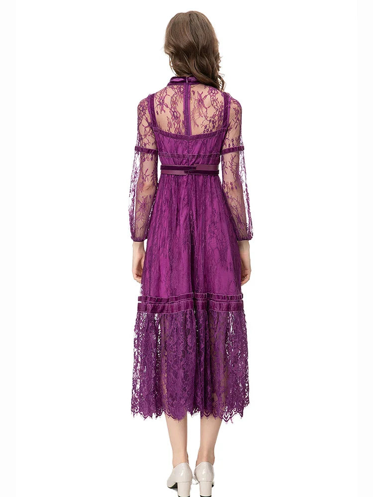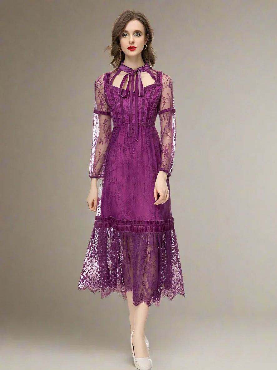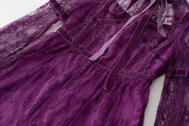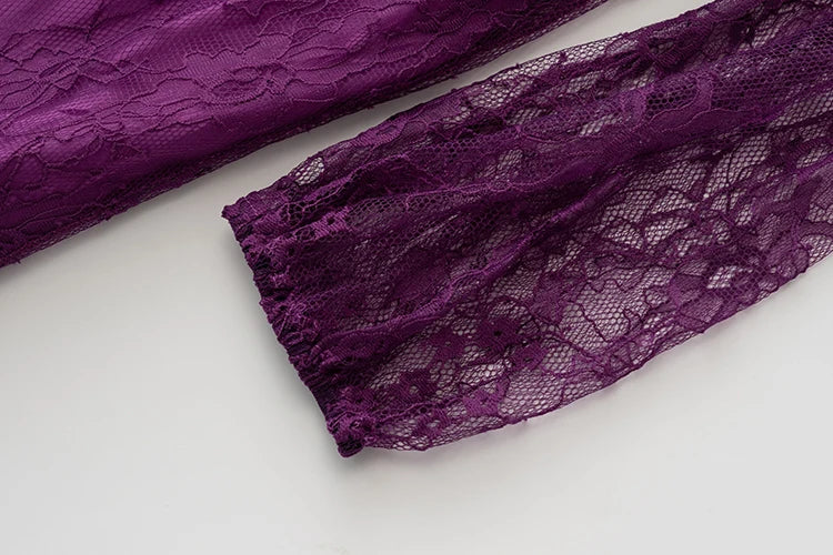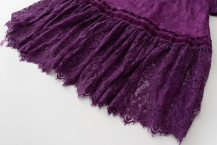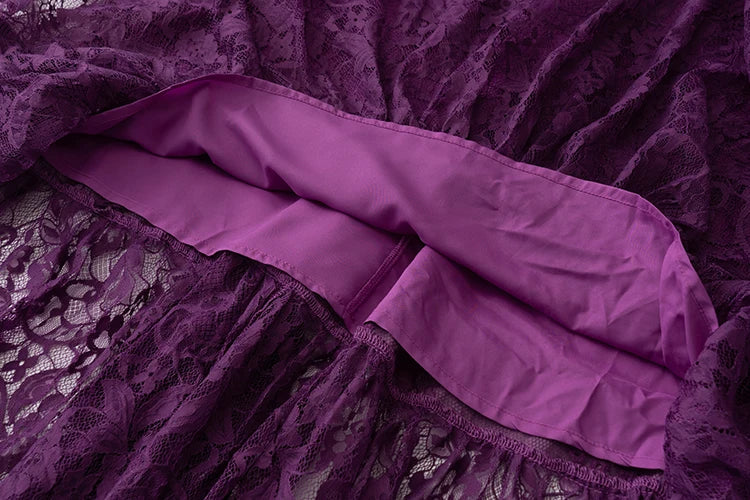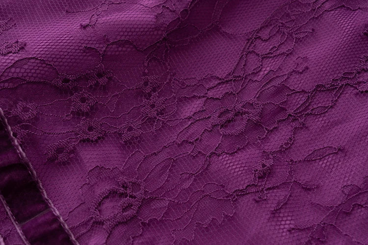 This elegant deep purple lace dress is designed for sophisticated cocktail hours and special occasions. With its fit & flare silhouette and high-end details, it promises a flattering, graceful look that stands out at any event.