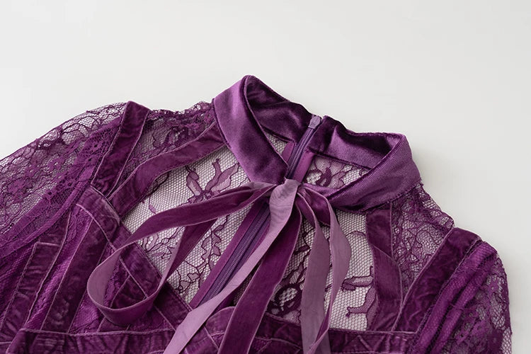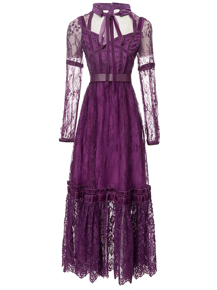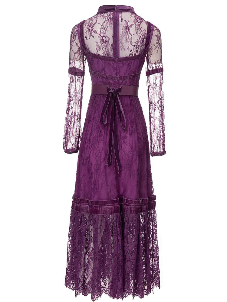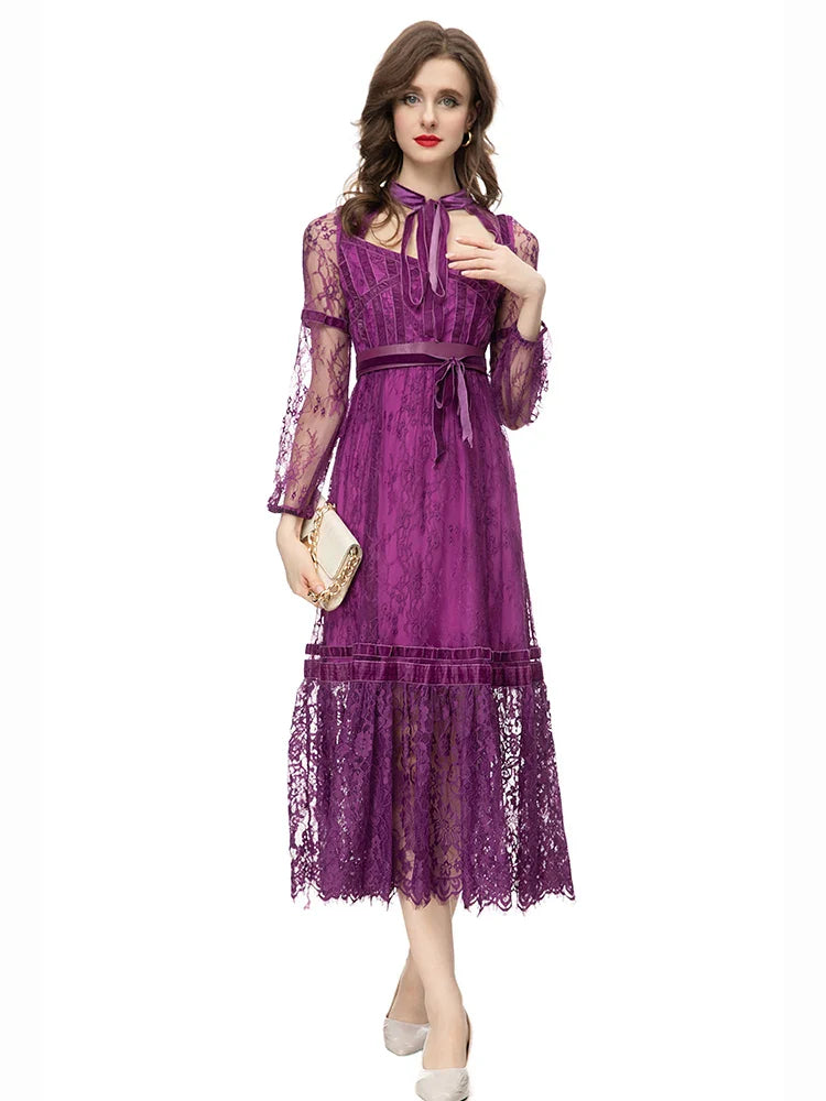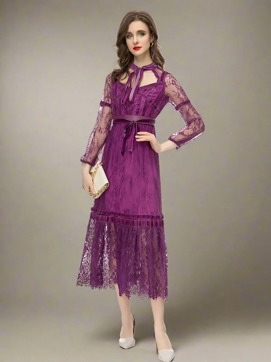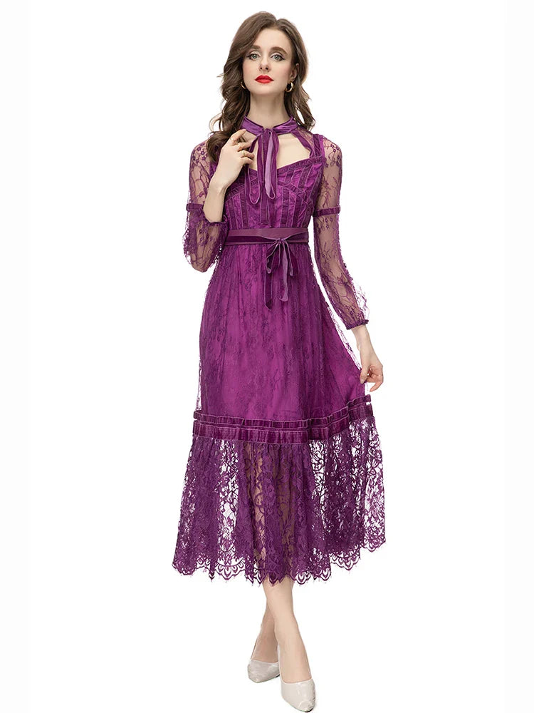 This elegant deep purple lace dress is designed for sophisticated cocktail hours and special occasions. With its fit & flare silhouette and high-end details, it promises a flattering, graceful look that stands out at any event.