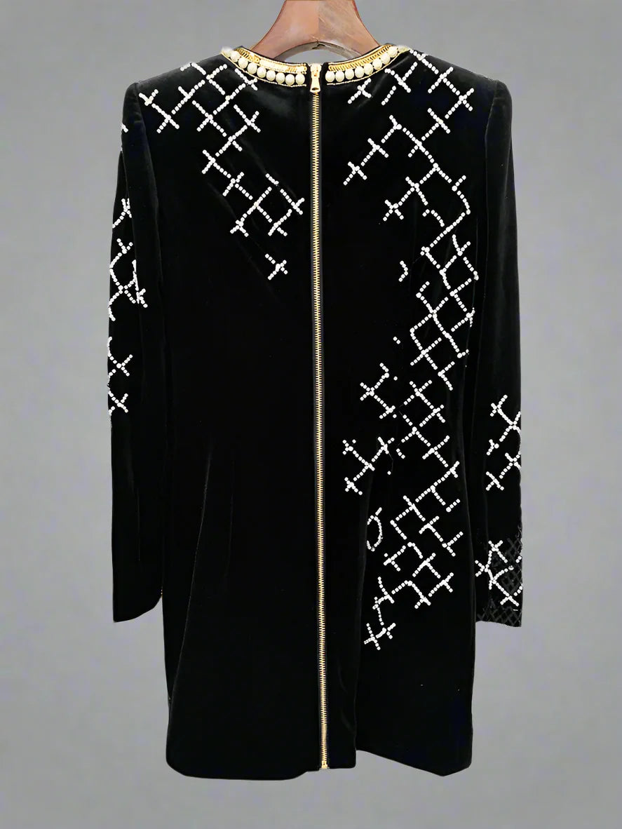 Mini Velvet Dress: Pearl & Bead Embellishments