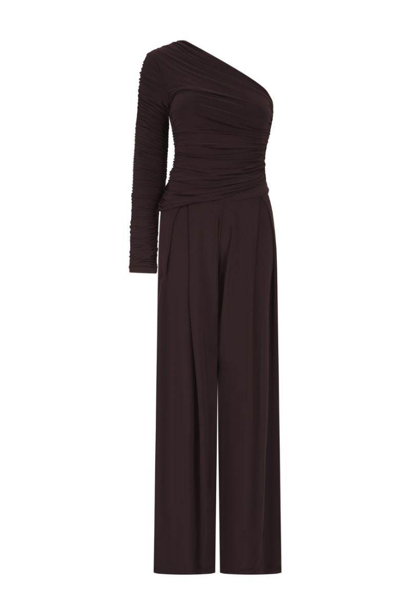 The Nepeta Set, One shoulder ruched asymmetric top provides sultry glamour paired with pleat detail pants for the perfect merging of sophistication and elegance.