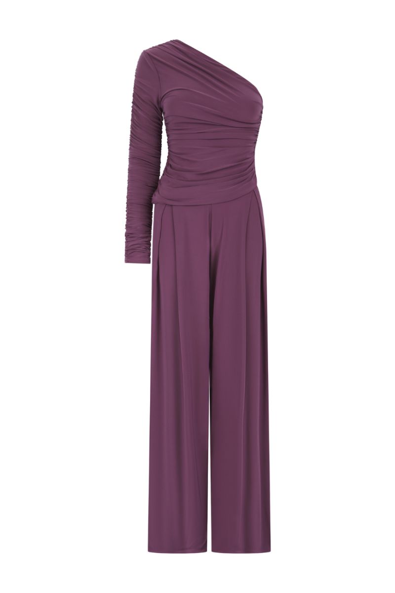 The Nepeta Set, One shoulder ruched asymmetric top provides sultry glamour paired with pleat detail pants for the perfect merging of sophistication and elegance.