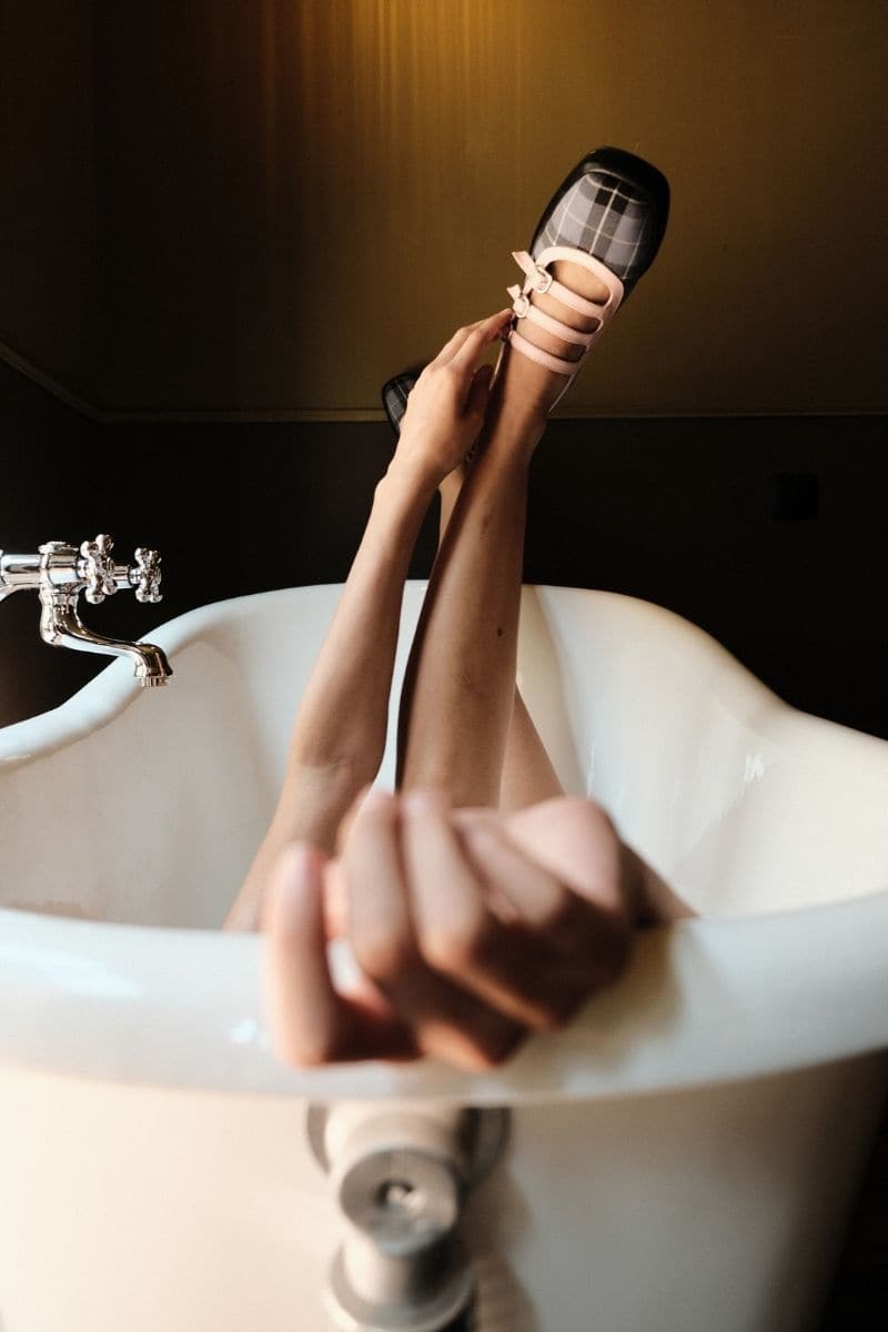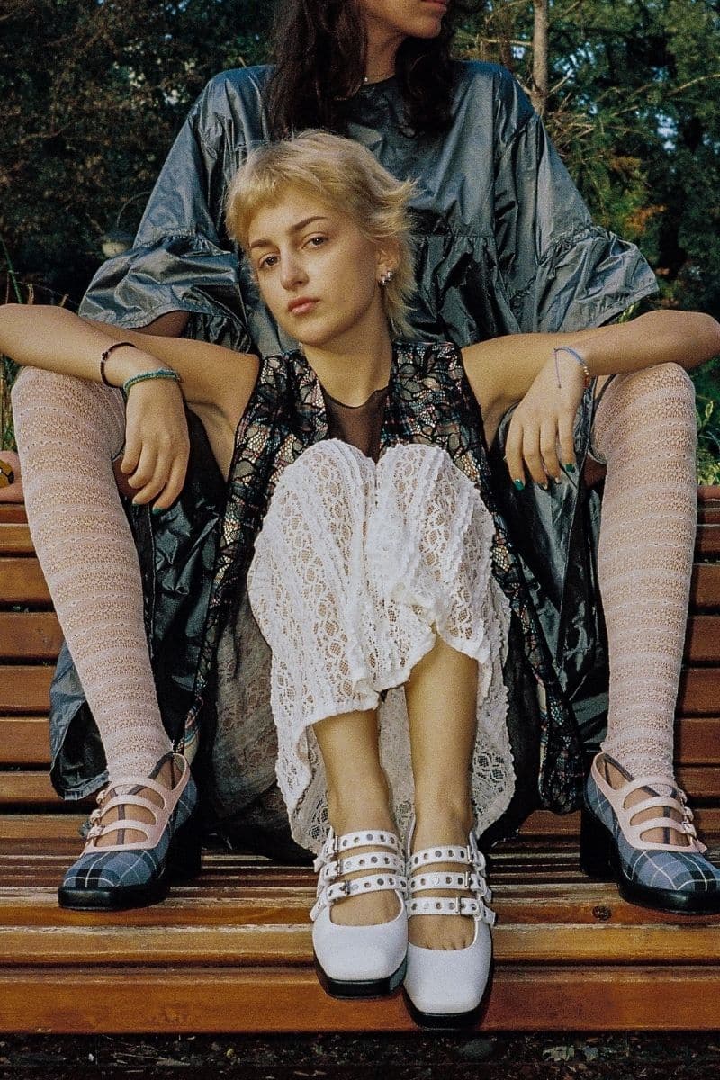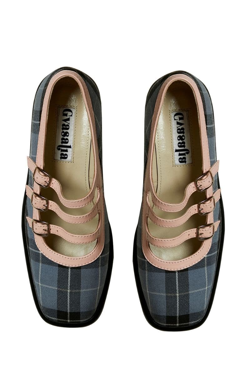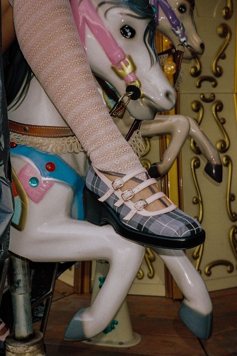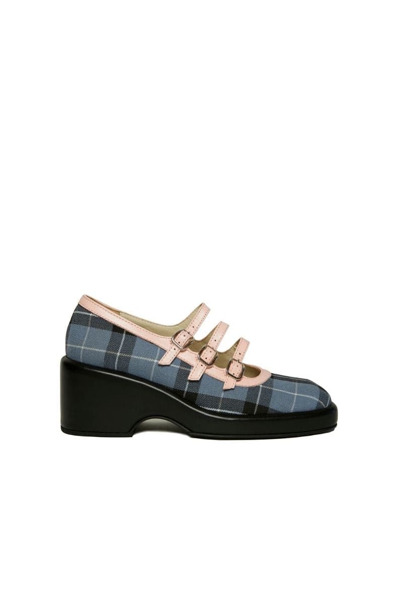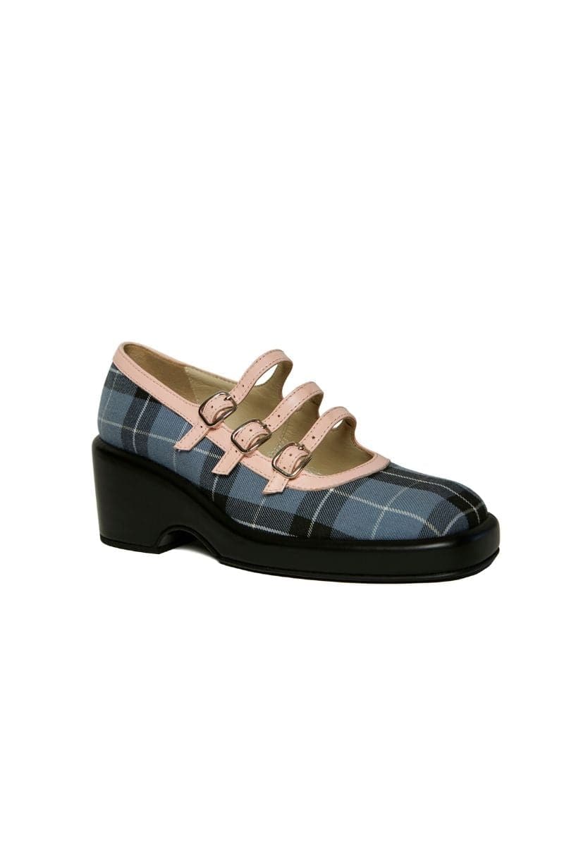 Three thin beige ties, atop a sturdy platform sole with a heel height of 7.5 centimeters, lending an air of sophistication.