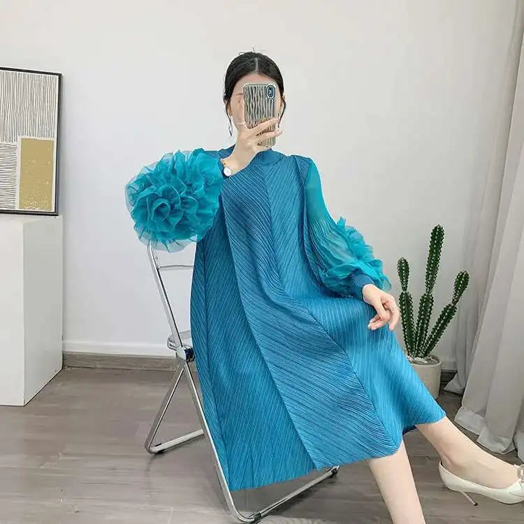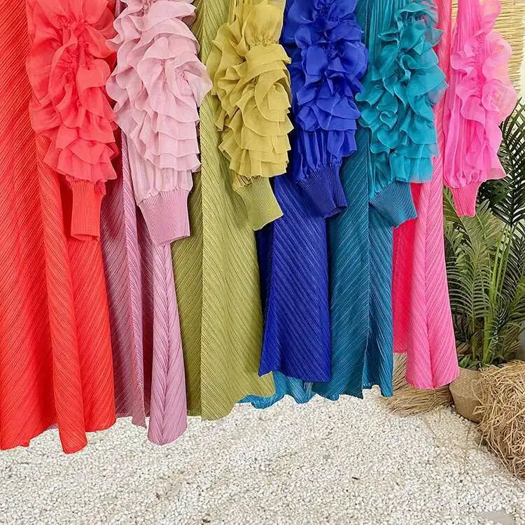 Luxury Pleated Floral Ruffle Dress