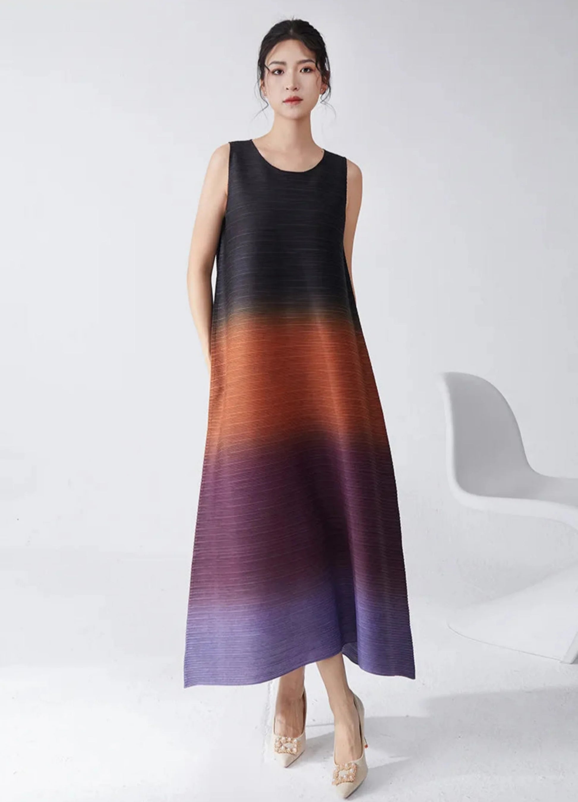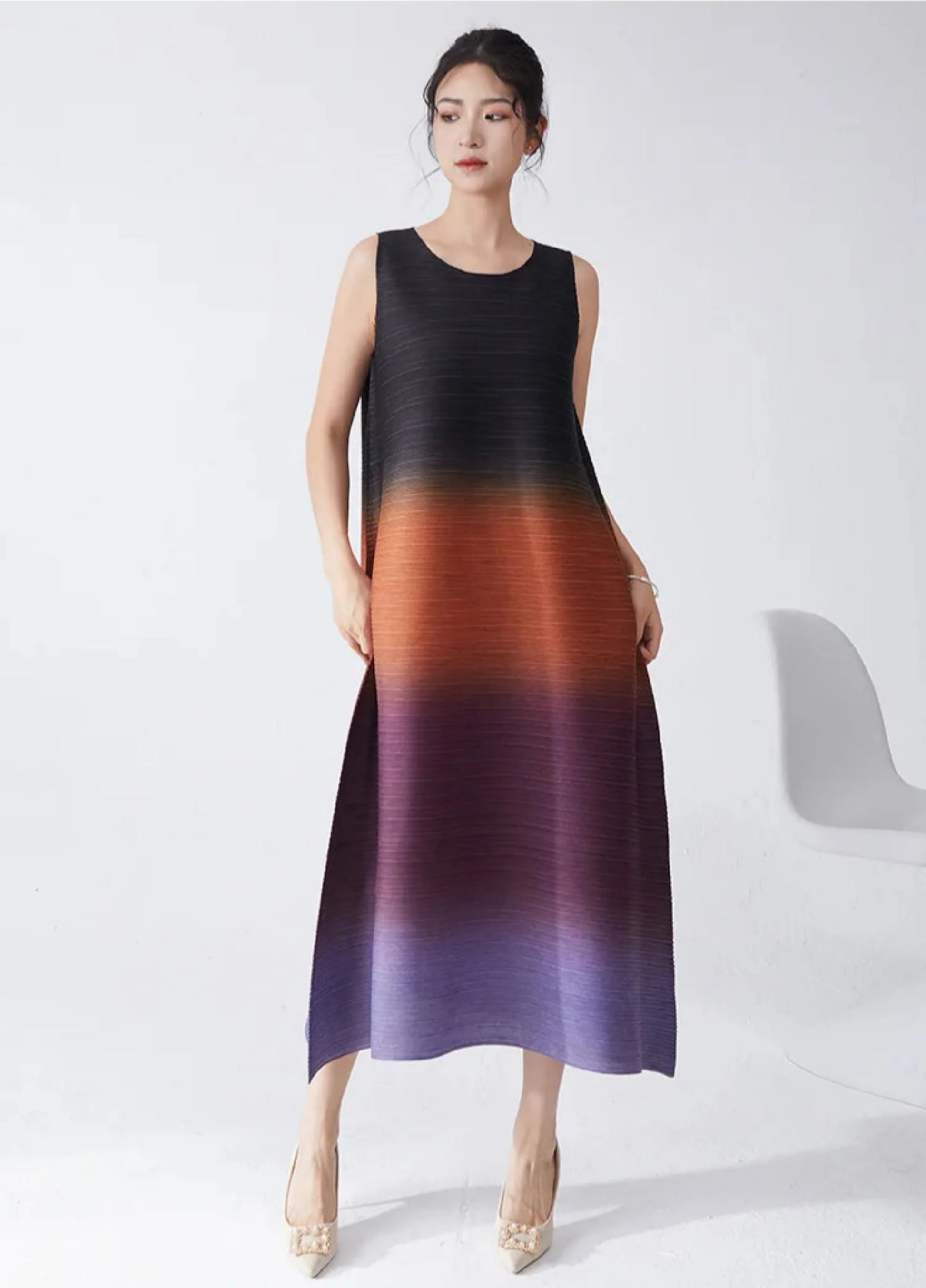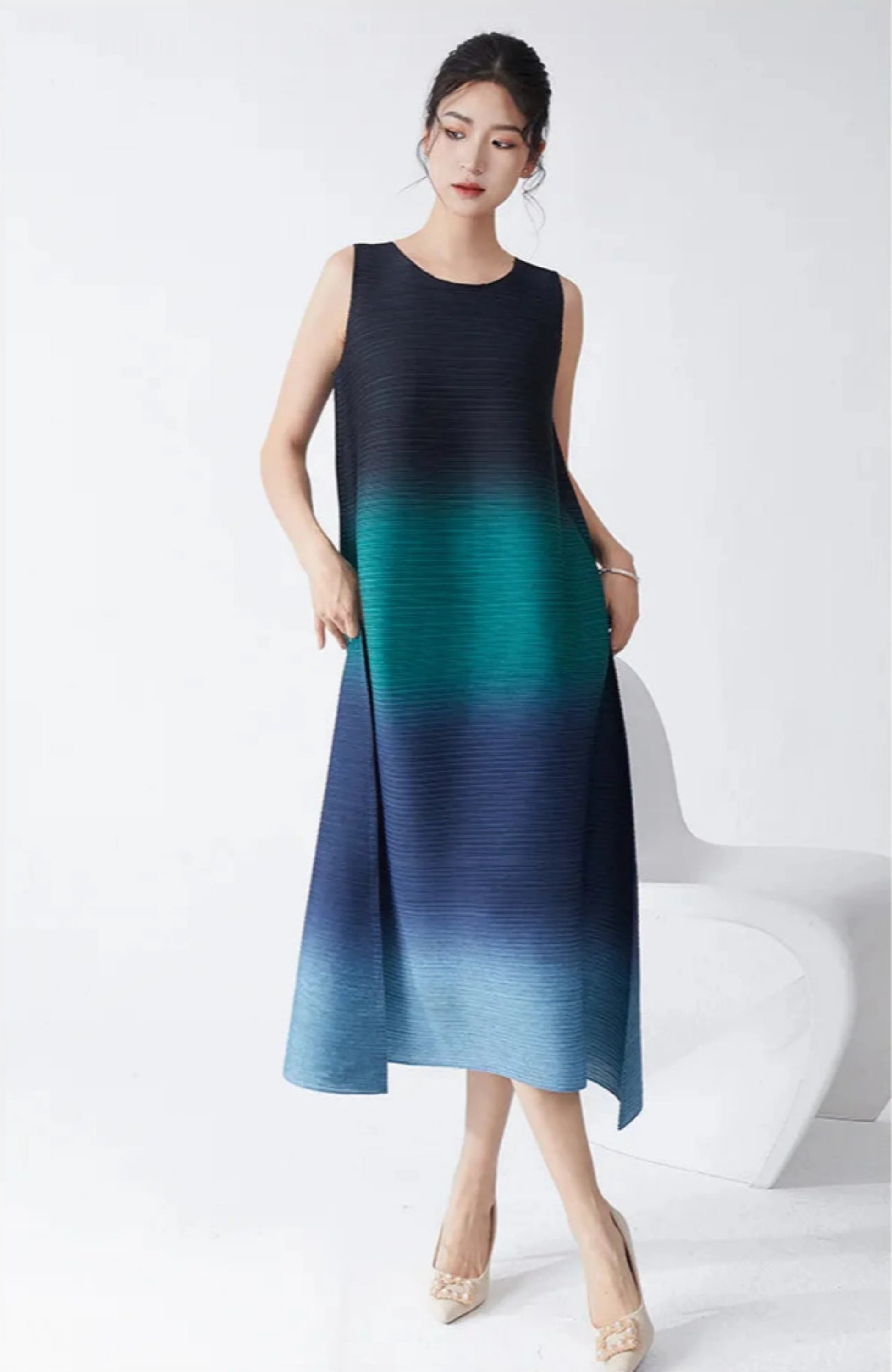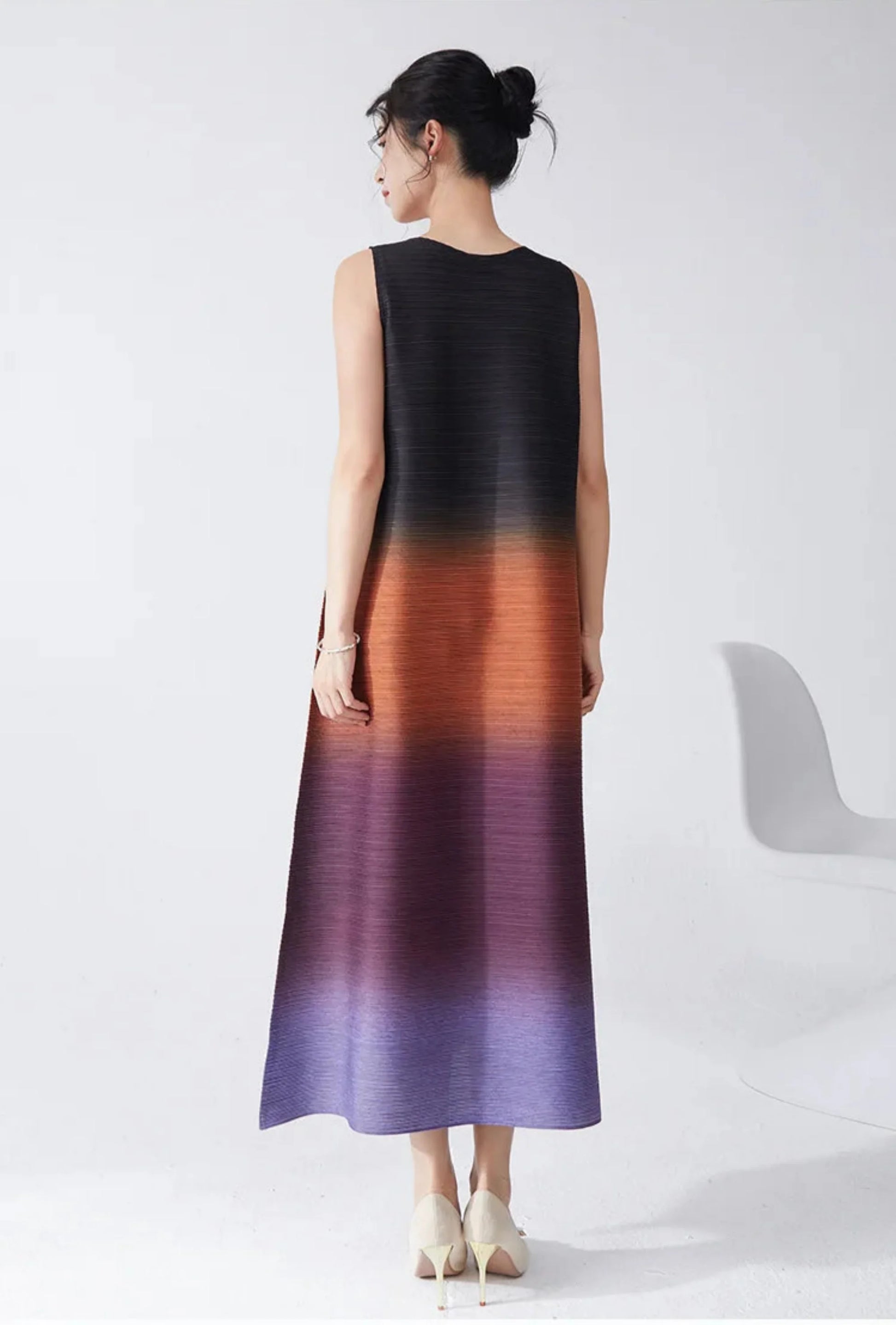 Plisse Pleated Ombre Midi Sleeveless Dress