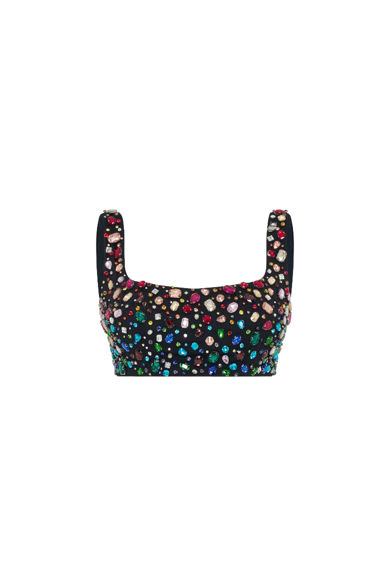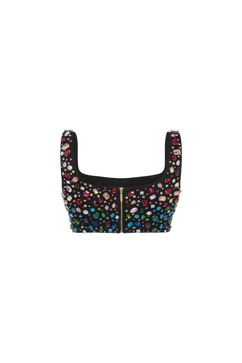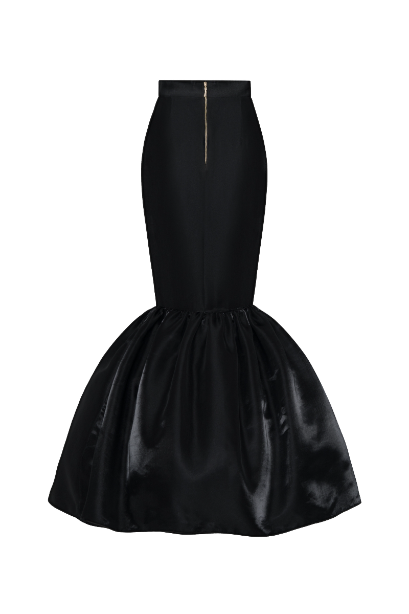 Exude luxury with our handmade rhinestone top and silk taffeta mermaid skirt set, featuring a mini top and zipper detail, all expertly crafted in Vietnam.
