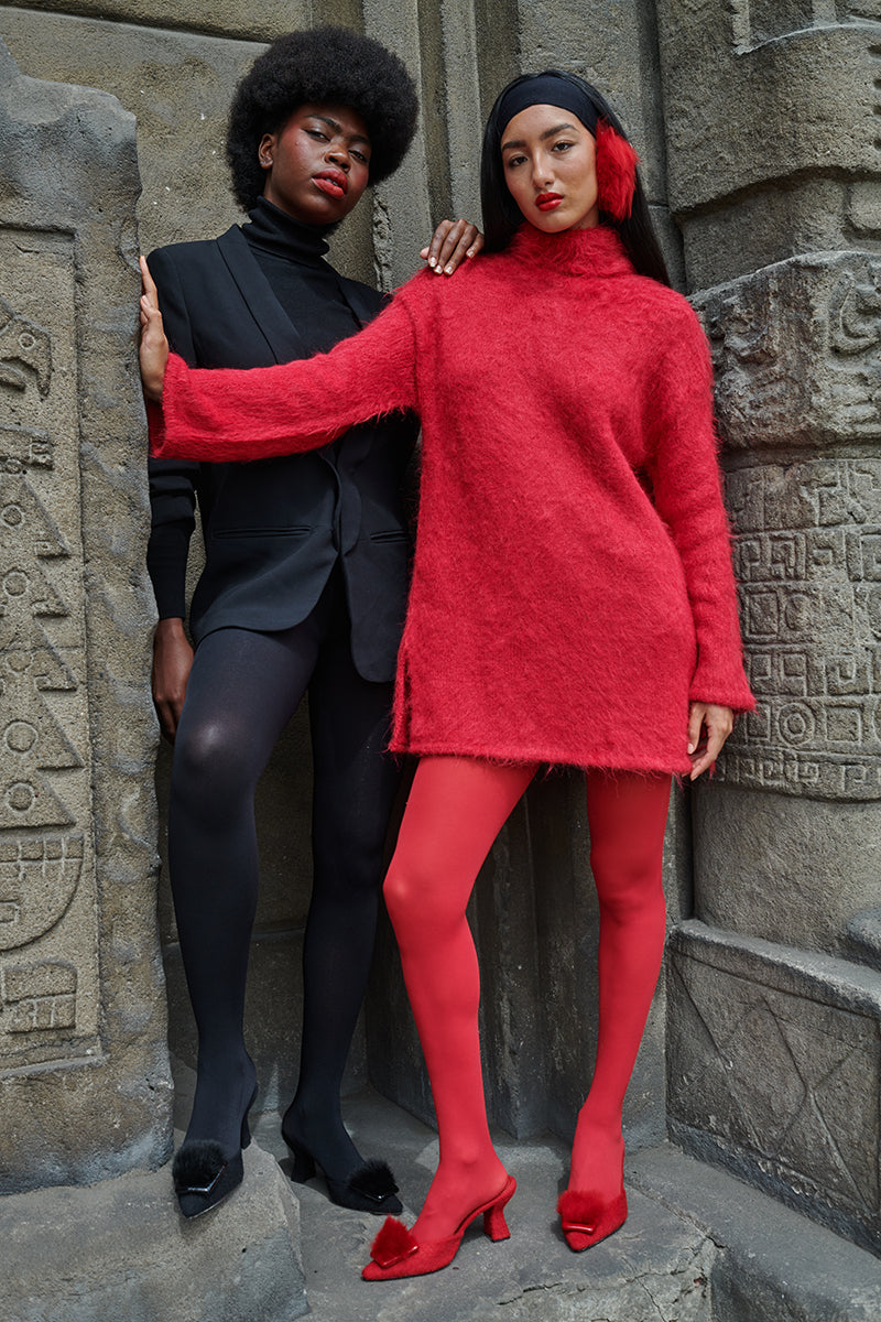 Luxuriate in the rich texture of alpaca fabric, complemented by a square patent leather buckle and salvaged alpaca fur. This luxurious mule features a pointed toe and a sole made from recycled leather.