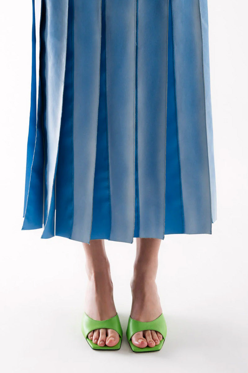 Alyssa Alien Sandal, with neon green calf leather upper, neon green calf leather wedge and chromed color-matched tiny heel. Find out more.