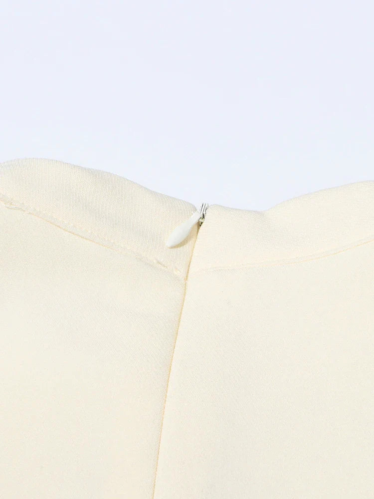 With its halter neckline and subtle pleating on one side, it combines classic refinement with a contemporary twist, perfect for every elevated occasion.